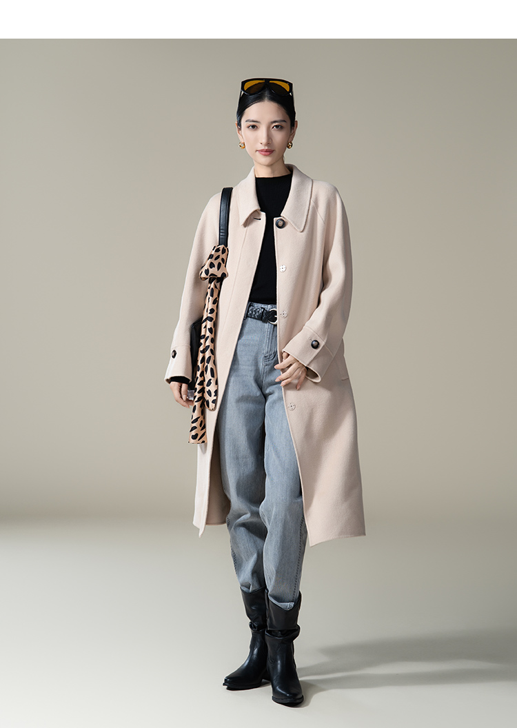【商场同款】CJCI006 衬衫领双面呢大衣 优质绵羊毛,轻盈的包裹感 荔枝粉双面呢 衬衫领插肩袖大衣