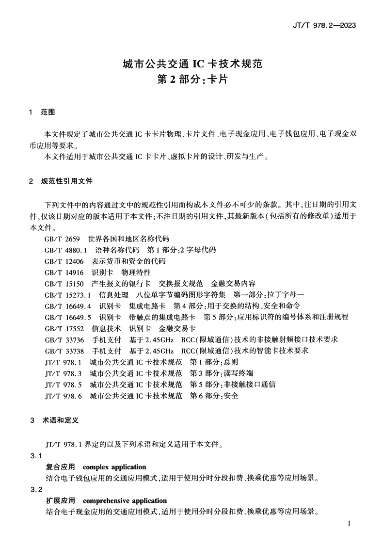 城市公共交通IC卡技术规范 第2部分:卡片(JT/T 978.2—2023)