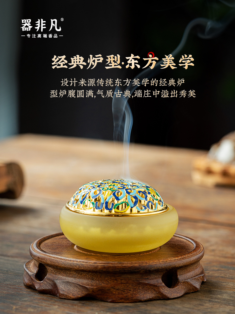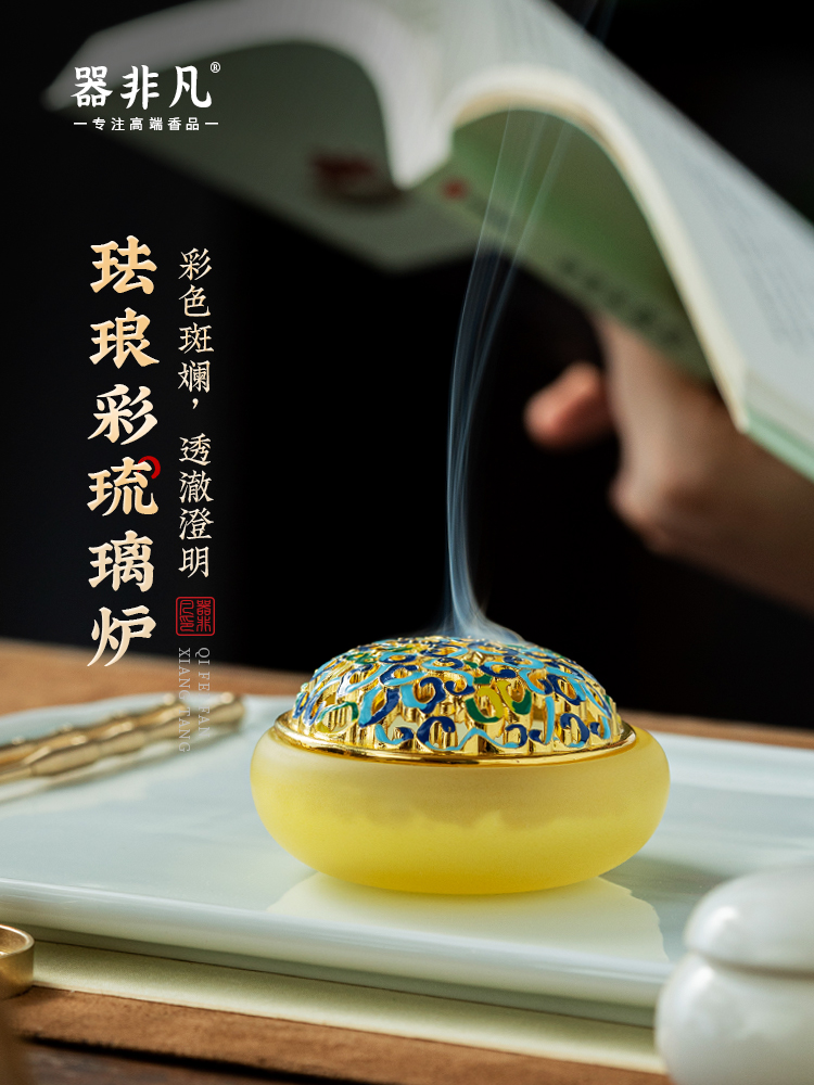 珐琅彩琉璃盘香炉 盘香炉香薰炉