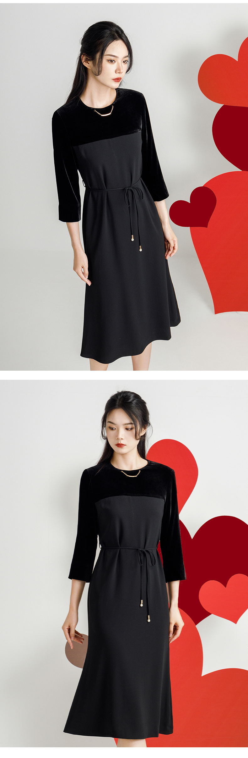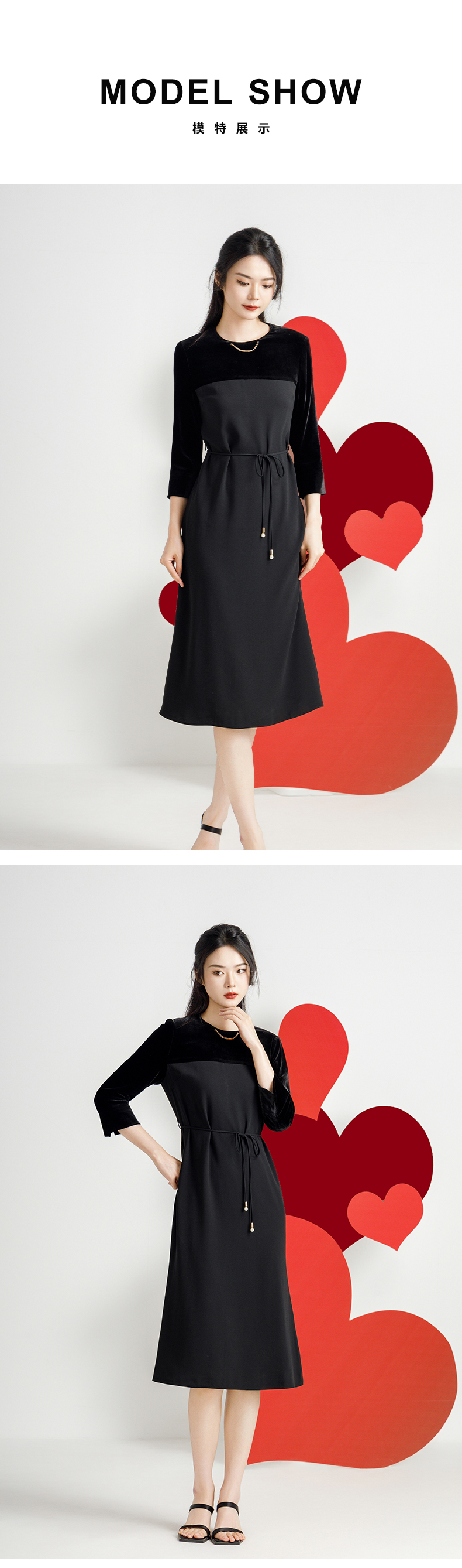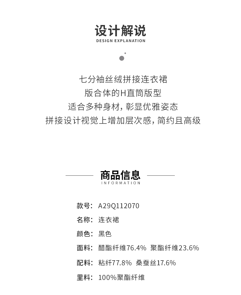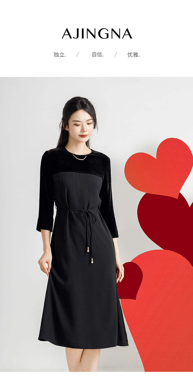 【商场同款】阿菁娜2024秋季新款七分袖丝绒拼接连衣裙A29Q112070