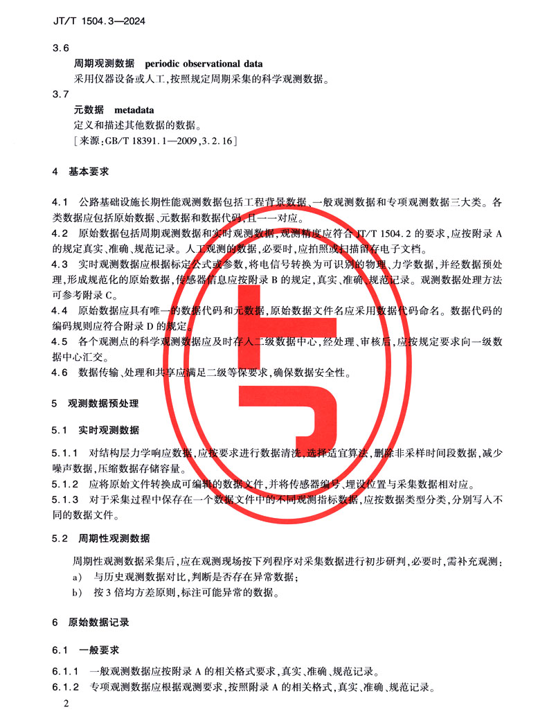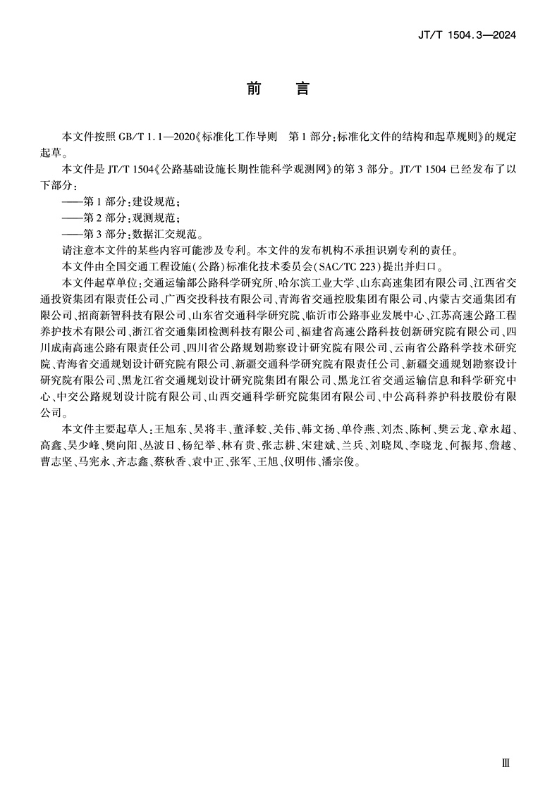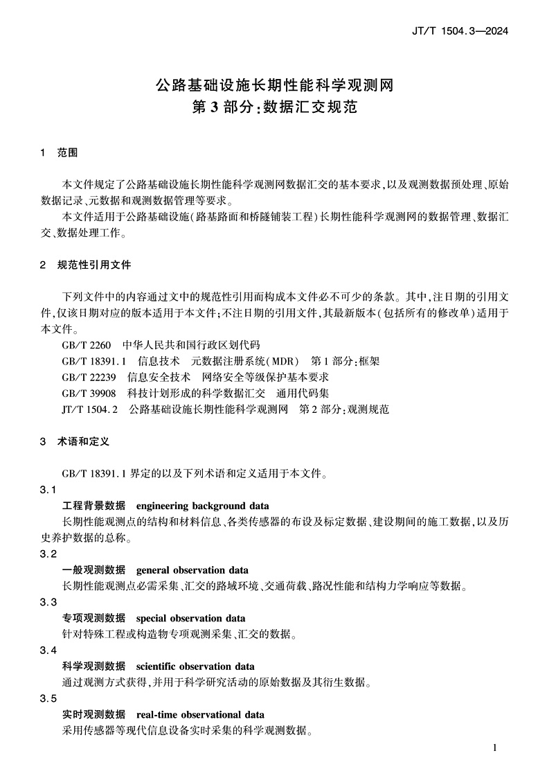 公路基础设施长期性能科学观测网 第3部分:数据汇交规范(JT/T 1504.3—2024)