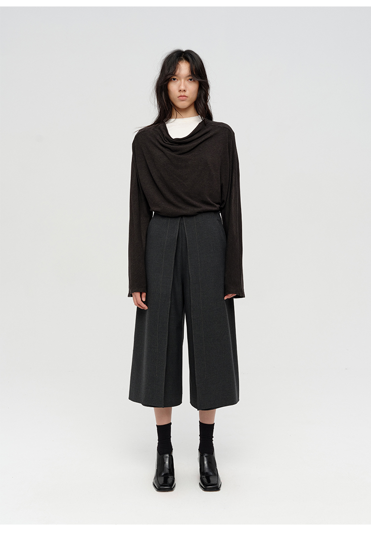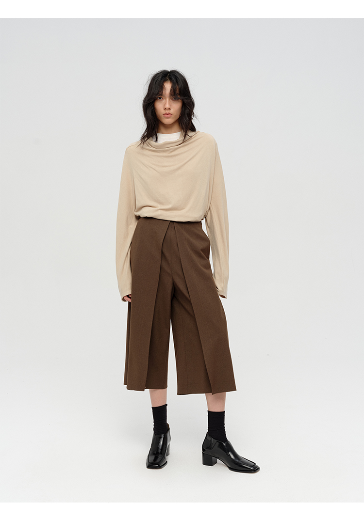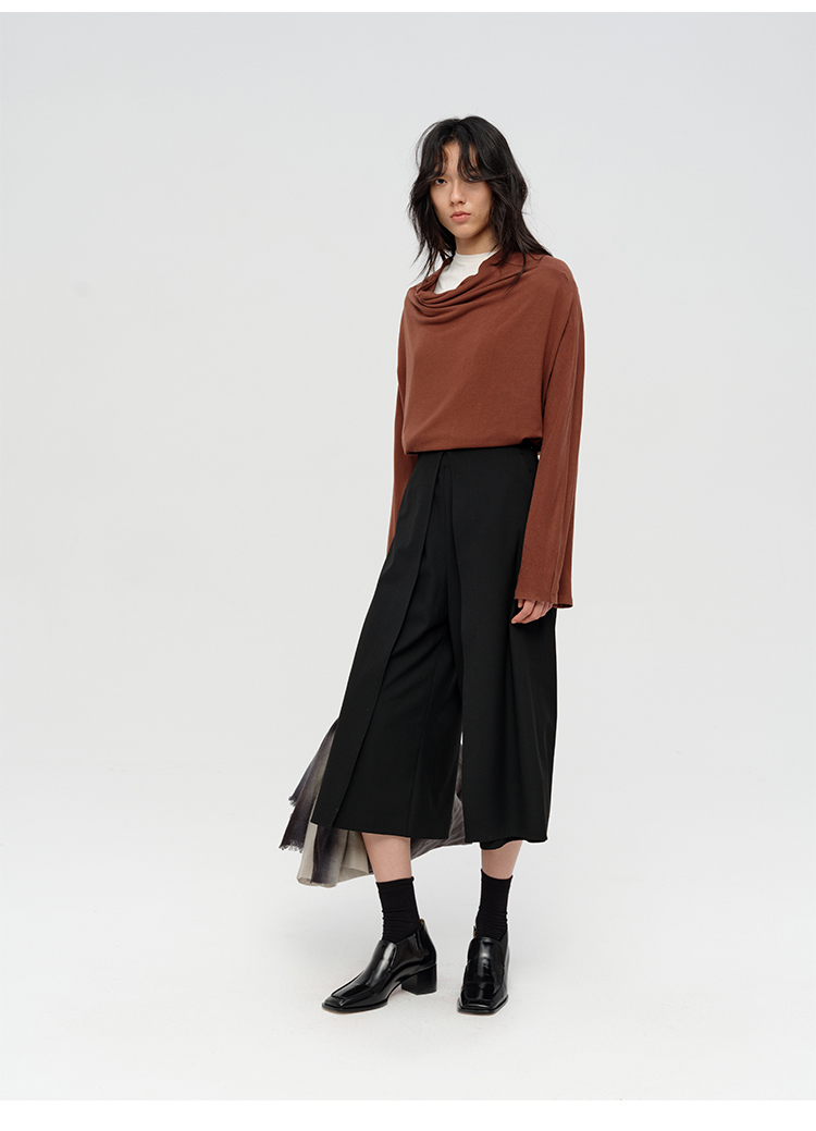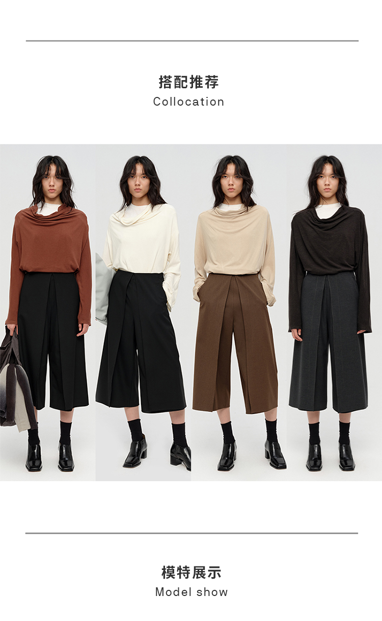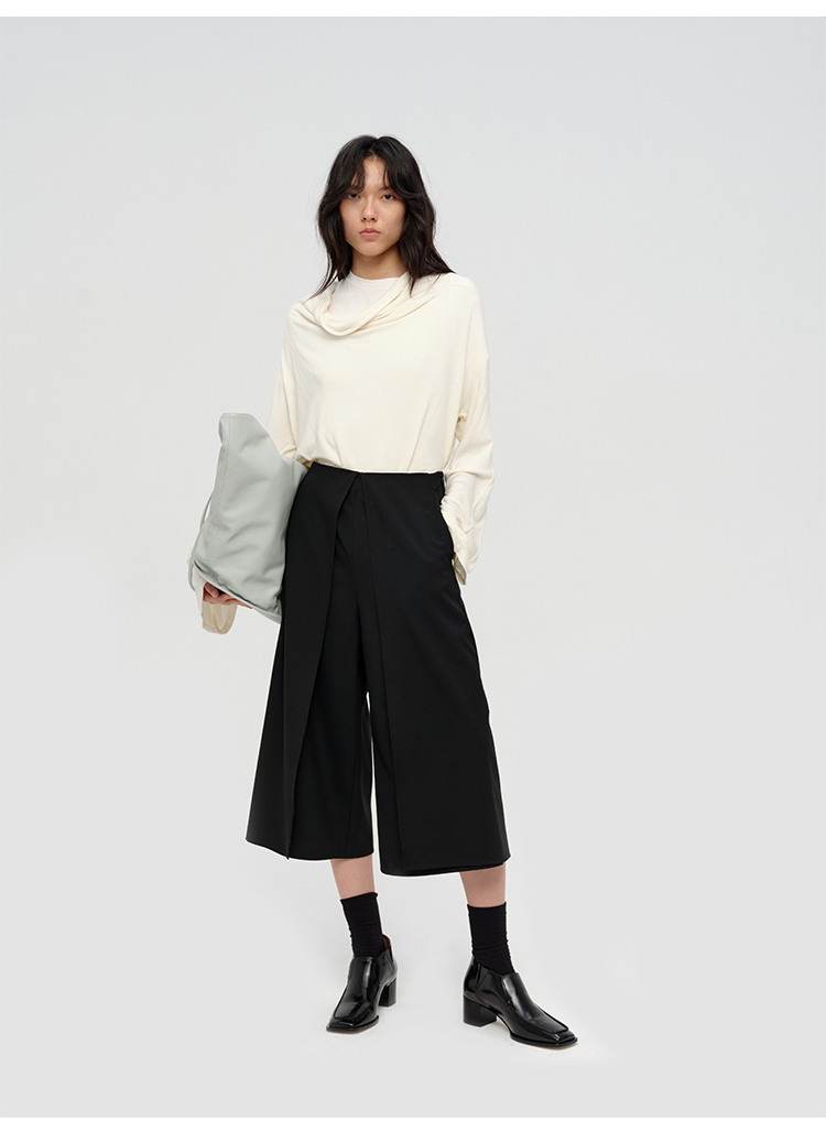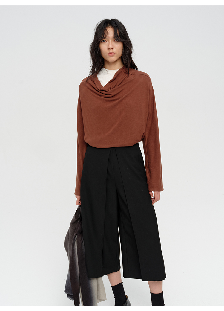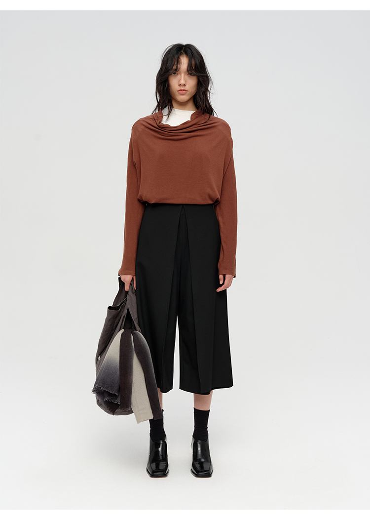 HIDEMI 极简设计感多种穿法荡漾领臻品混纺极细绵羊毛针织长袖弹力加厚款弹力T恤上衣 白色/黑色/赭石红/奶茶米