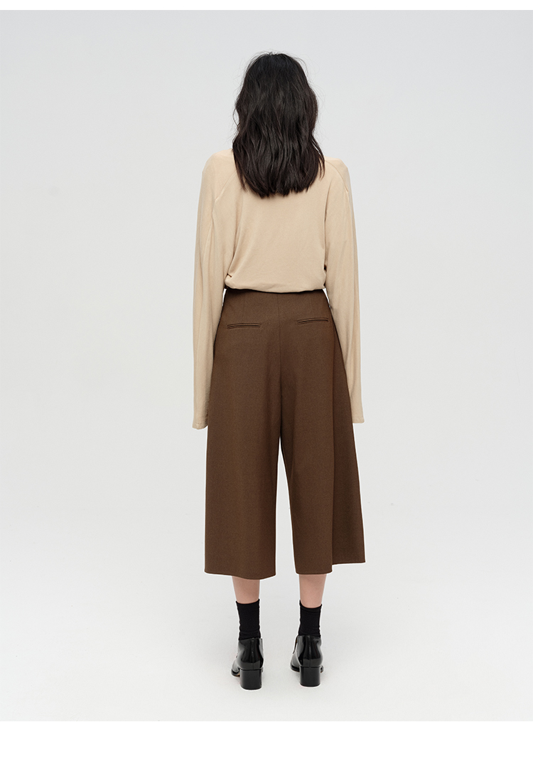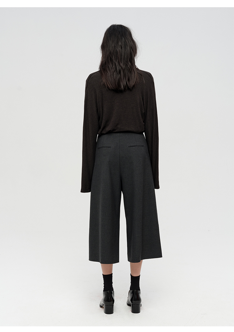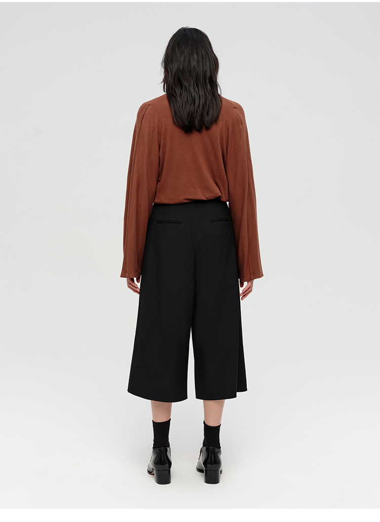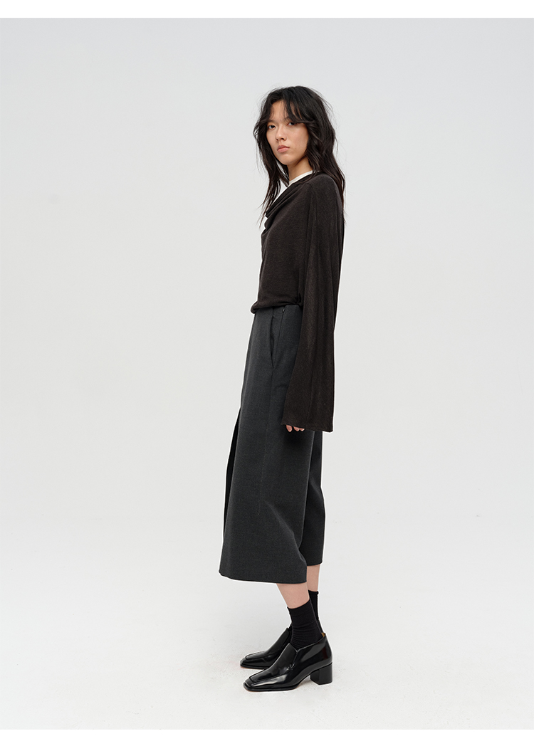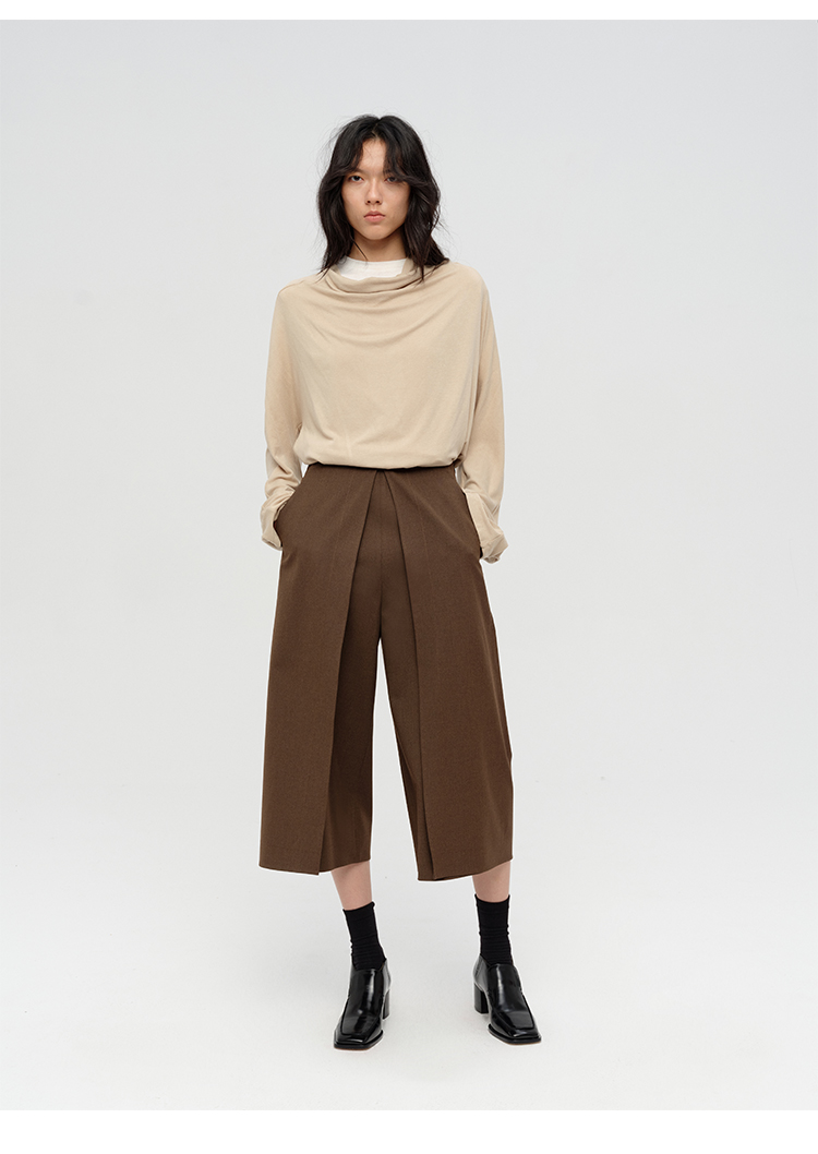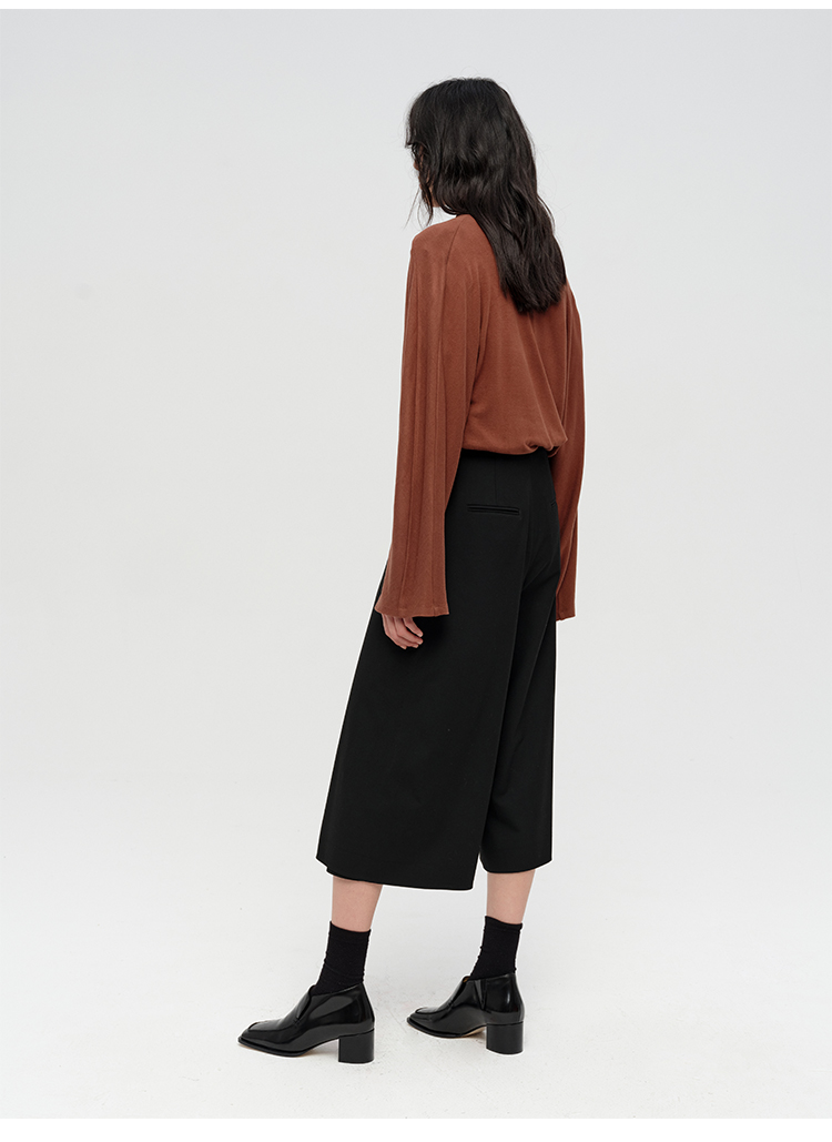 HIDEMI 极简设计感多种穿法荡漾领臻品混纺极细绵羊毛针织长袖弹力加厚款弹力T恤上衣 白色/黑色/赭石红/奶茶米