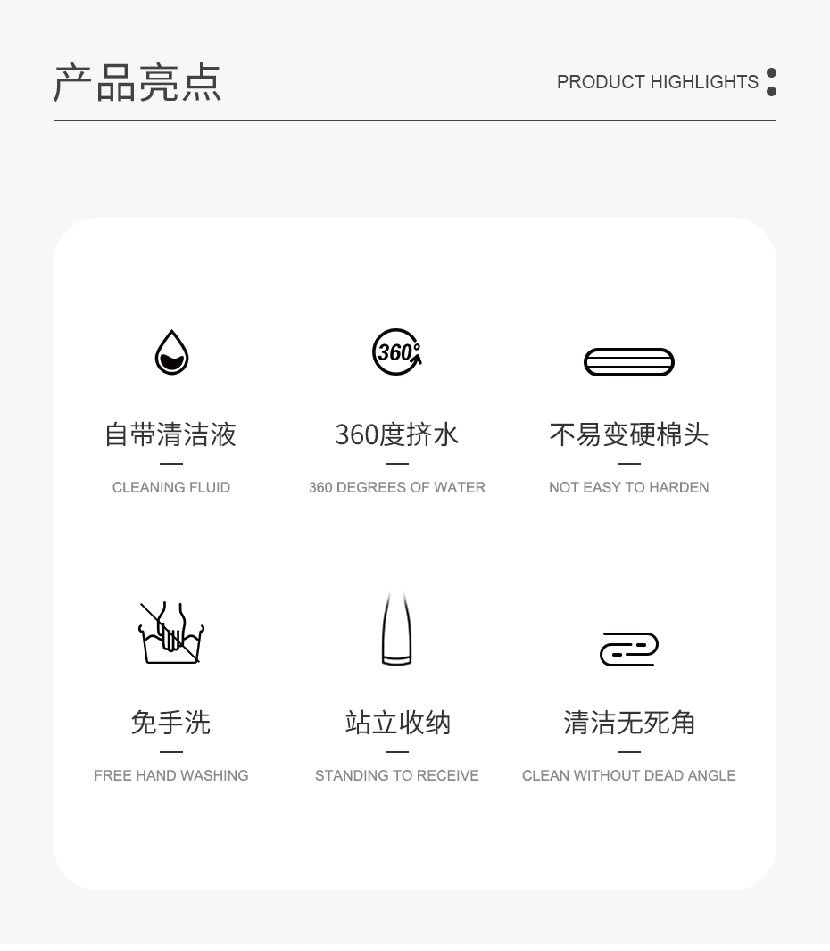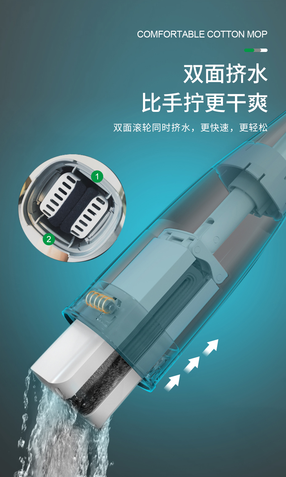 JESUN免手洗炮弹桶舒棉拖把 棉头自带清洁液 顽固污渍轻松去除