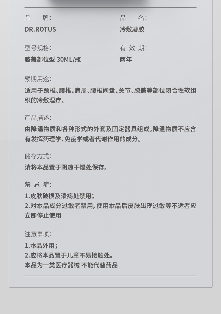 【一涂一抹 为膝盖减负】DR.Rotus膝盖冷敷凝胶,颈椎、腰椎、肩周、腰椎间盘、关节、膝盖等冷敷理疗,滚珠设计 贴合关节,30ml/瓶