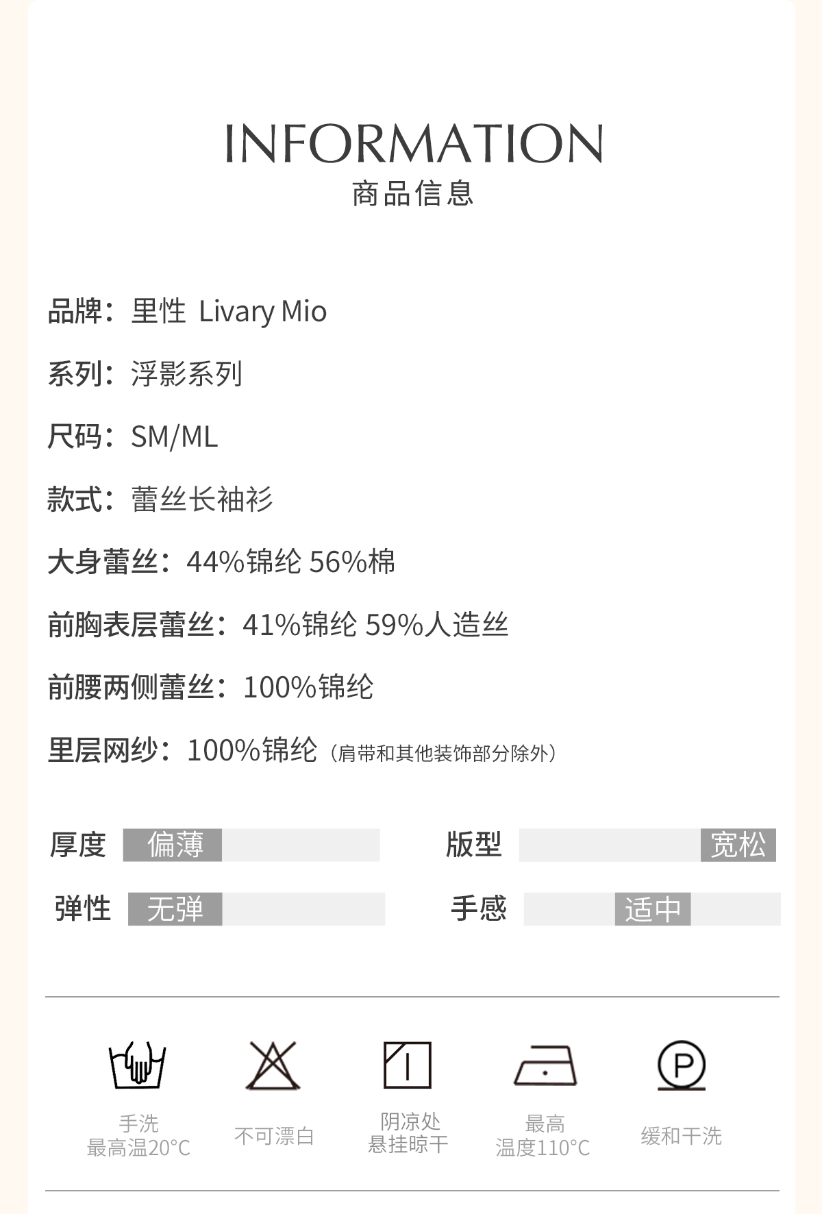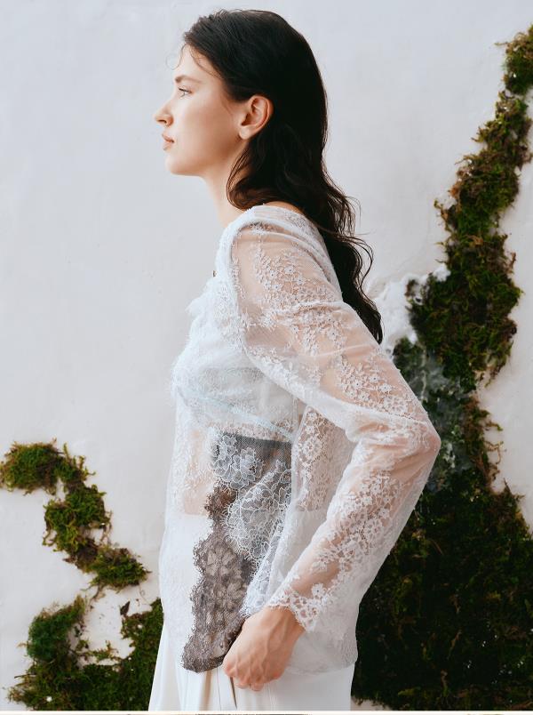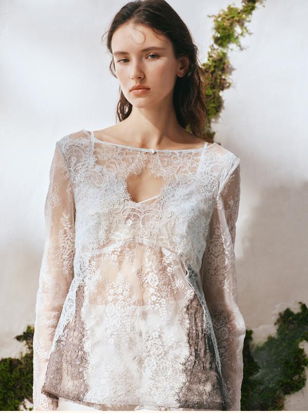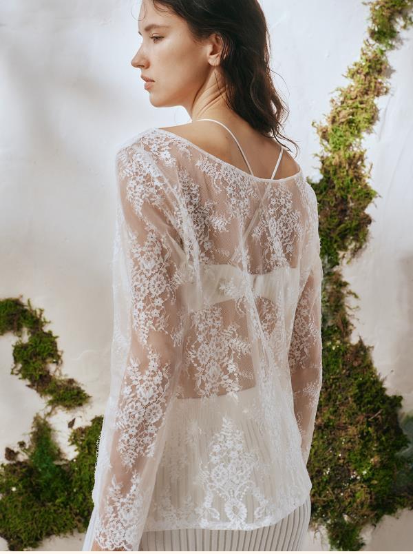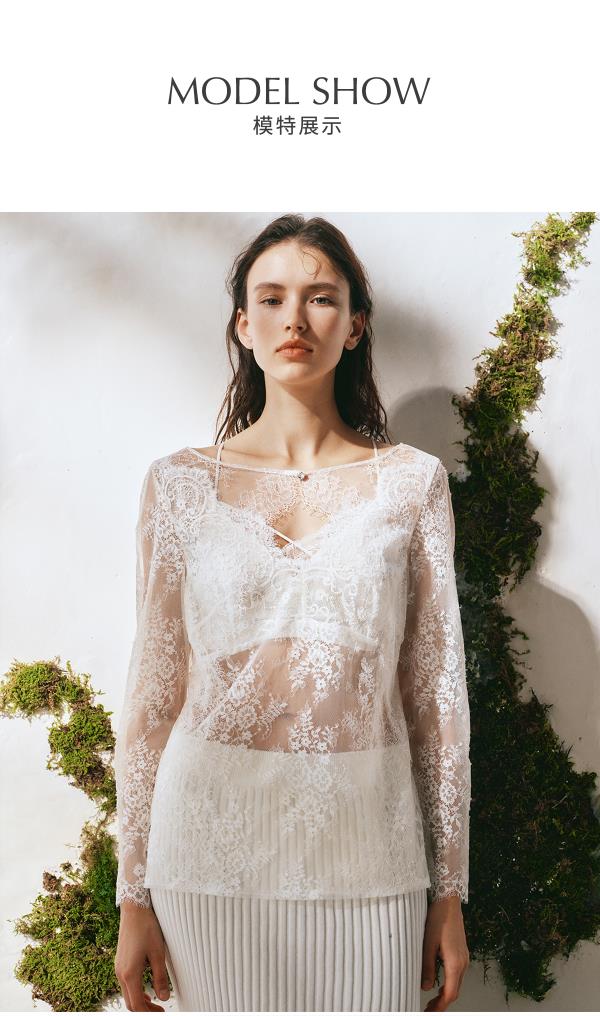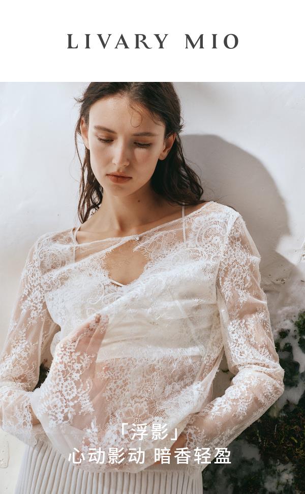 里性 LIVARY MIO 浮影-Shadows一字领蕾丝长袖衫透视镂空上衣