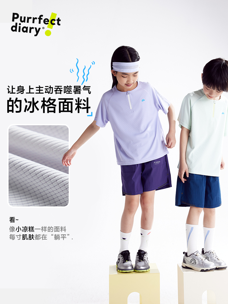 fx-咕噜日记童装儿童圆领透气短袖夏季男女童凉感户外上衣短袖轻薄PXT2553