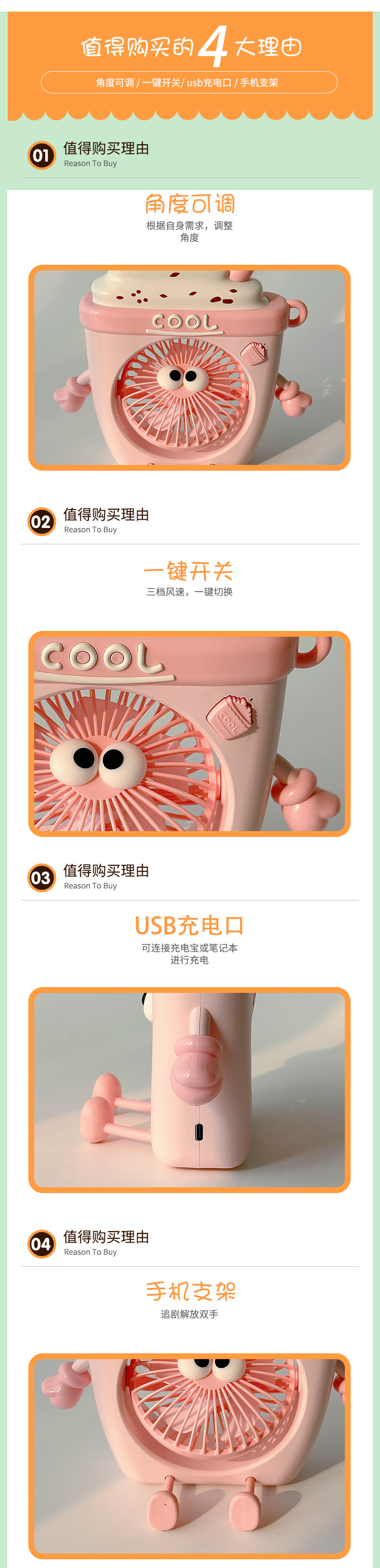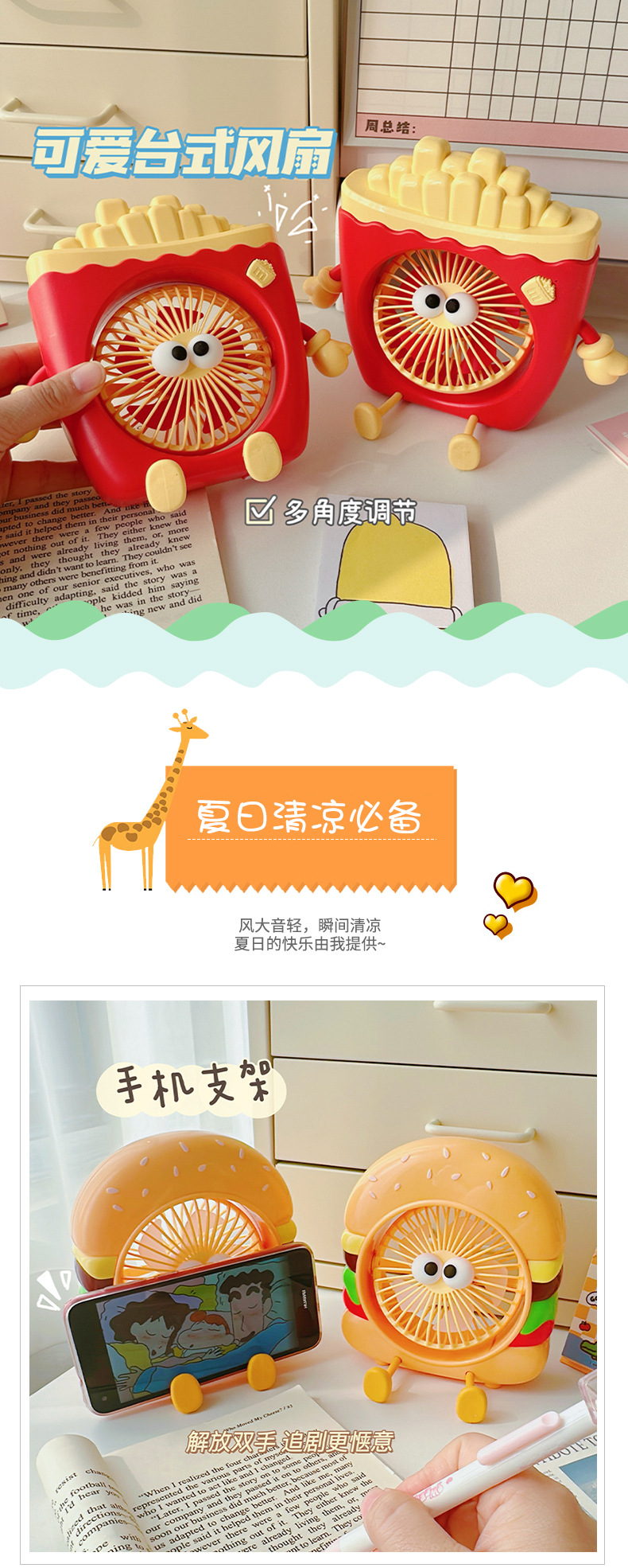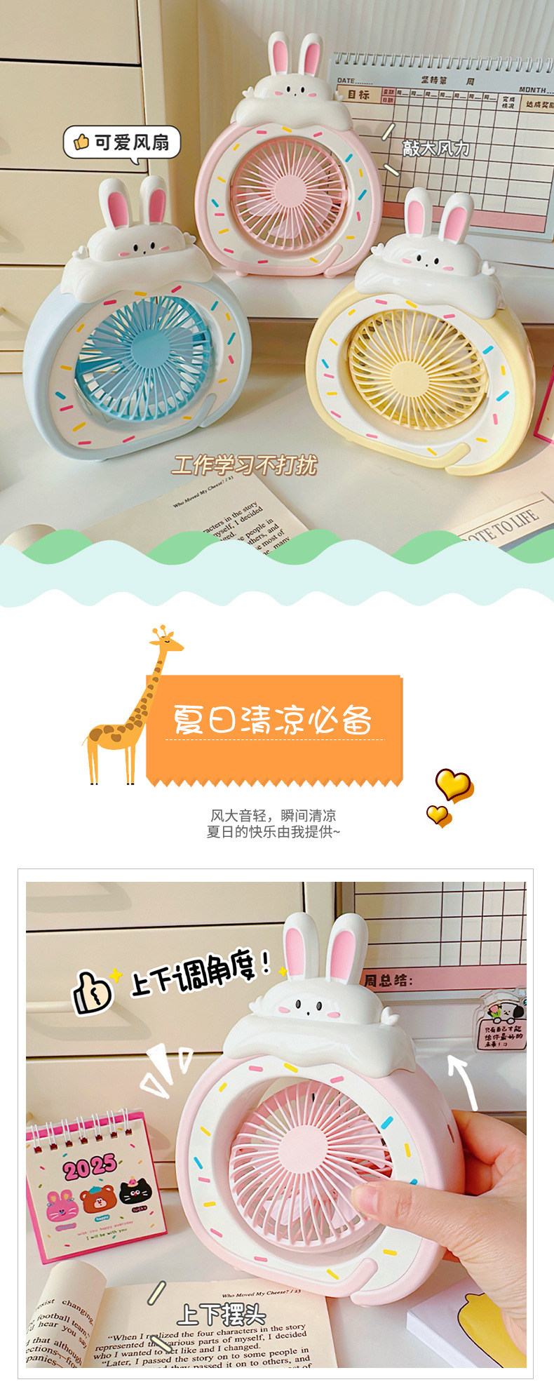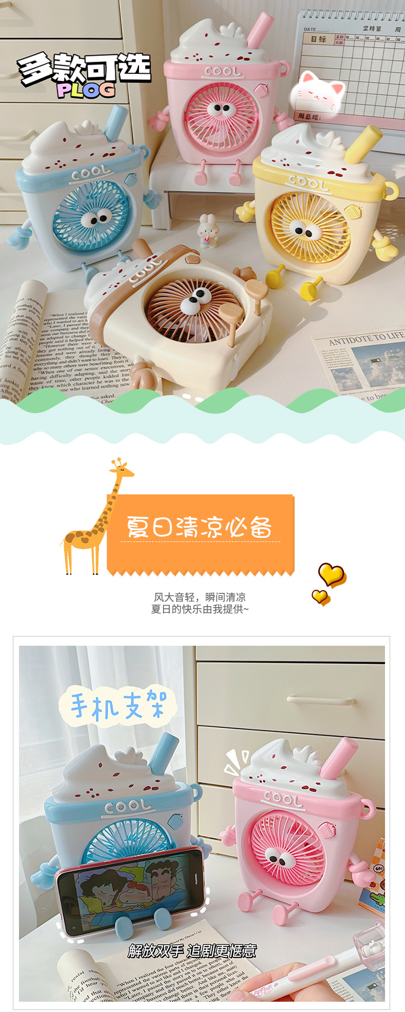 [小滋心选]【活动价 ¥45.9】【萌系风暴来袭💨】轻音送风小风扇,桌面必备治愈神器!可爱卡通造型+便携USB设计,学习工作清凉不打扰❄️快来pick你的夏日萌物吧!