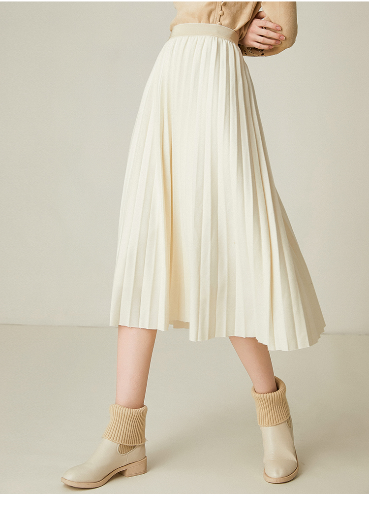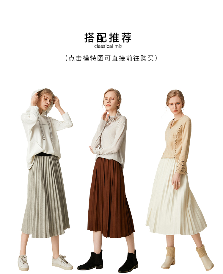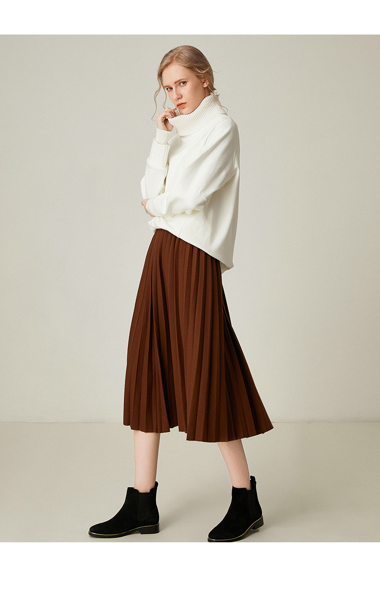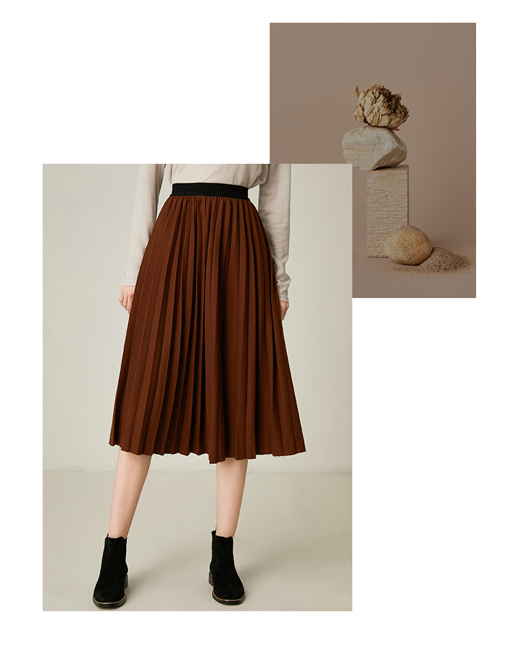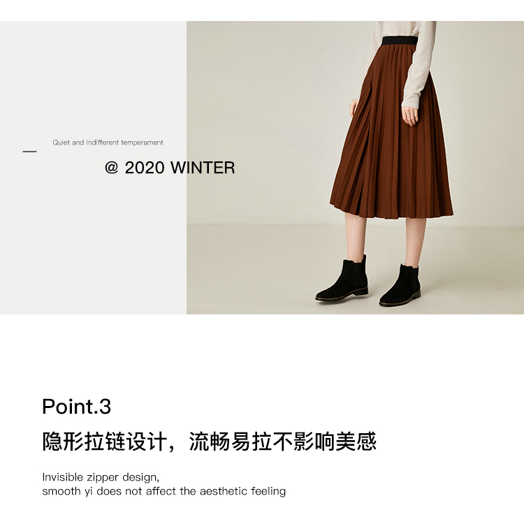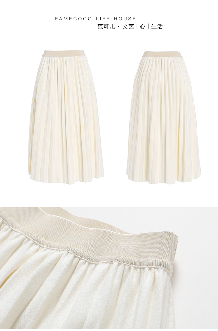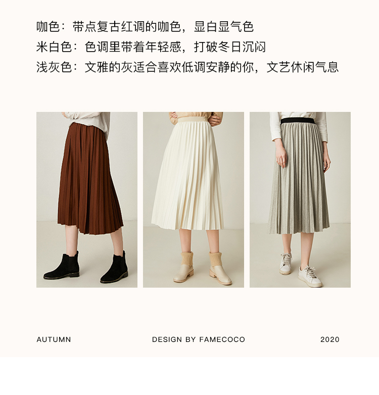 Famecoco范可儿百褶半身裙秋冬女高腰百搭a字中长款裙子F198HA003