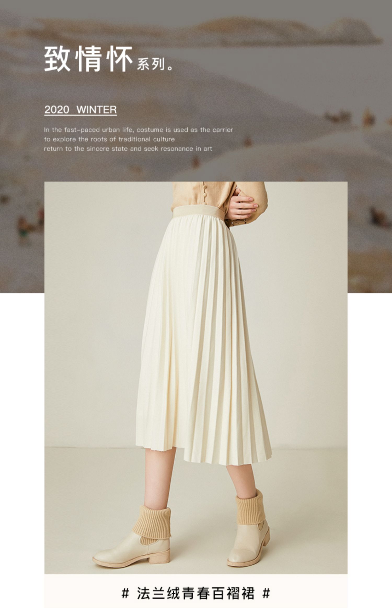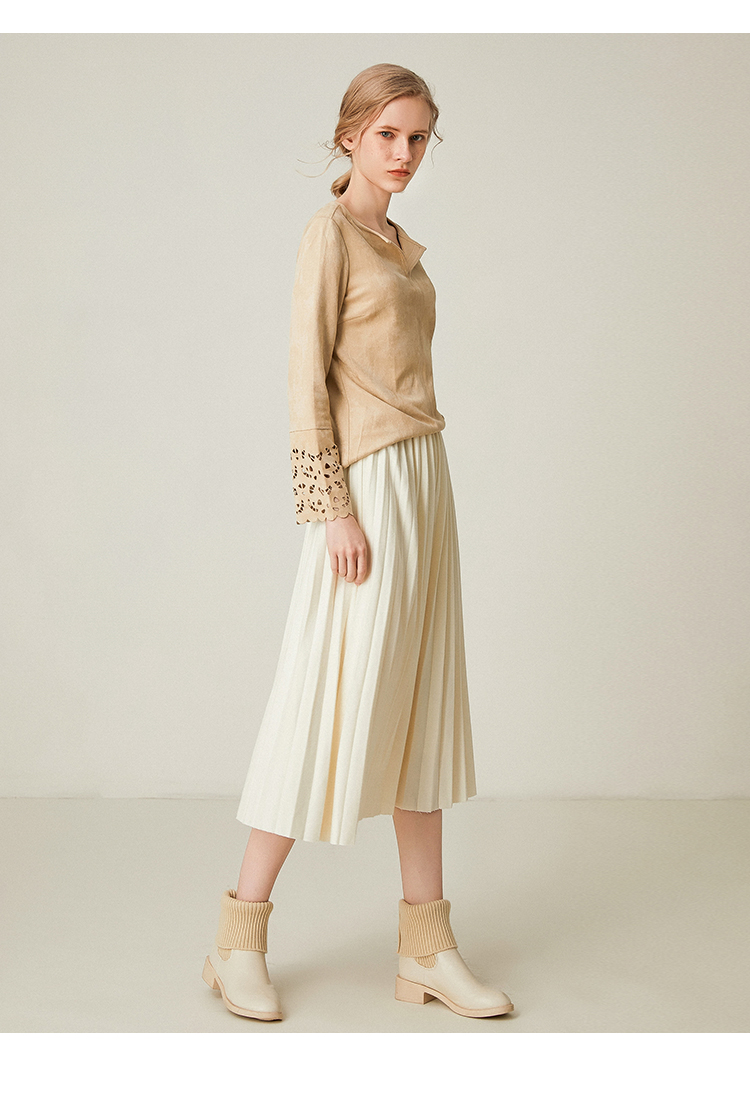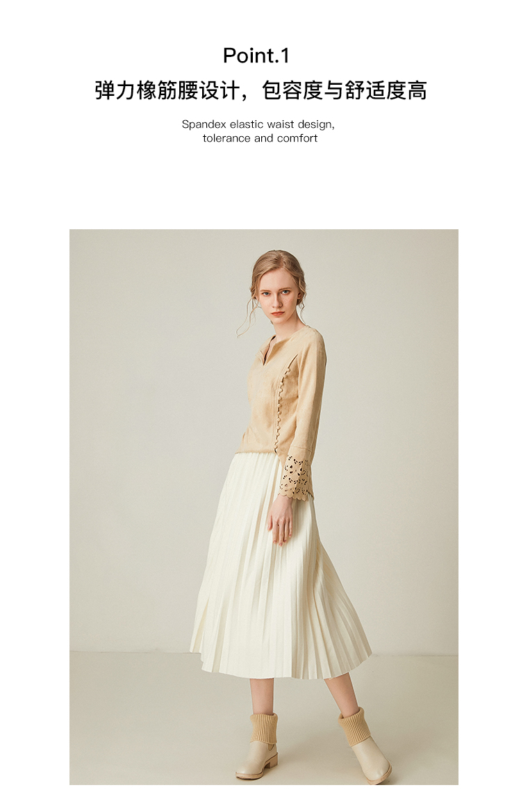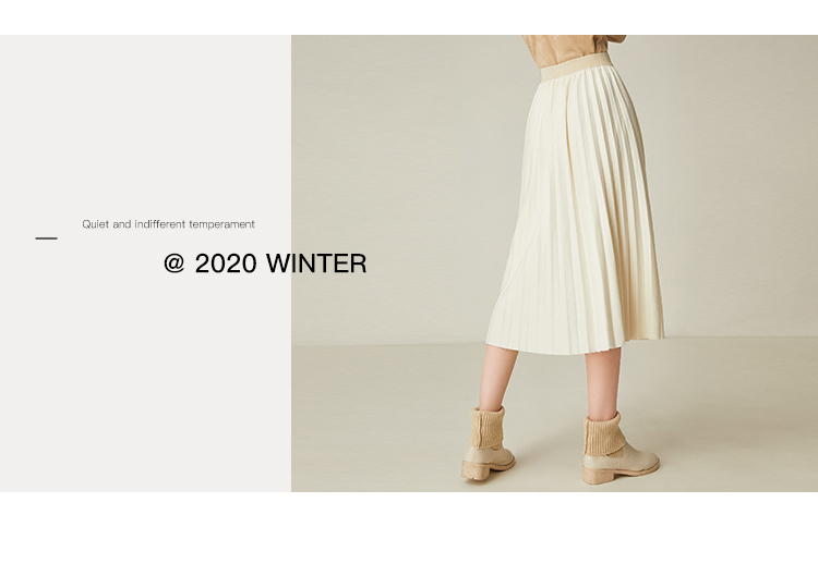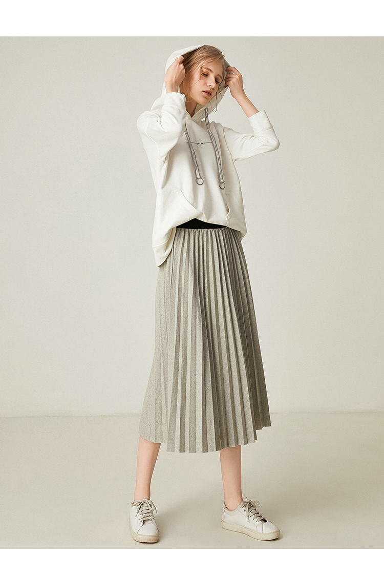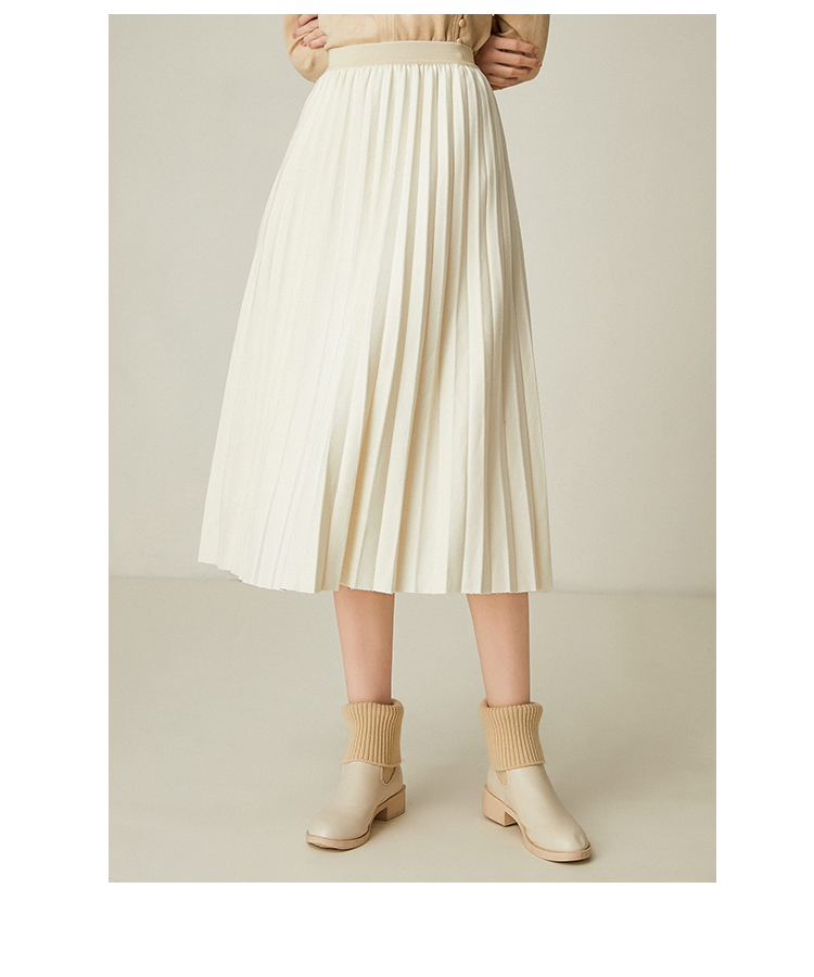 Famecoco范可儿百褶半身裙秋冬女高腰百搭a字中长款裙子F198HA003