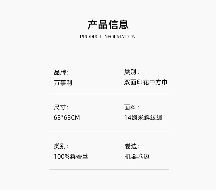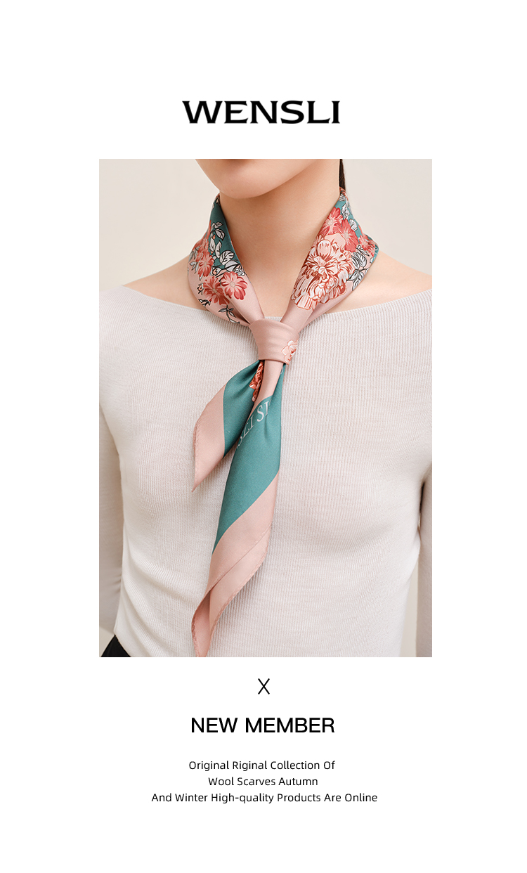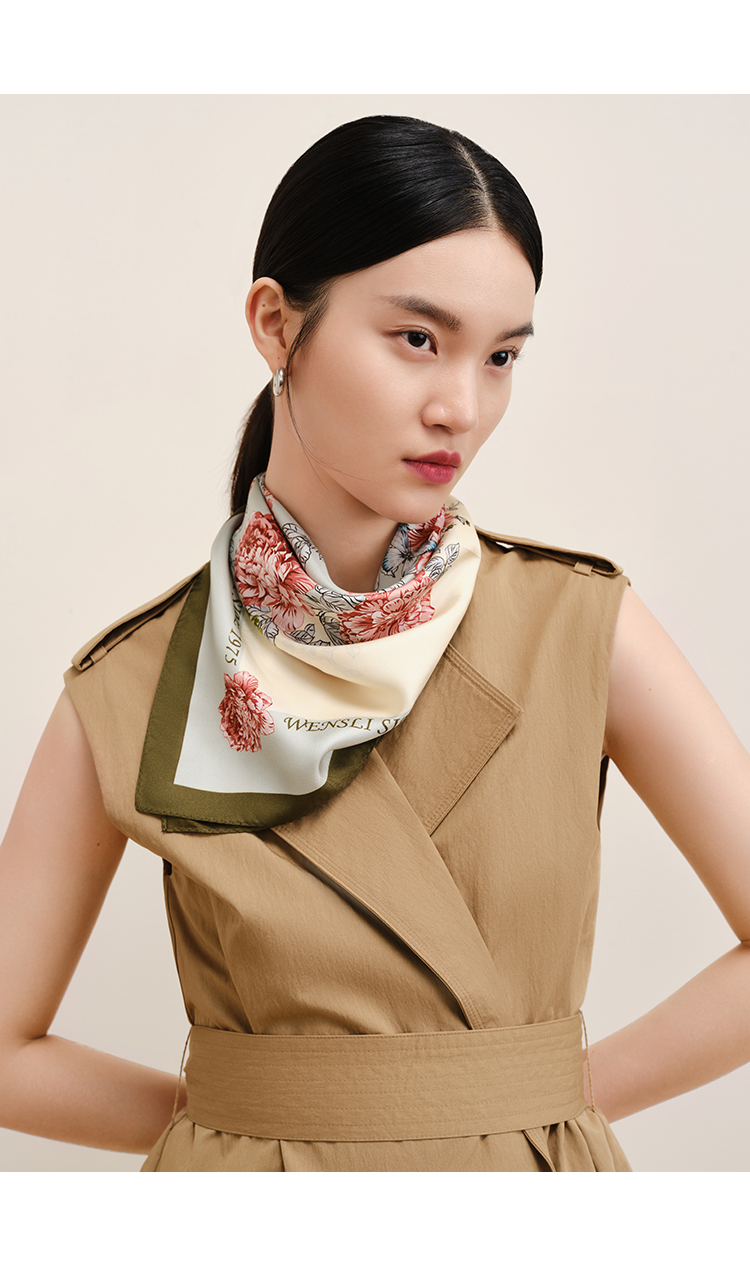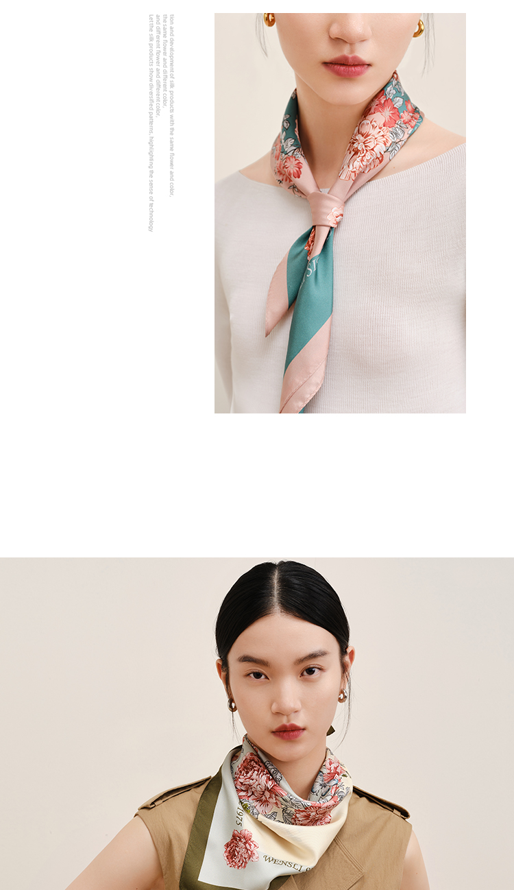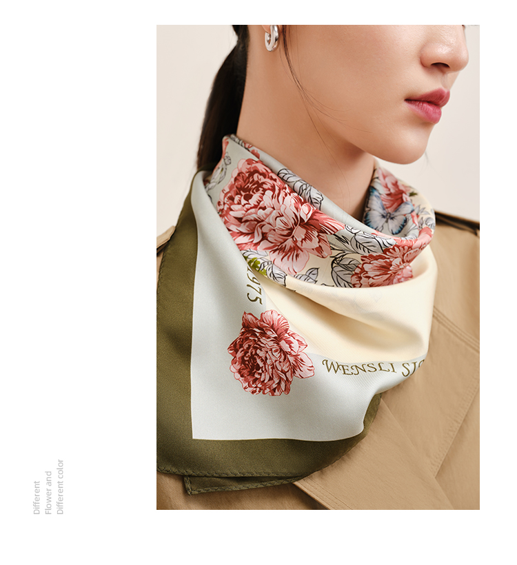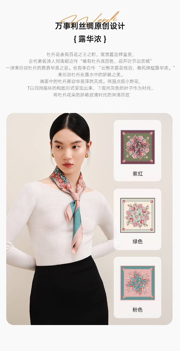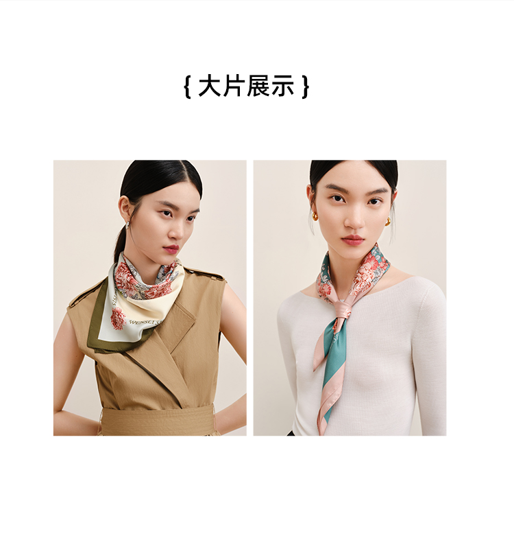 万事利“露华浓”63厘米双面印花真丝中方巾