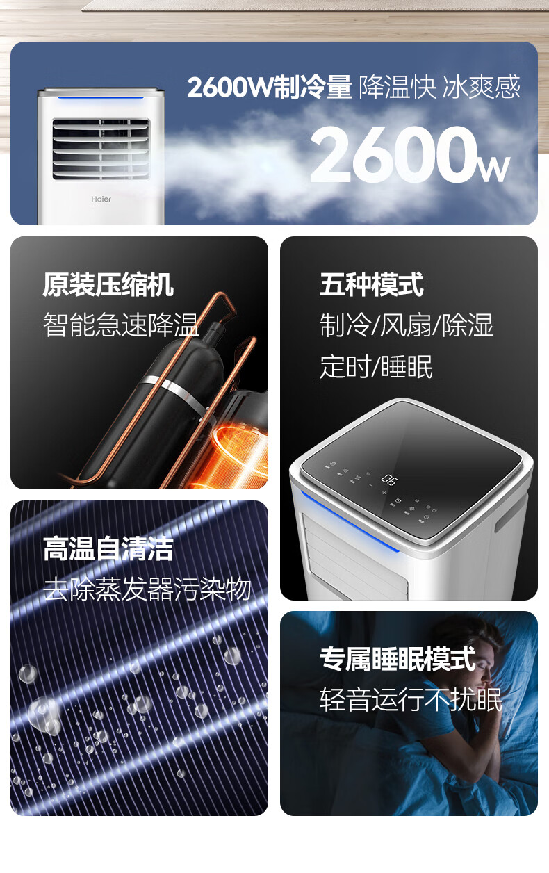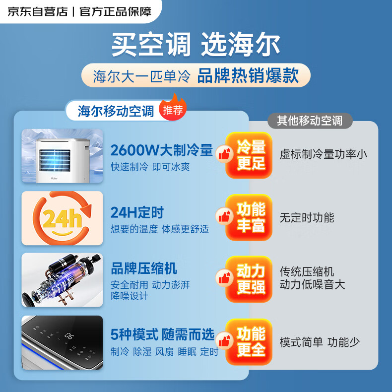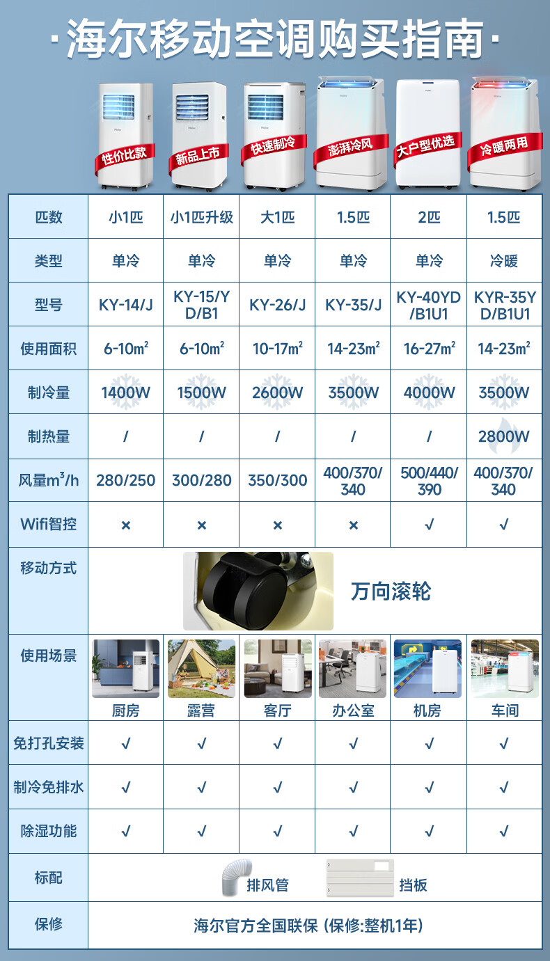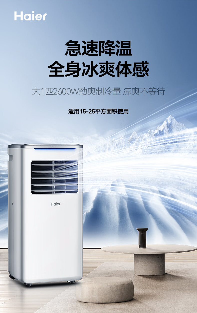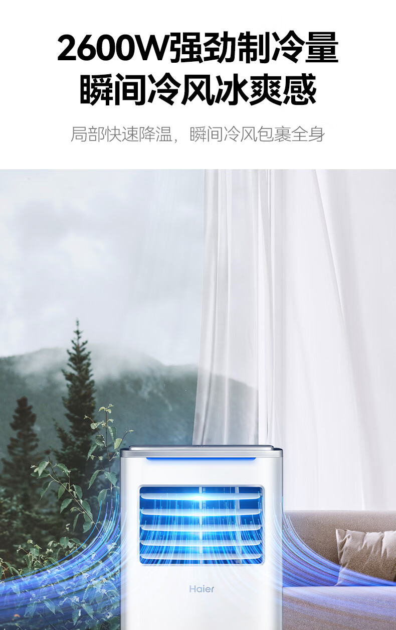 海尔(Haier) 移动空调单冷一体机大1匹 家用厨房空调便捷立式空调KY-26/J
