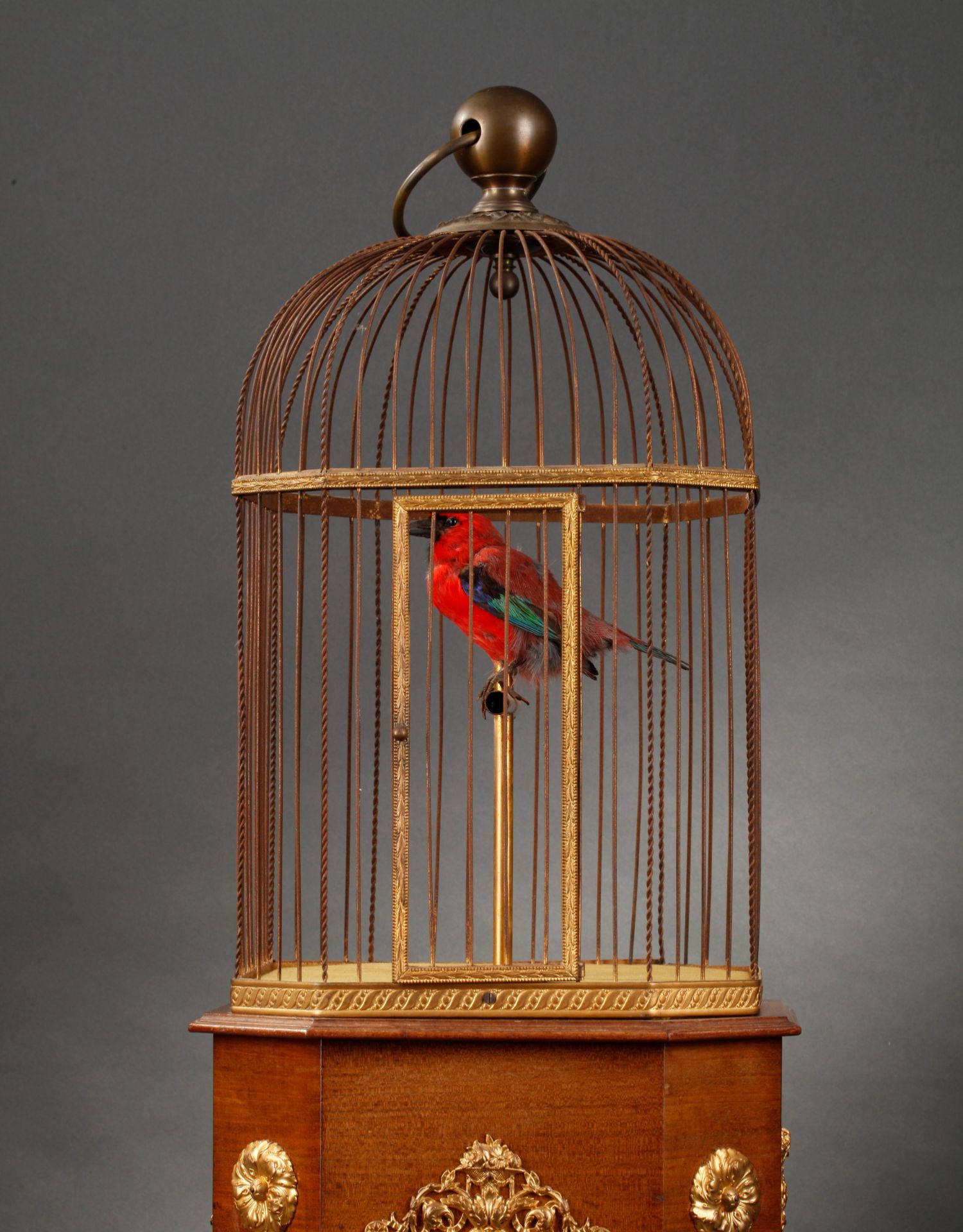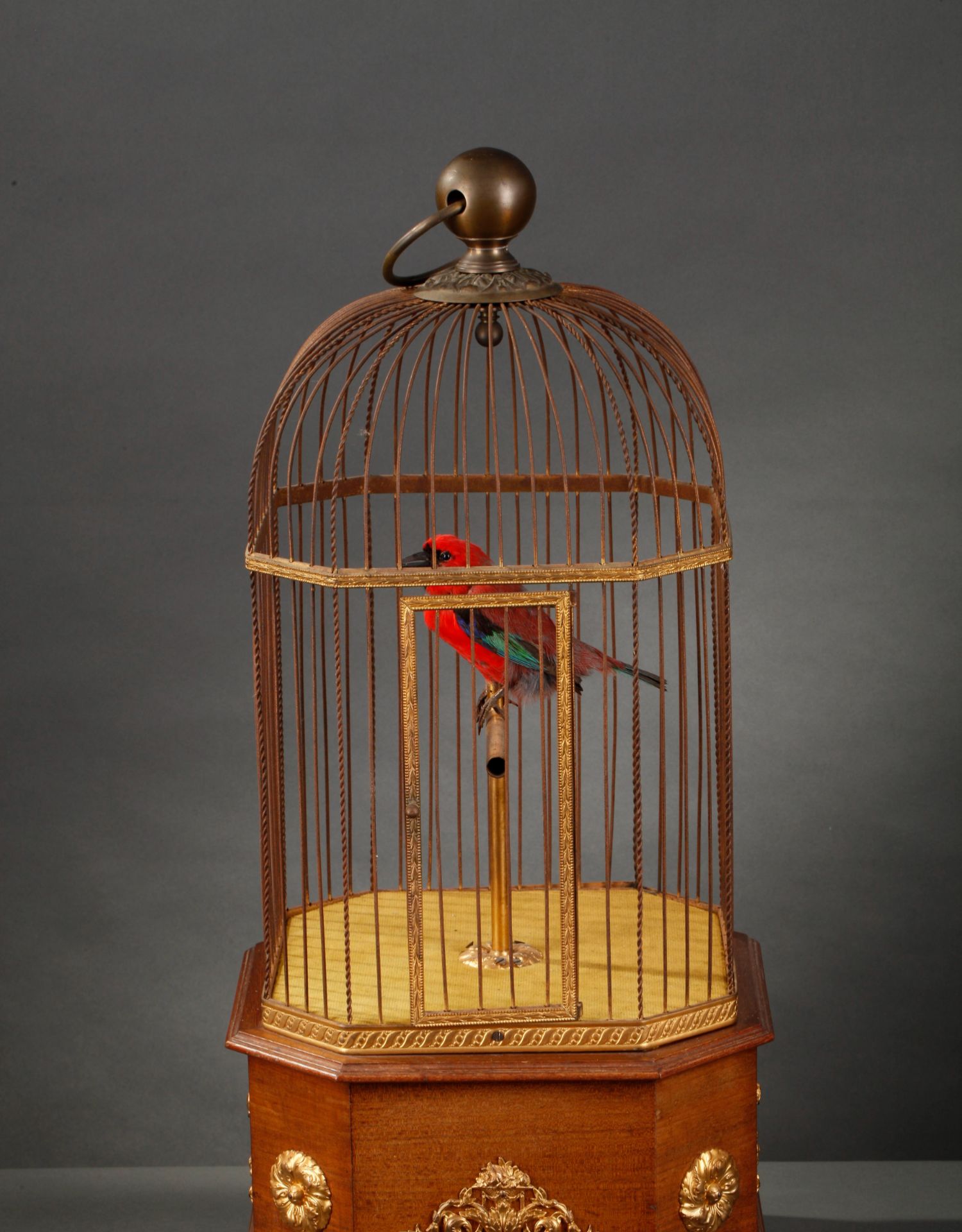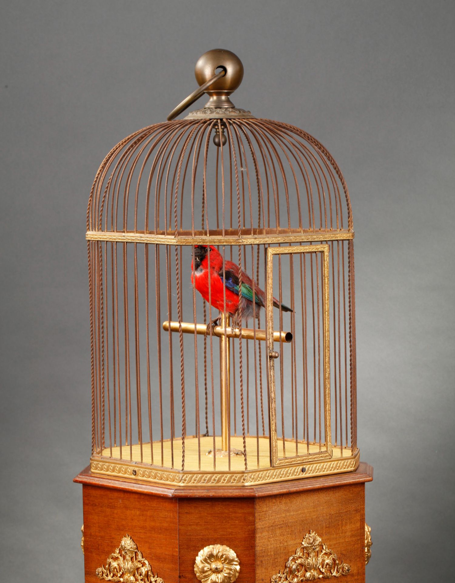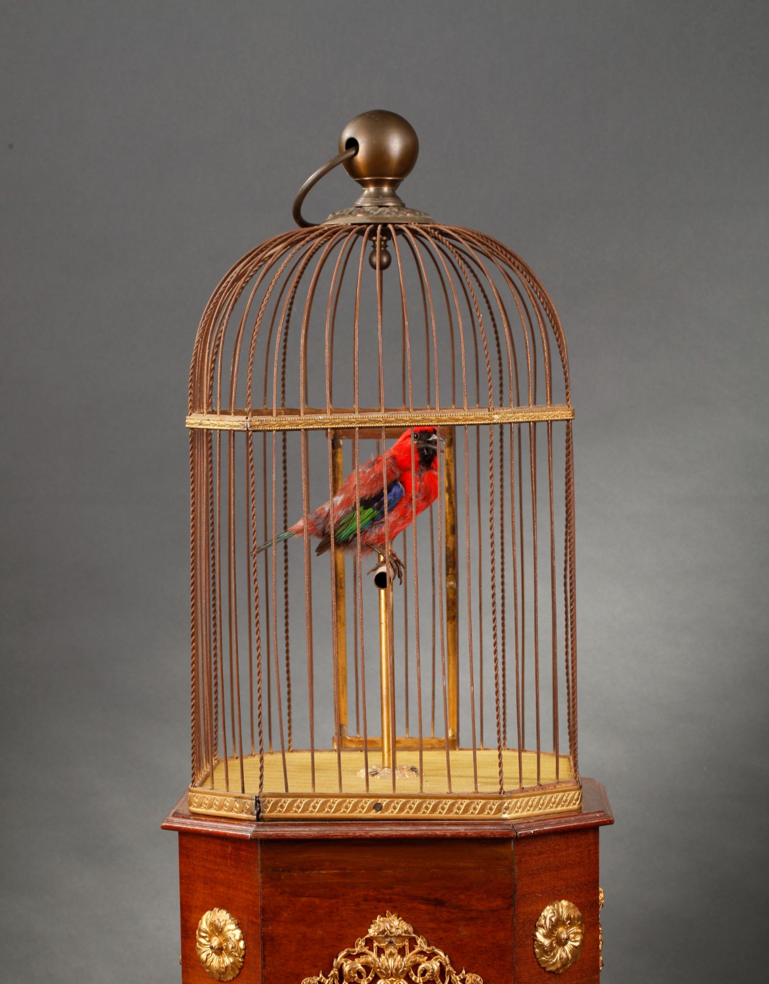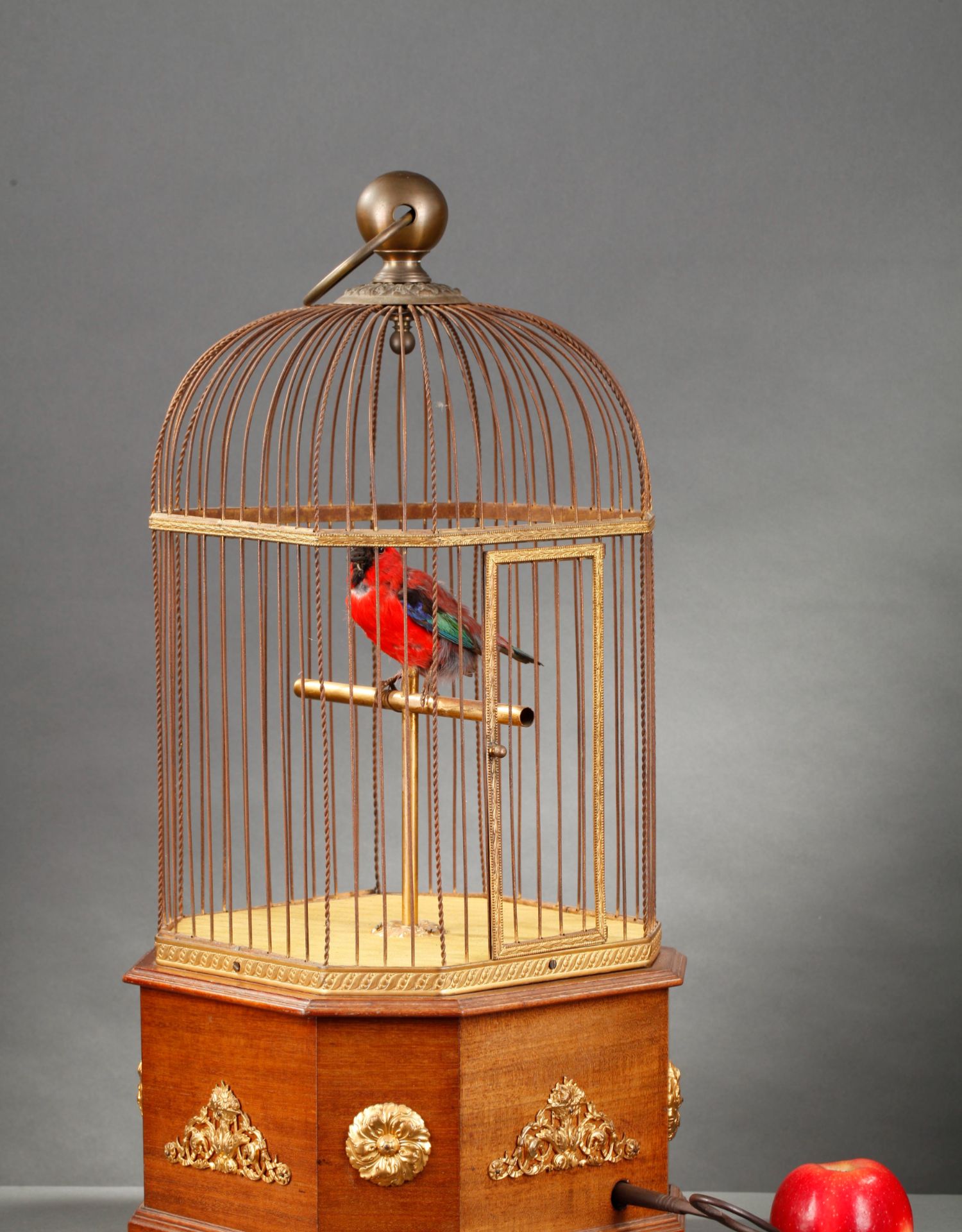 独角鹿西洋古董法国铜鎏金桃花心木鸟笼鸣鸟音乐盒八音盒