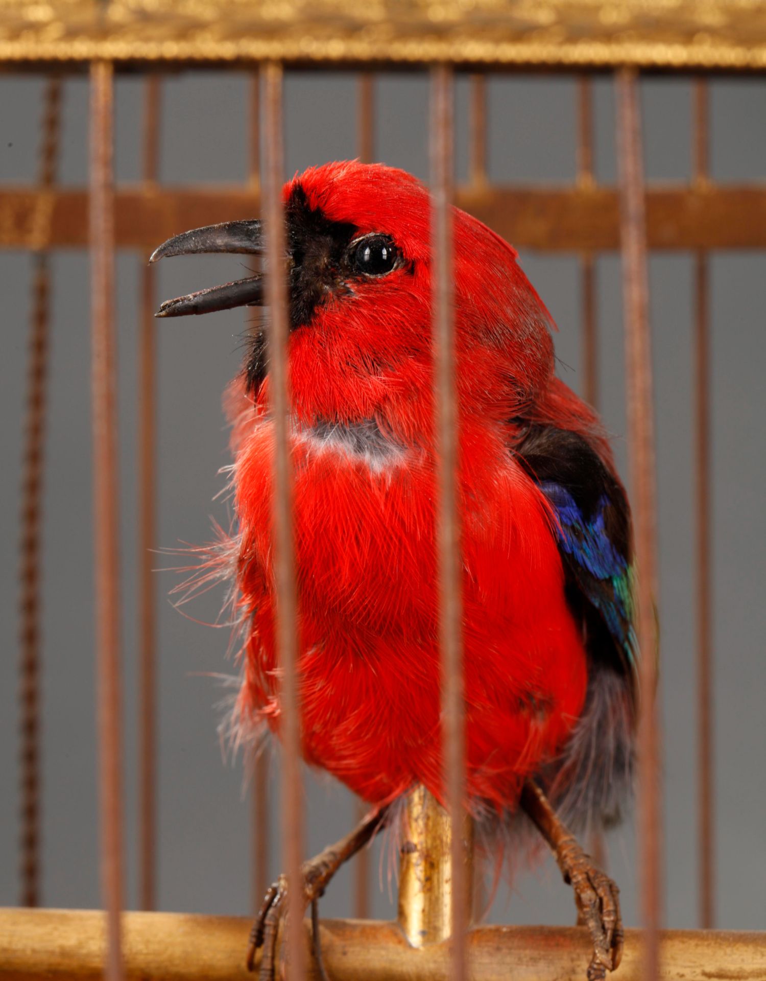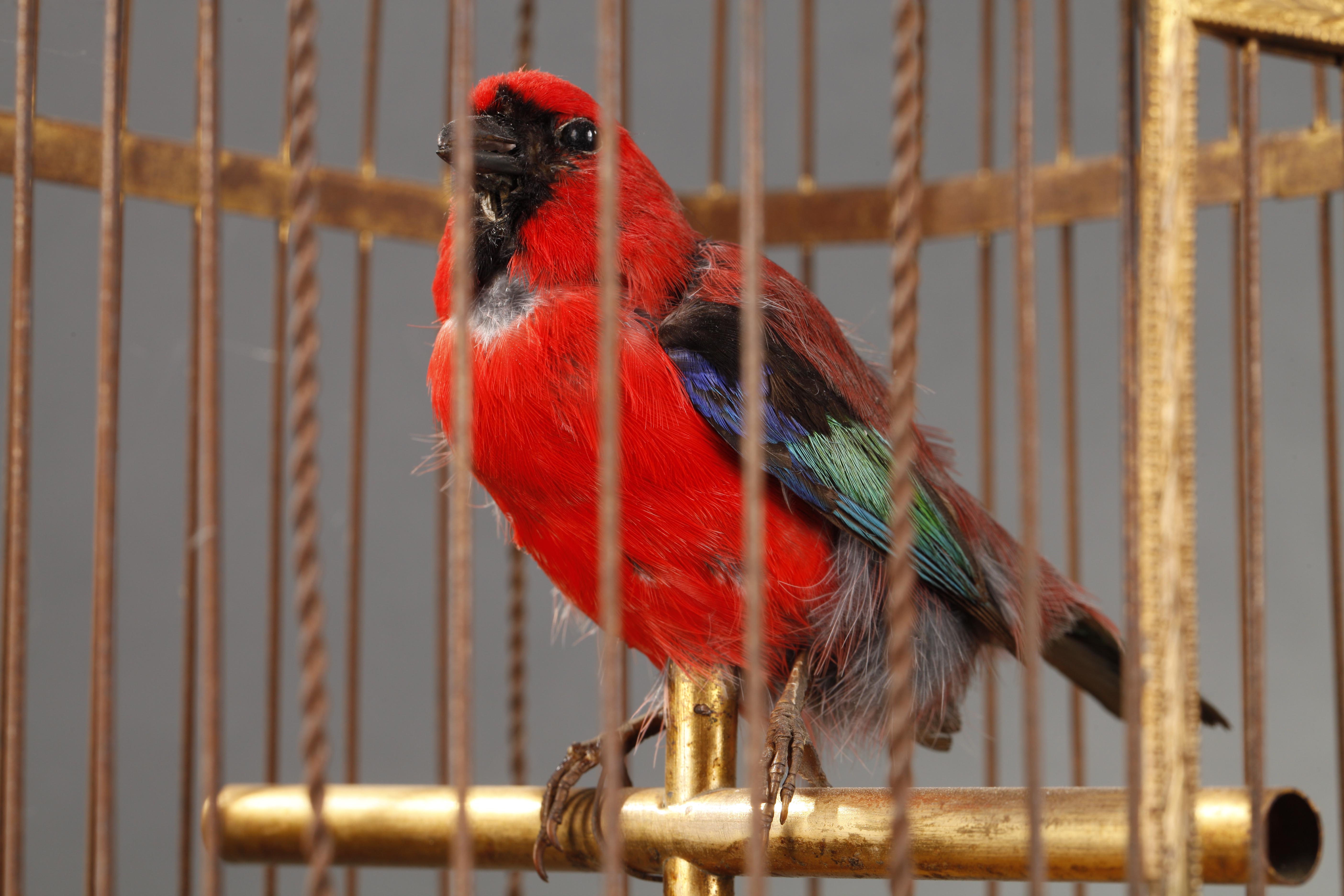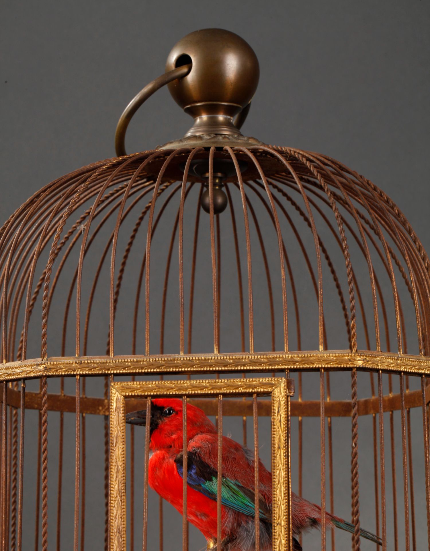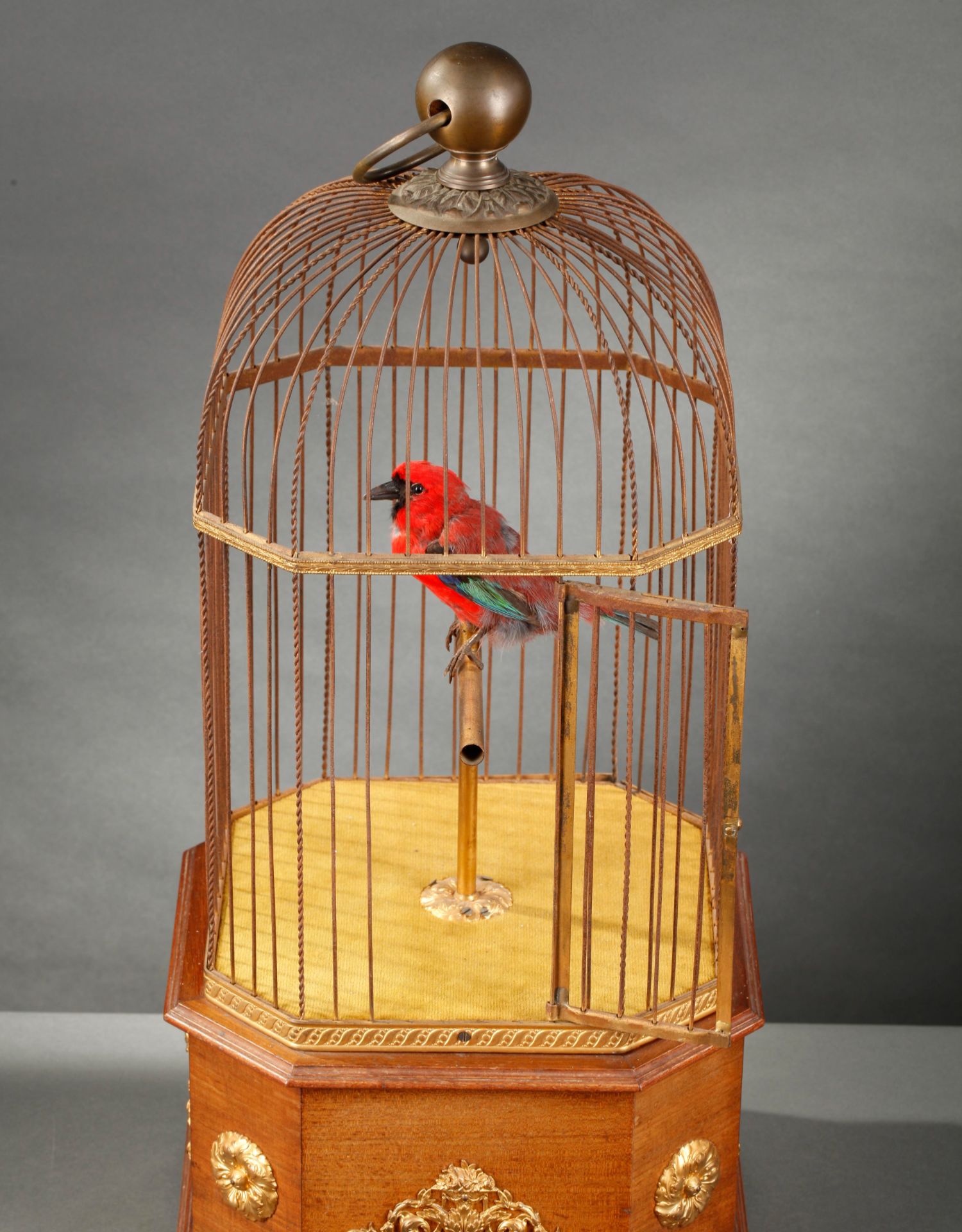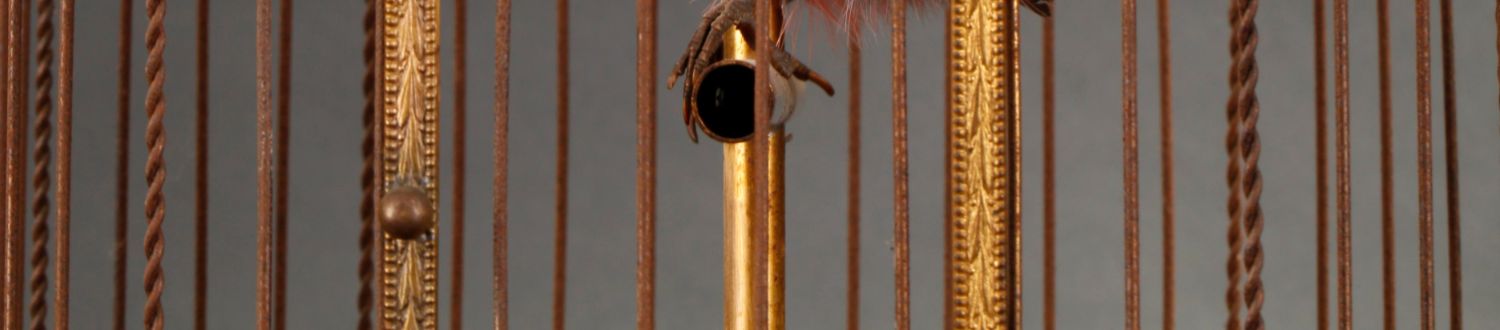 独角鹿西洋古董法国铜鎏金桃花心木鸟笼鸣鸟音乐盒八音盒
