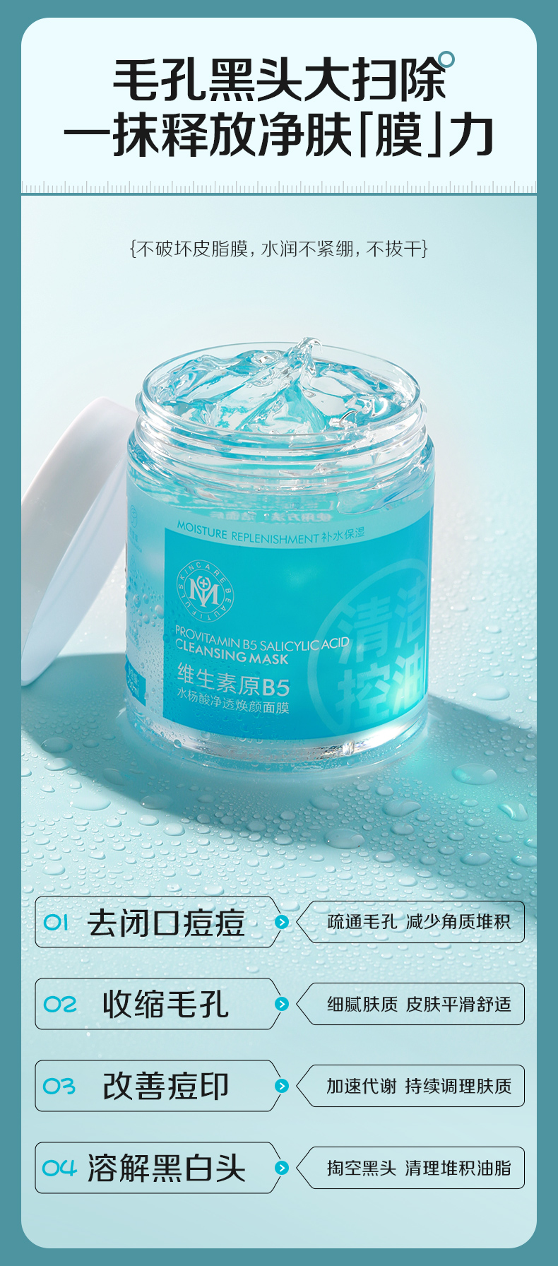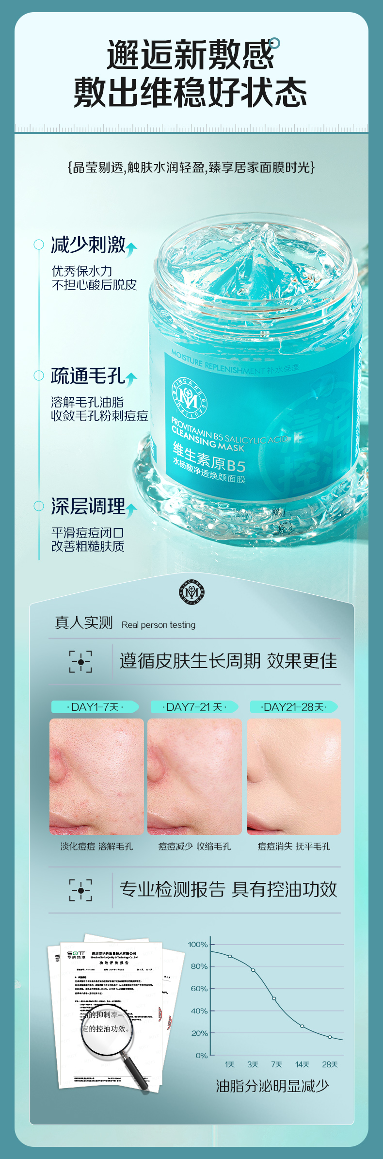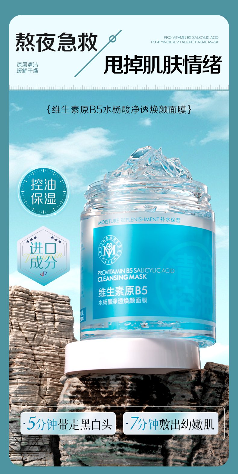 【瑜然美会员专属】瑜然美维生素原B5水杨酸净透焕颜面膜保湿控油深层清洁涂抹式面膜