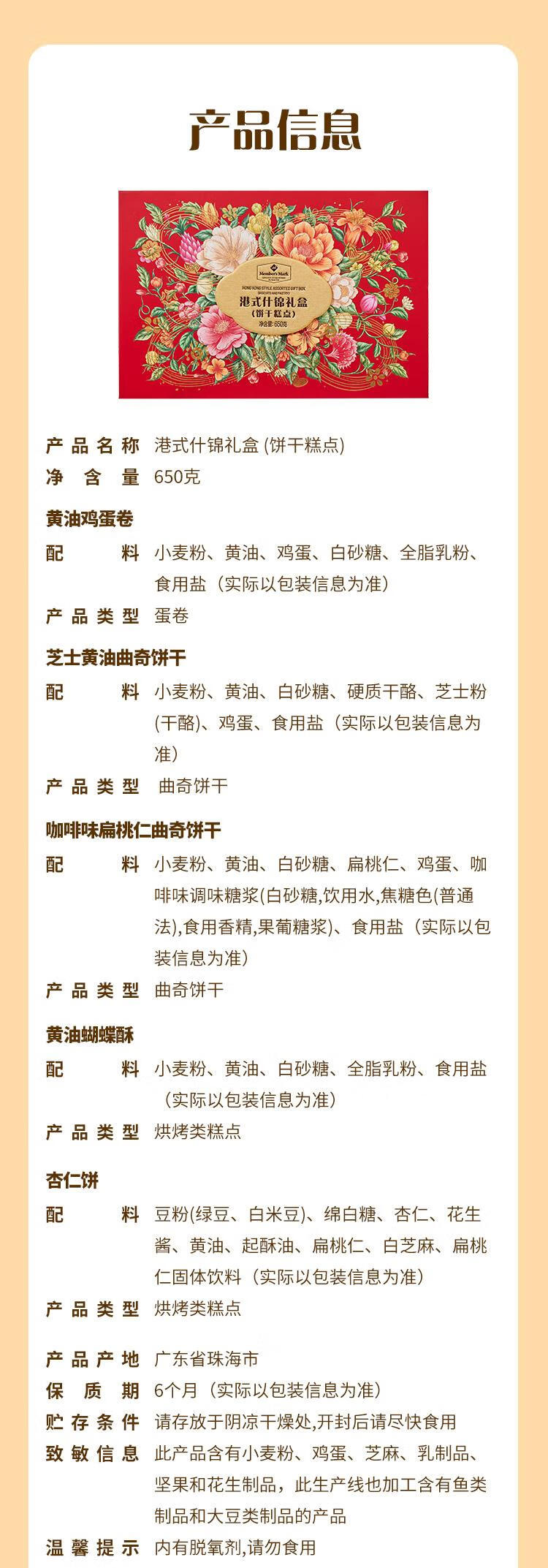 【山姆限定】港式什锦礼盒 饼干糕点 650g/盒