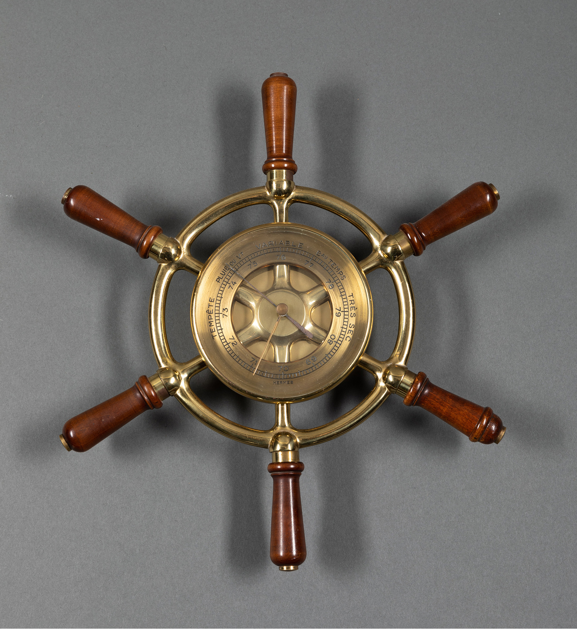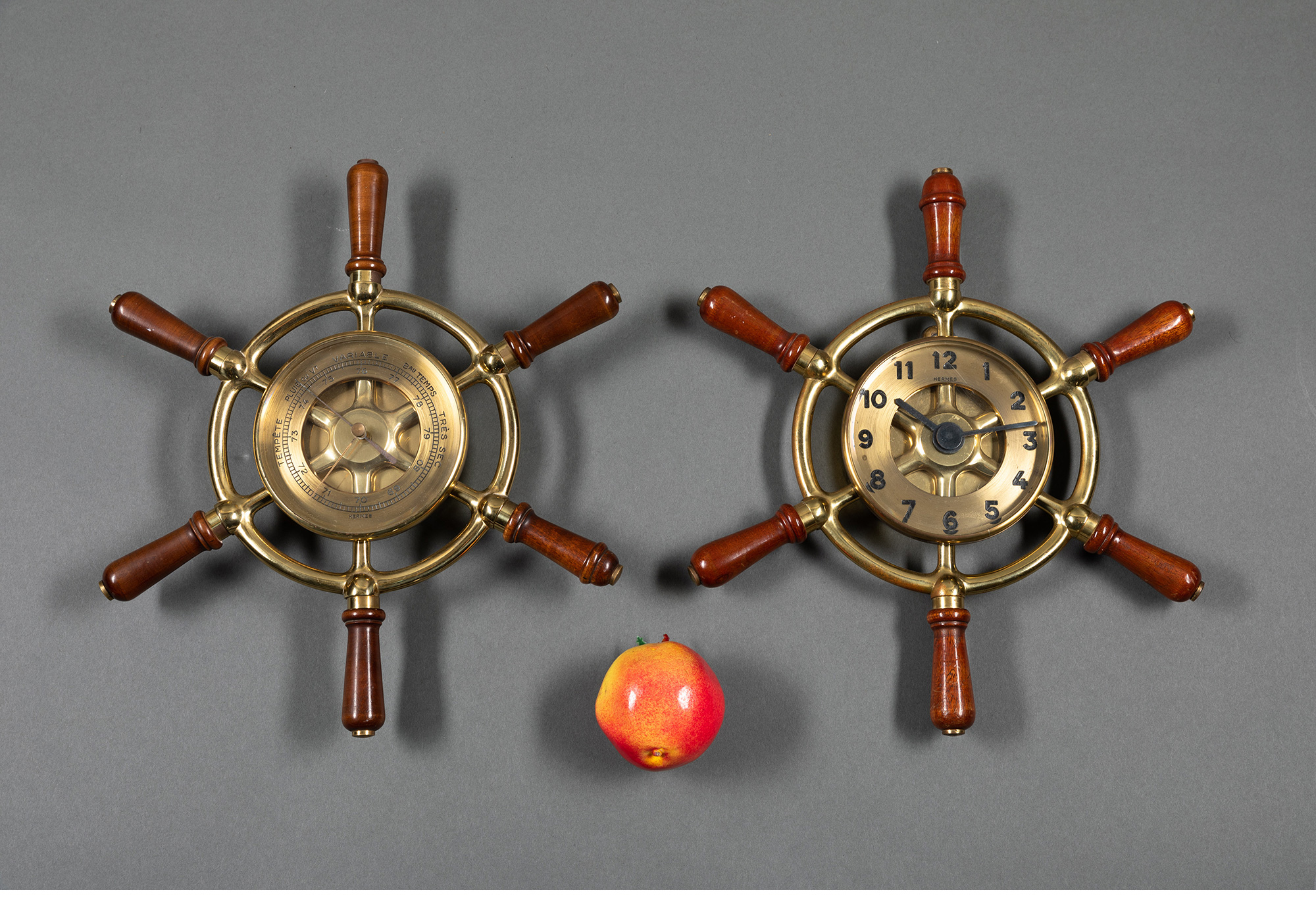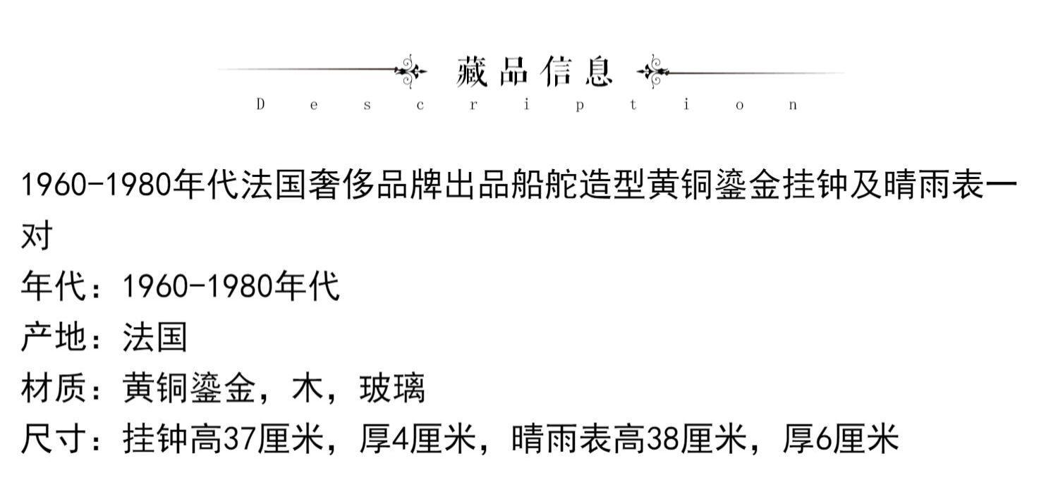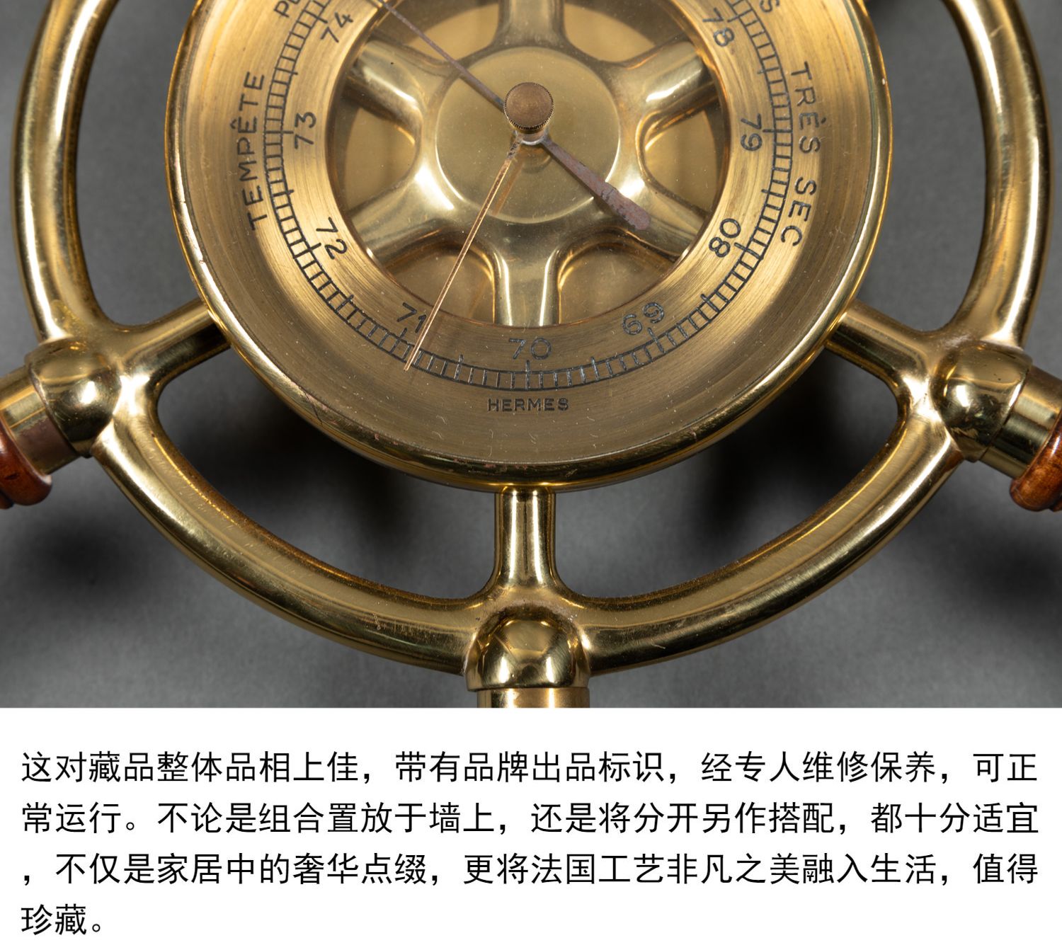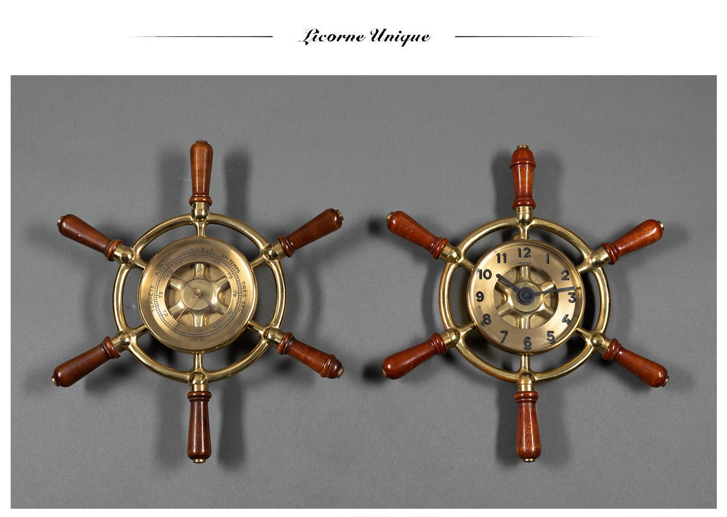 独角鹿西洋古董法国品牌出品船舵造型黄铜鎏金挂钟晴雨表一对