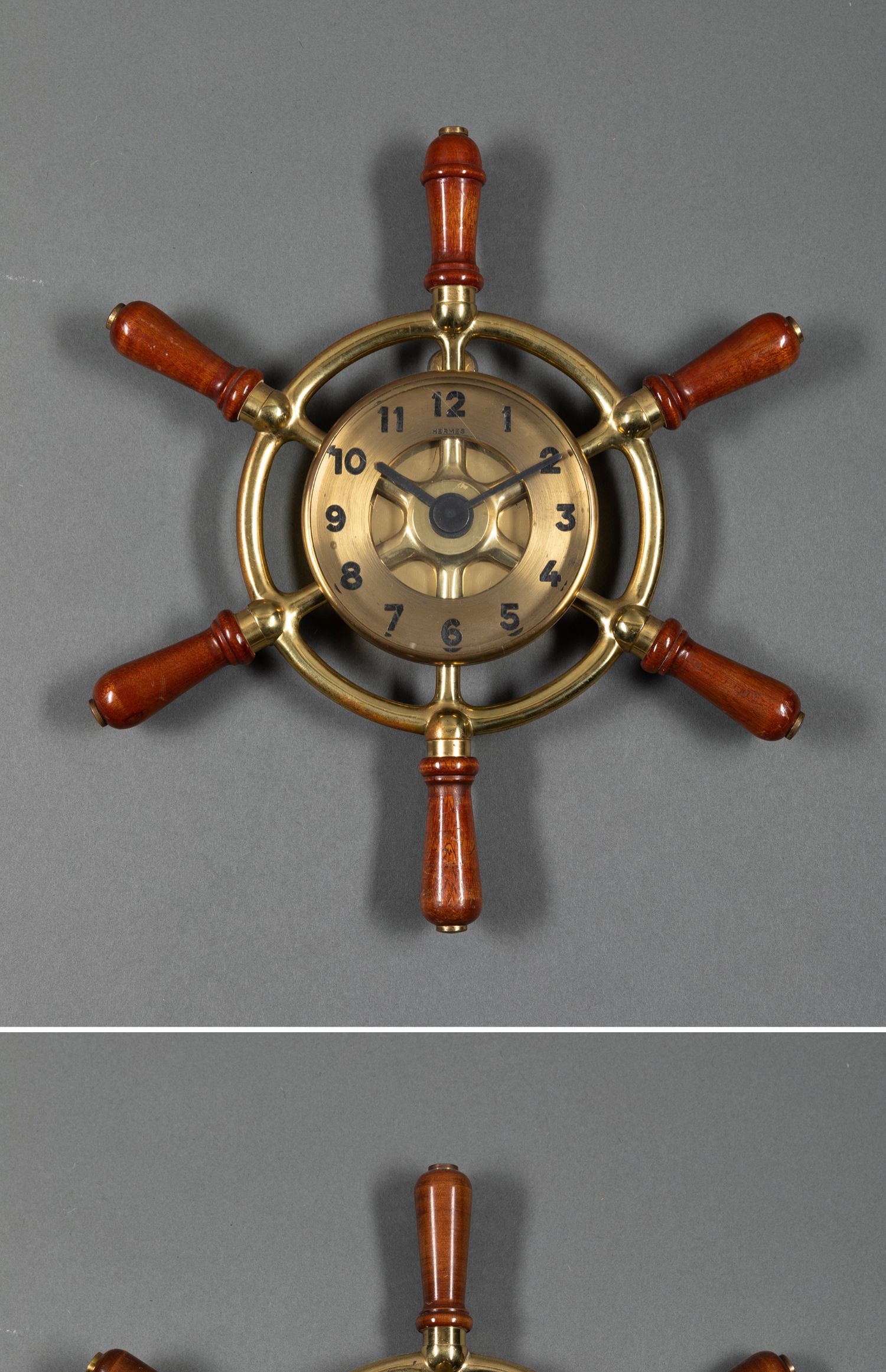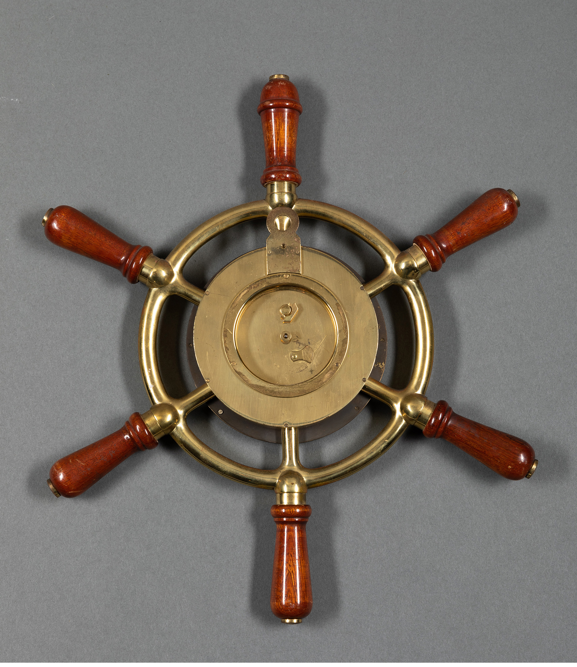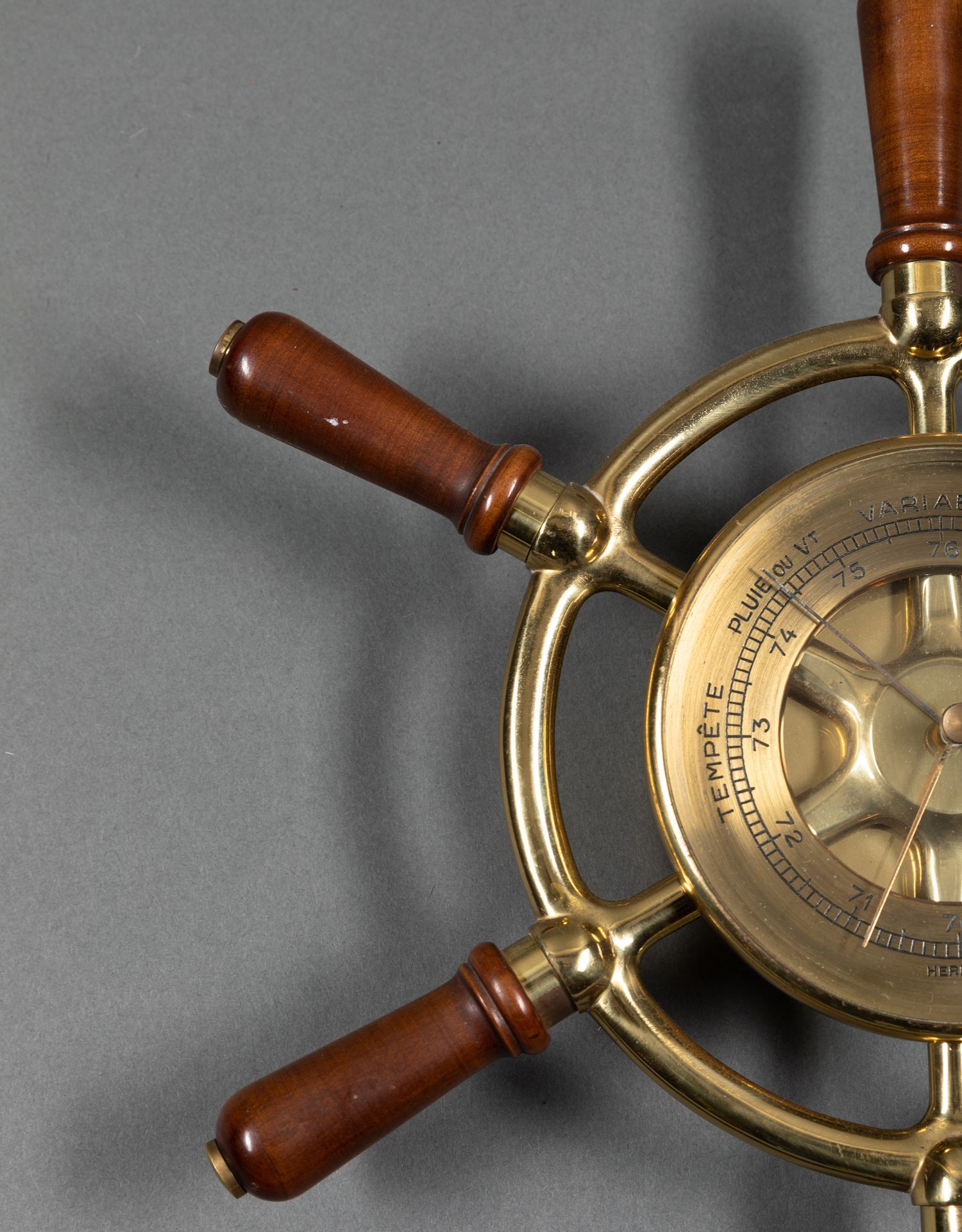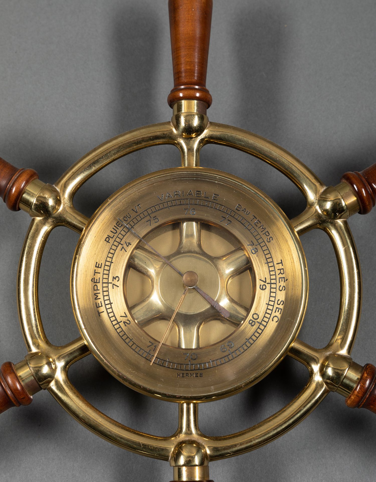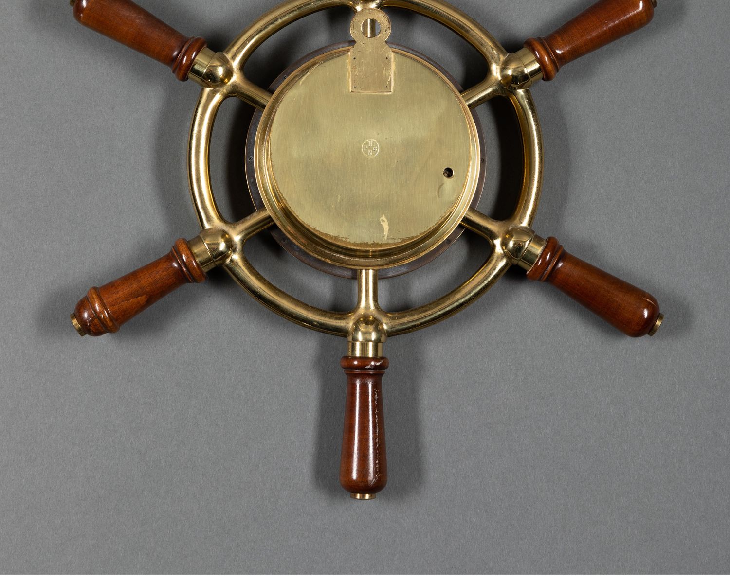 独角鹿西洋古董法国品牌出品船舵造型黄铜鎏金挂钟晴雨表一对