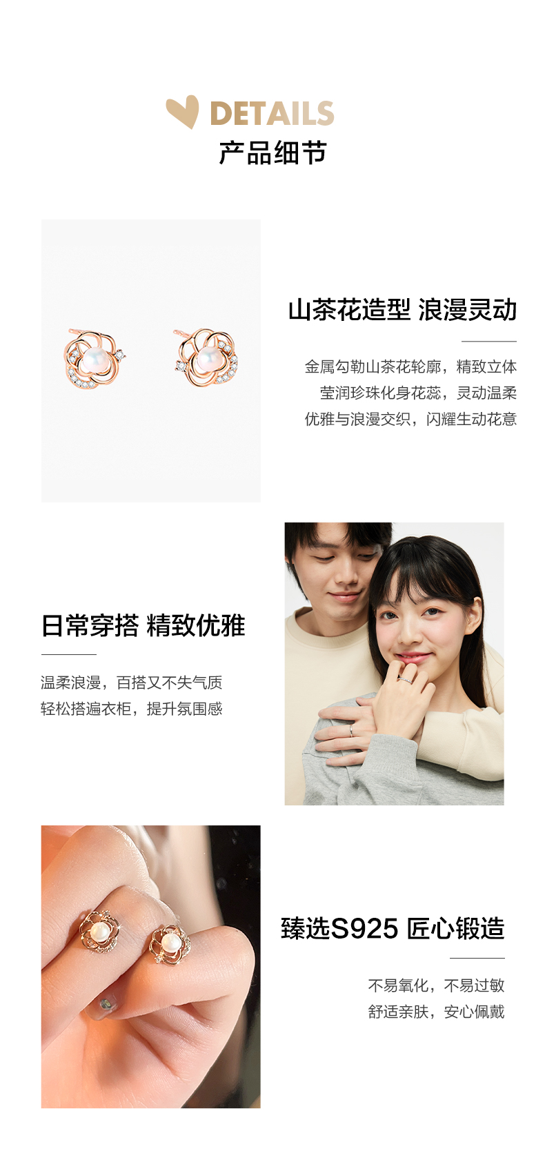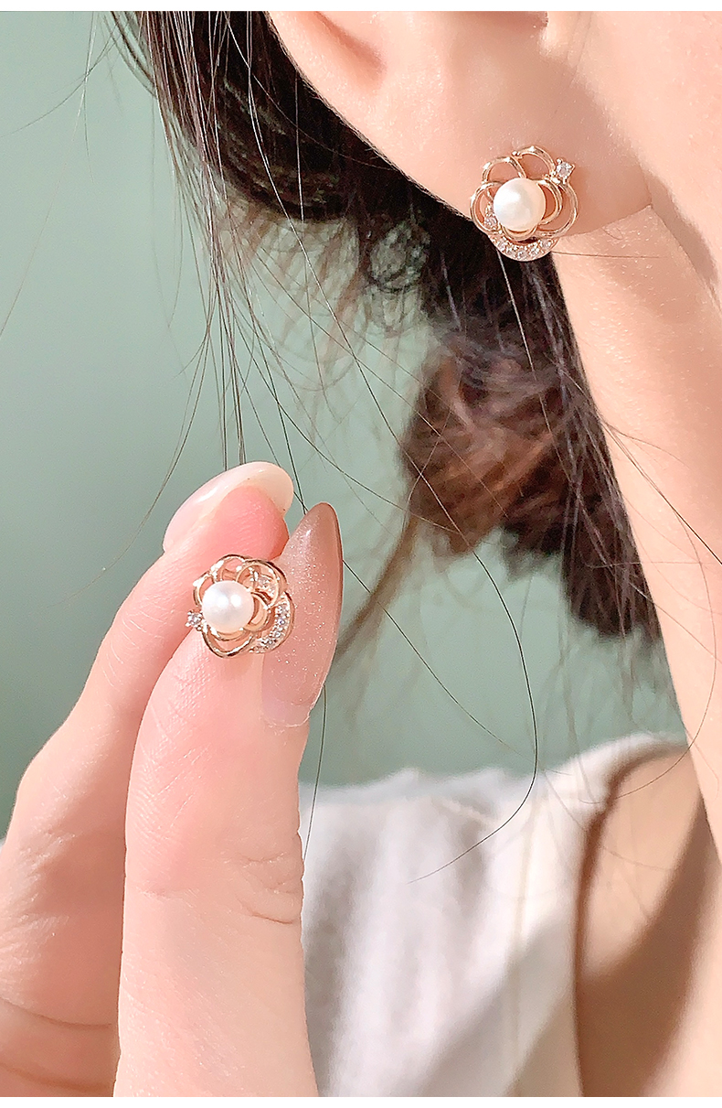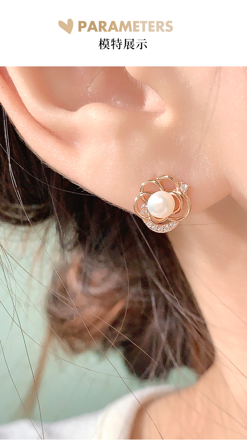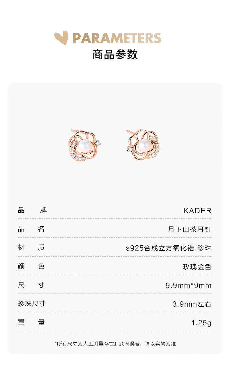 卡蒂罗/KADER【淡水珍珠】月下山茶耳钉 冬日茶花灵动浪漫温柔感耳饰 莹润珍珠优雅温柔圣诞配饰 925银