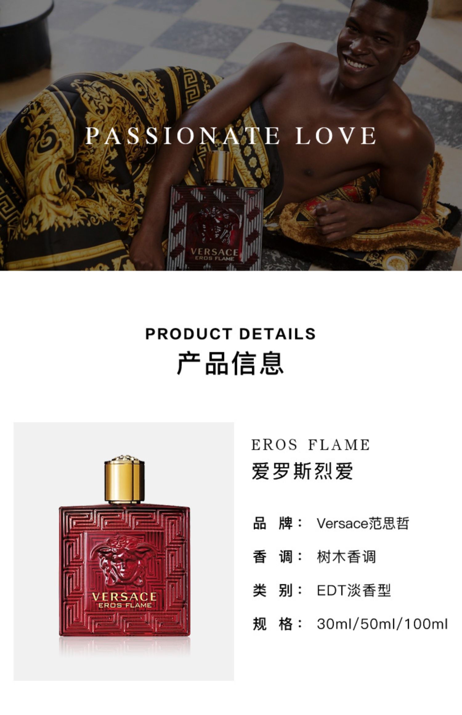 1LPY VERSACE/范思哲爱罗斯烈爱男士香水Eros爱罗斯爱神火焰淡香水持久