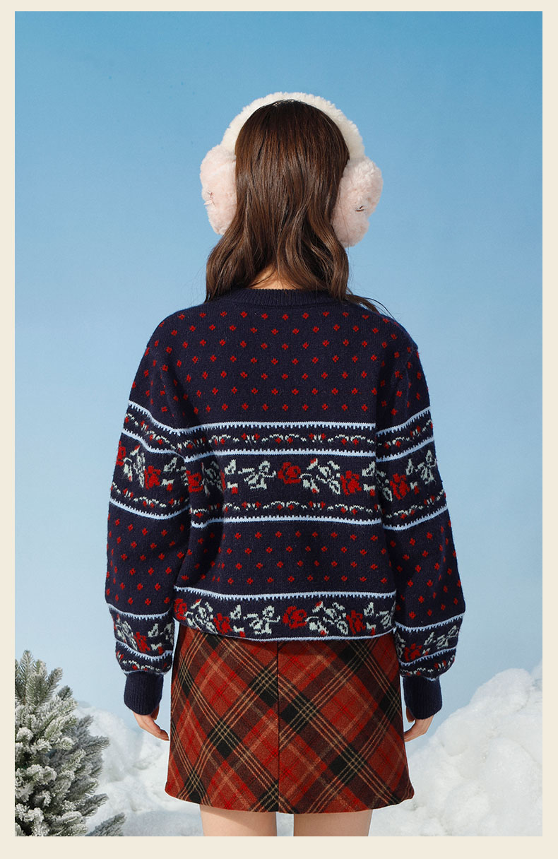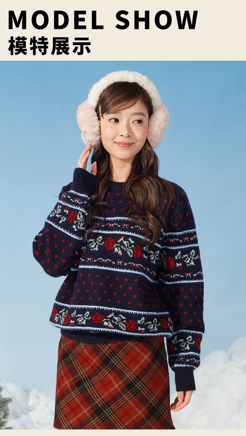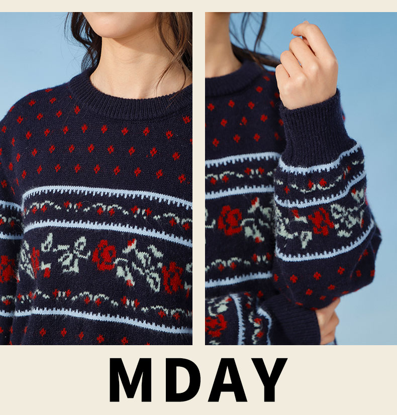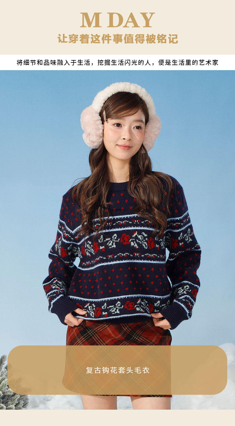 圆领宽松休闲复古钩花套头毛衣-纪念日百货门店同款167943078