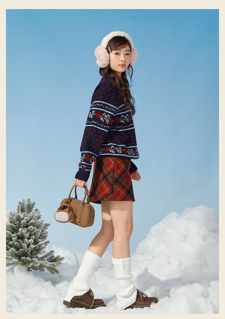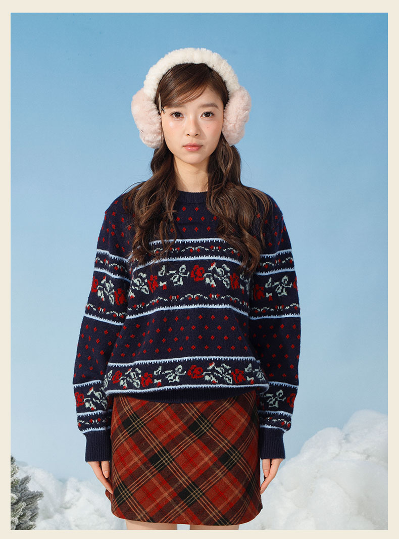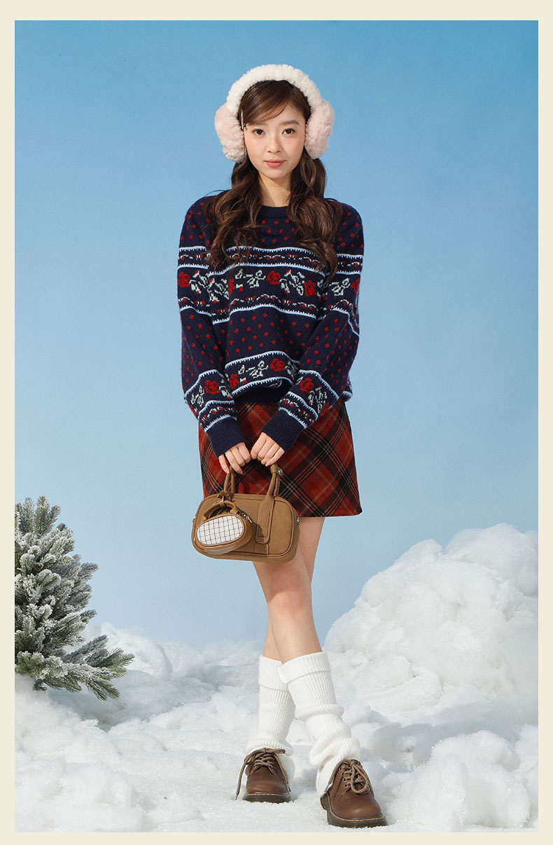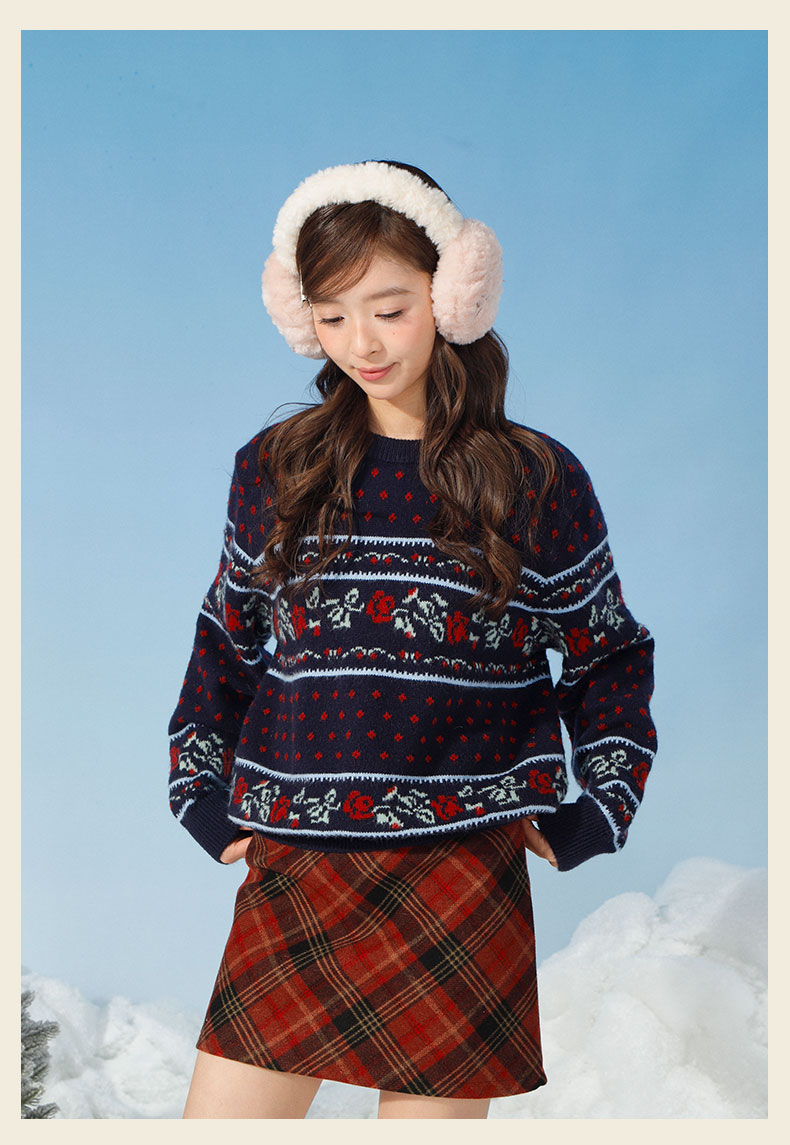 圆领宽松休闲复古钩花套头毛衣-纪念日百货门店同款167943078