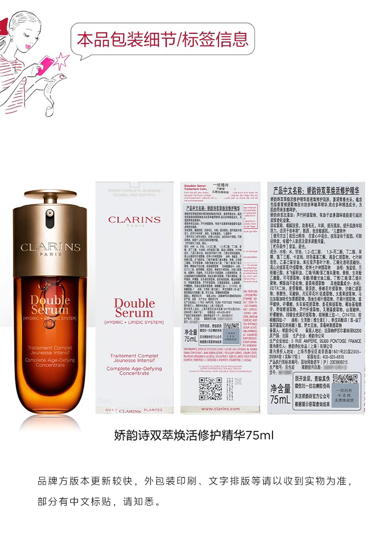 娇韵诗新款第九代双萃焕活修护精华露75ml 保湿紧致