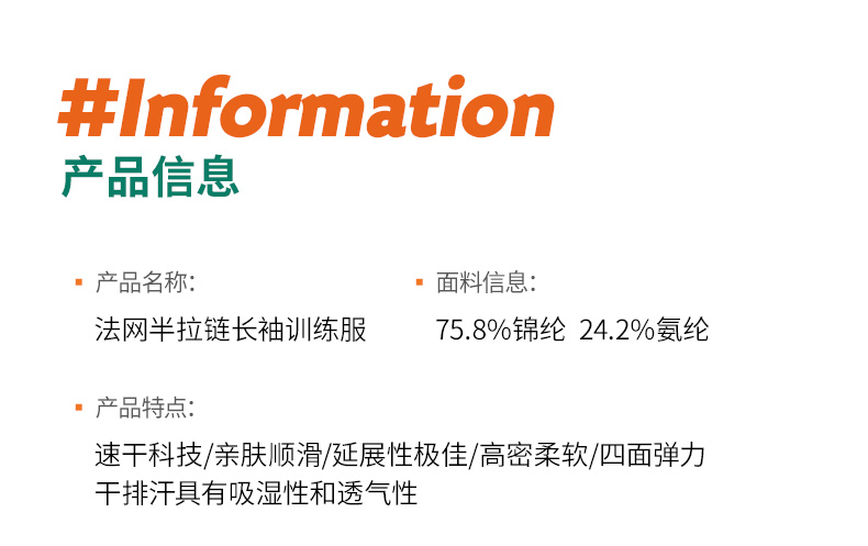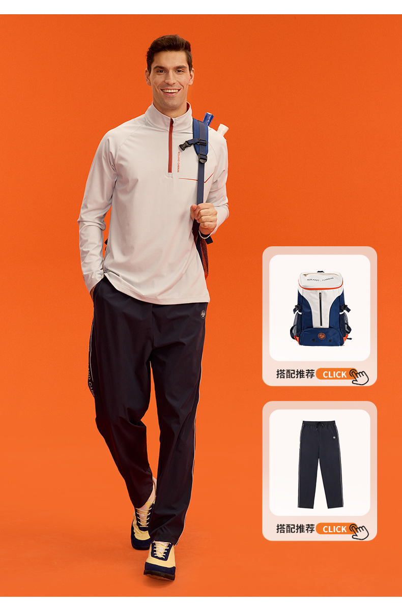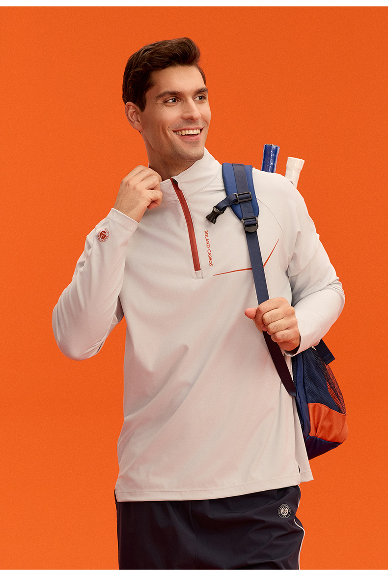 罗兰加洛斯法网运动T恤男款长袖半拉链立领速干透气网球服训练服