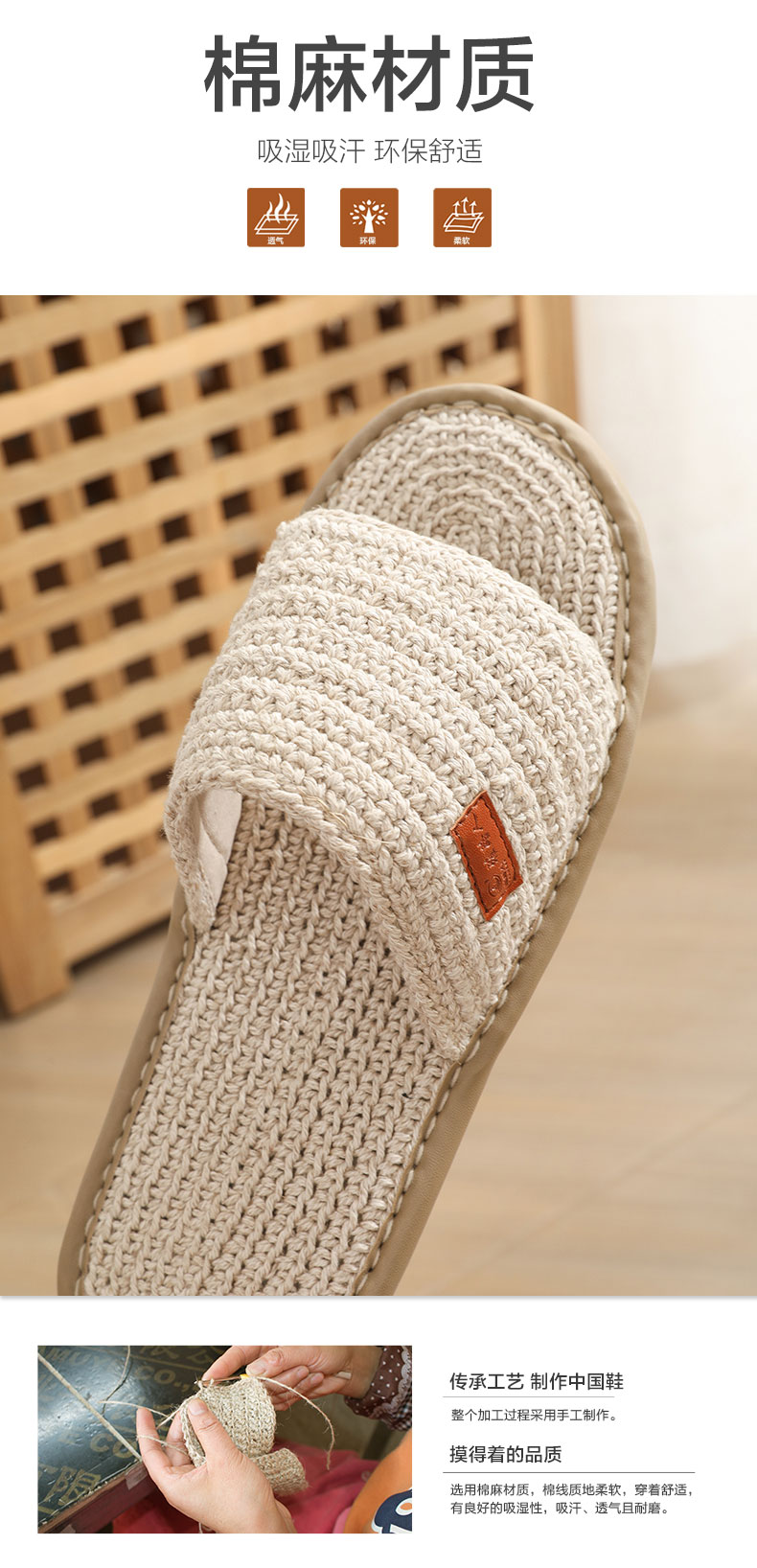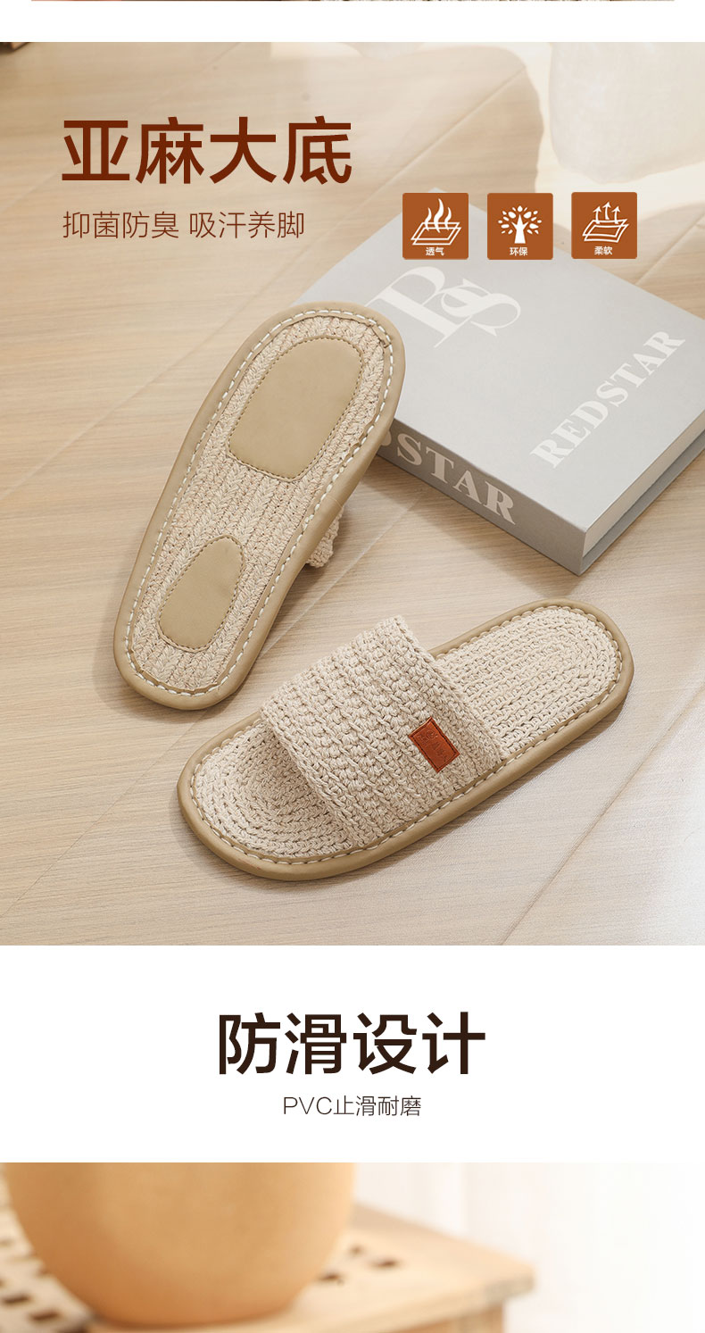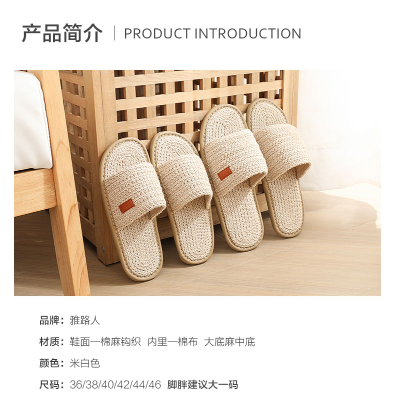 夏季新品雅路人软底男女士手工高端棉麻编织拖鞋防臭吸汗环保静音2023-06