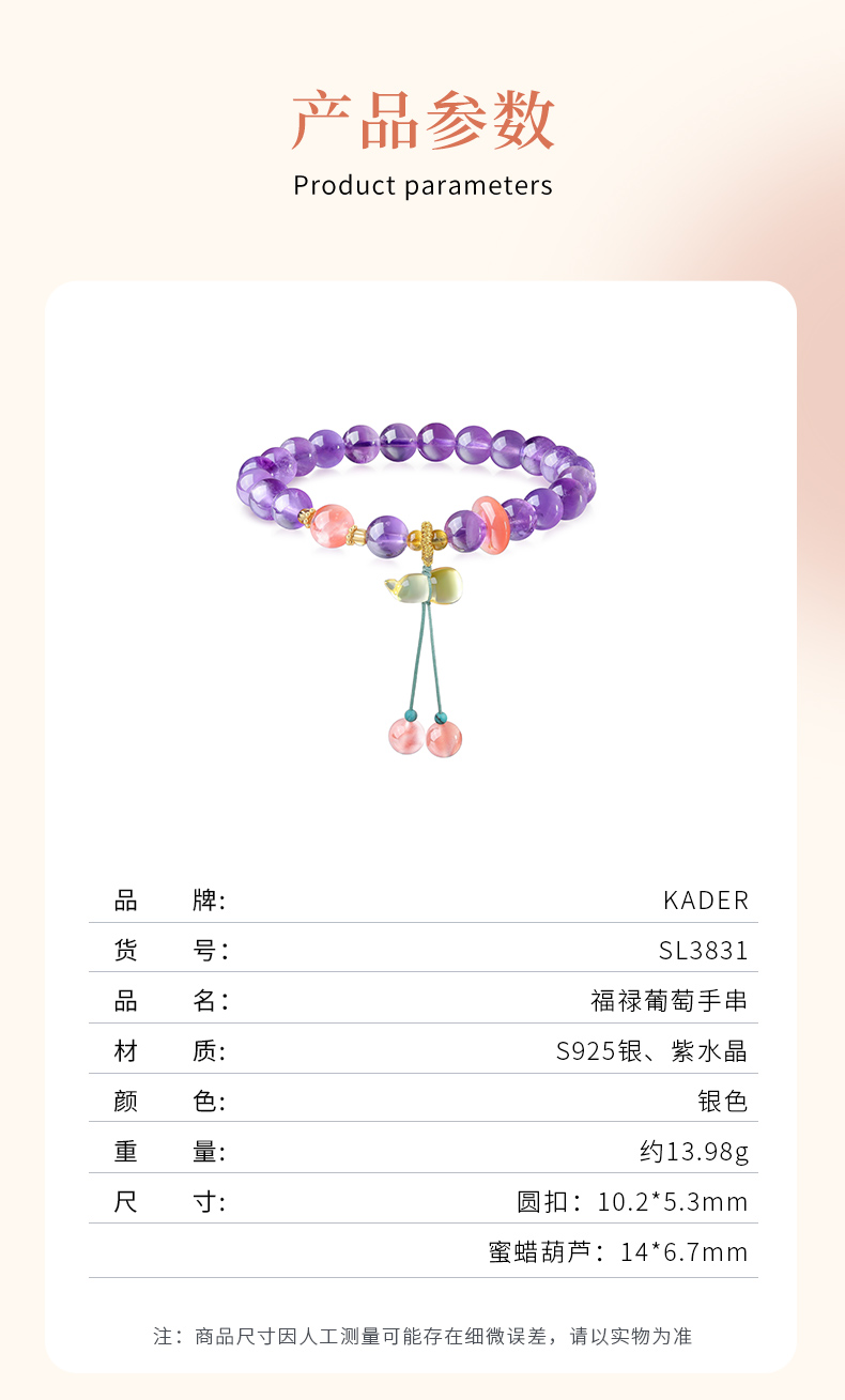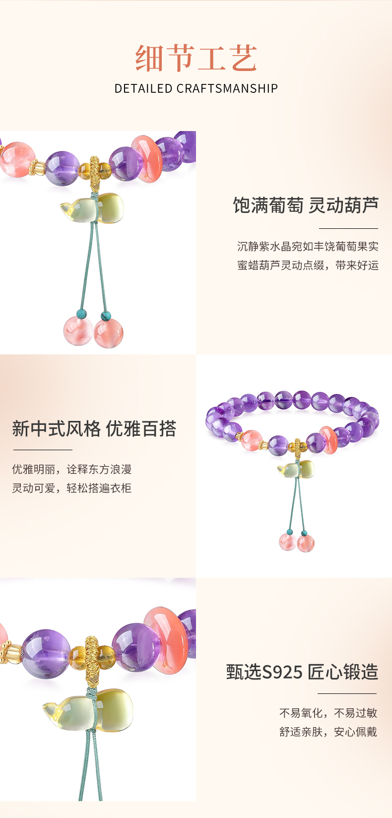 卡蒂罗KADER 福禄葡萄手串 新中式国风紫气东来好运连连招财纳福 小众轻奢精致日常百搭 前程似锦学业有成