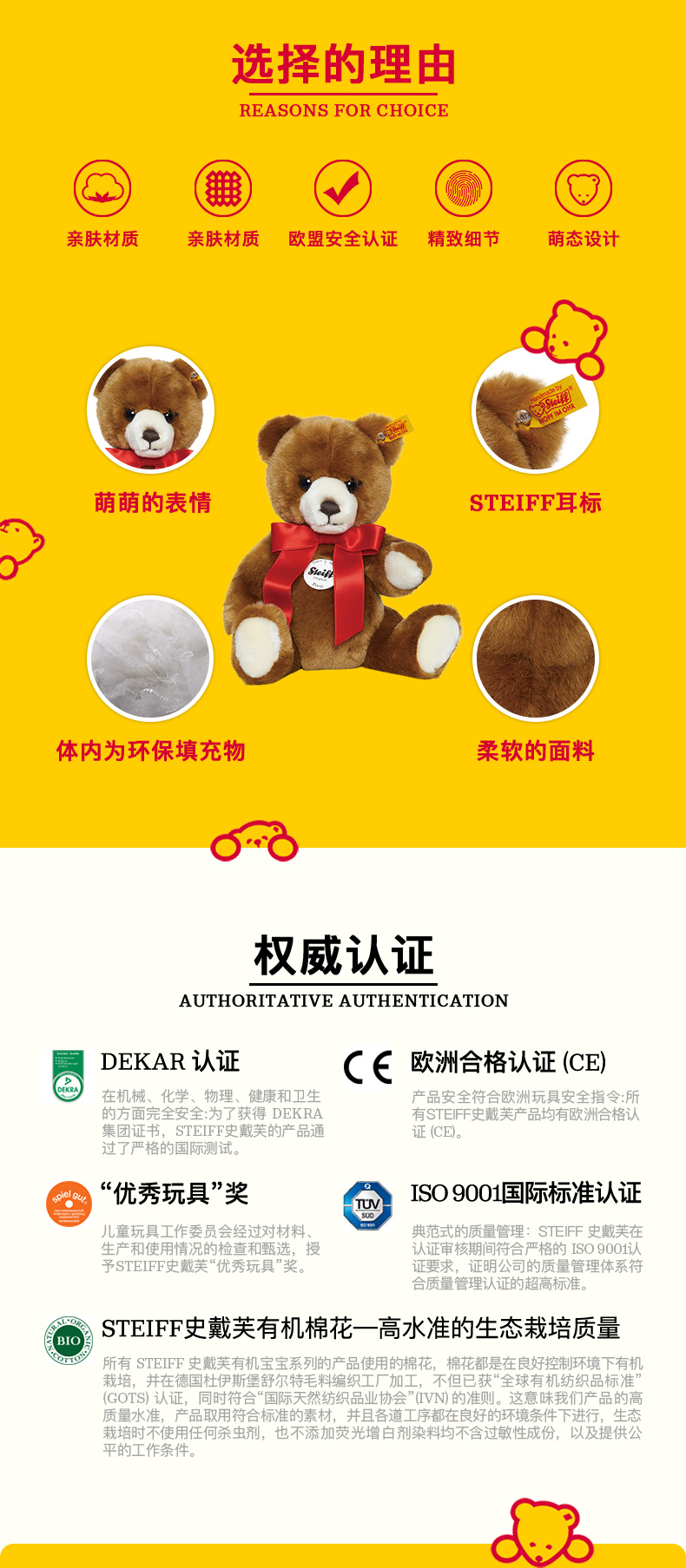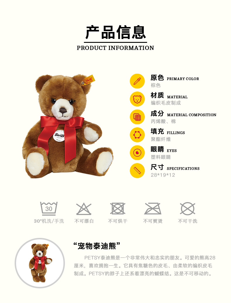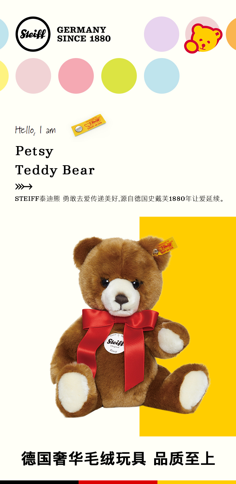 Steiff/史黛芙 Petsy泰迪熊红色领结款 28cm 012402