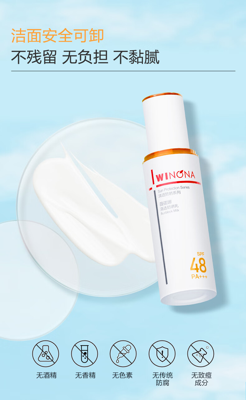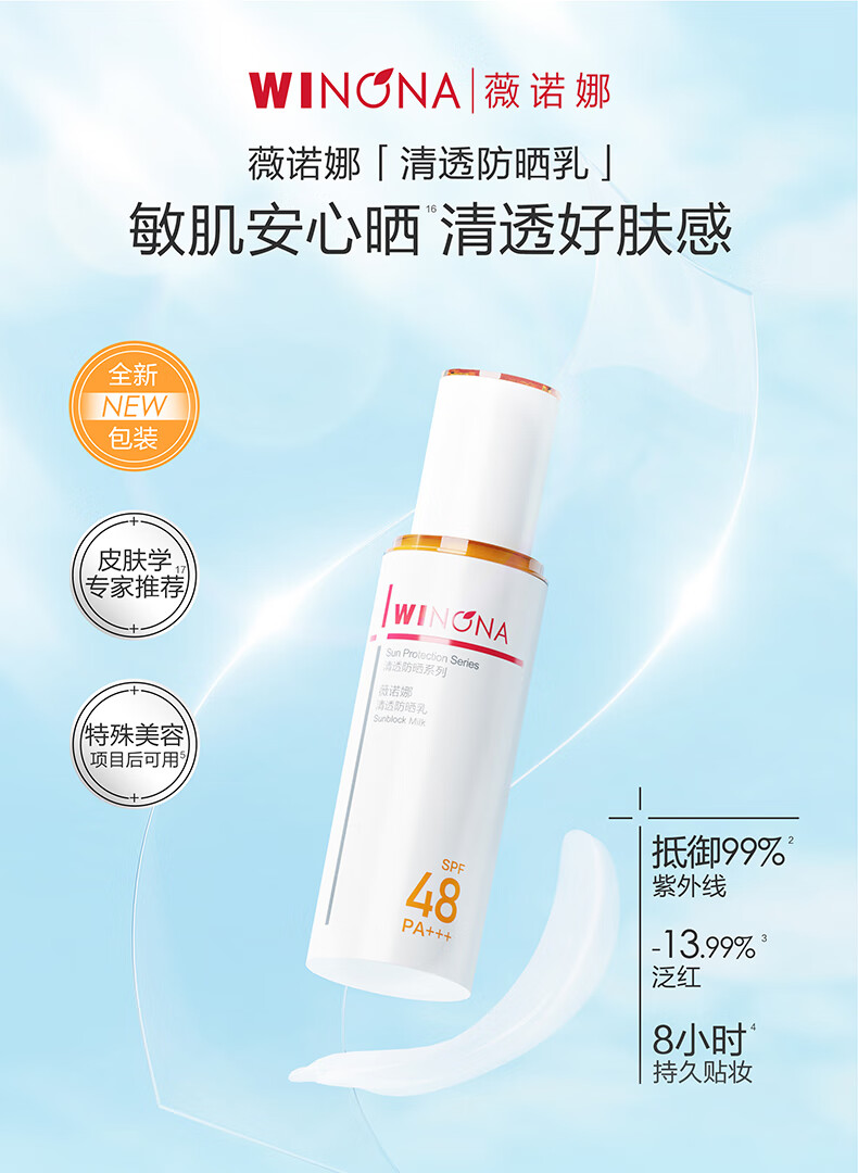 【清仓特价】薇诺娜清透防晒乳50g/瓶 SPF48+,PA+++【特】(升级新版本)