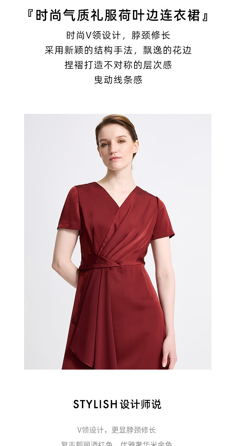 成熟、稳重、高贵典雅、大方得体 融合东方文化的含蓄和法国的浪漫 将创意的艺术性与消费需求相结合 为自信女性塑造高品质场合服装