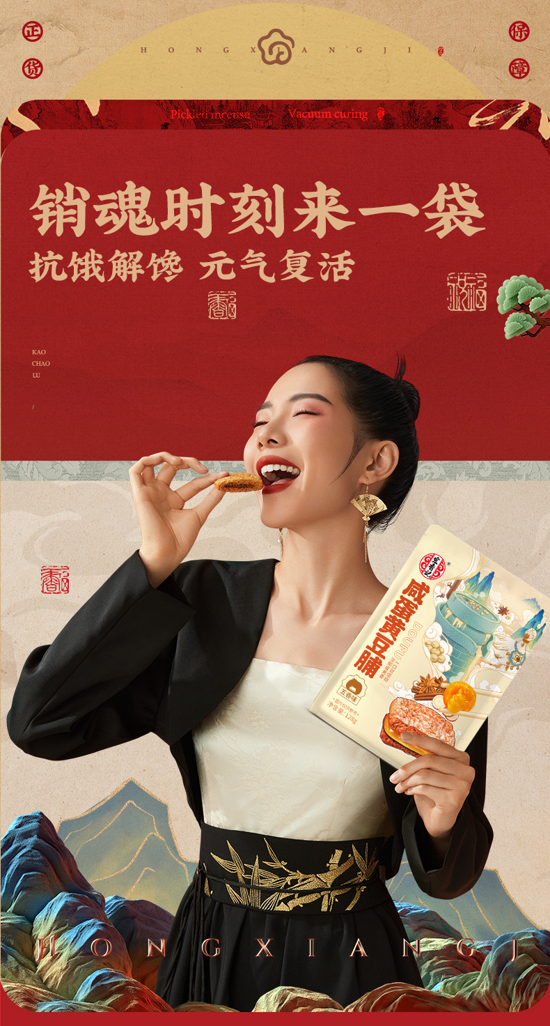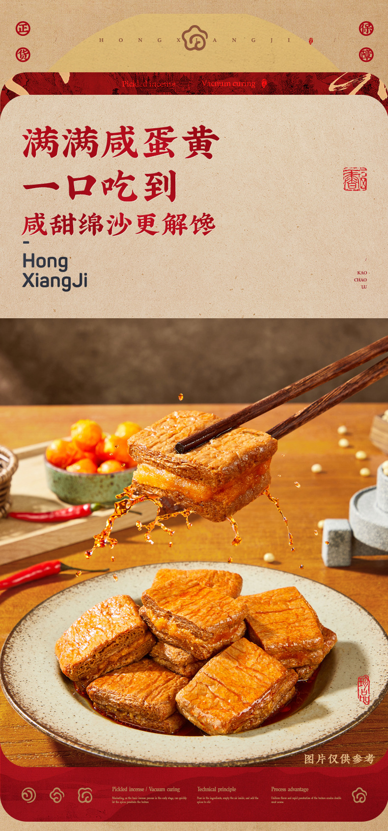 【让味蕾的难忘记忆!宏香记咸蛋黄夹心豆脯豆干】香辣解馋零食 办公室休闲食品 营养美味 学生下午茶课间小零食解馋必备