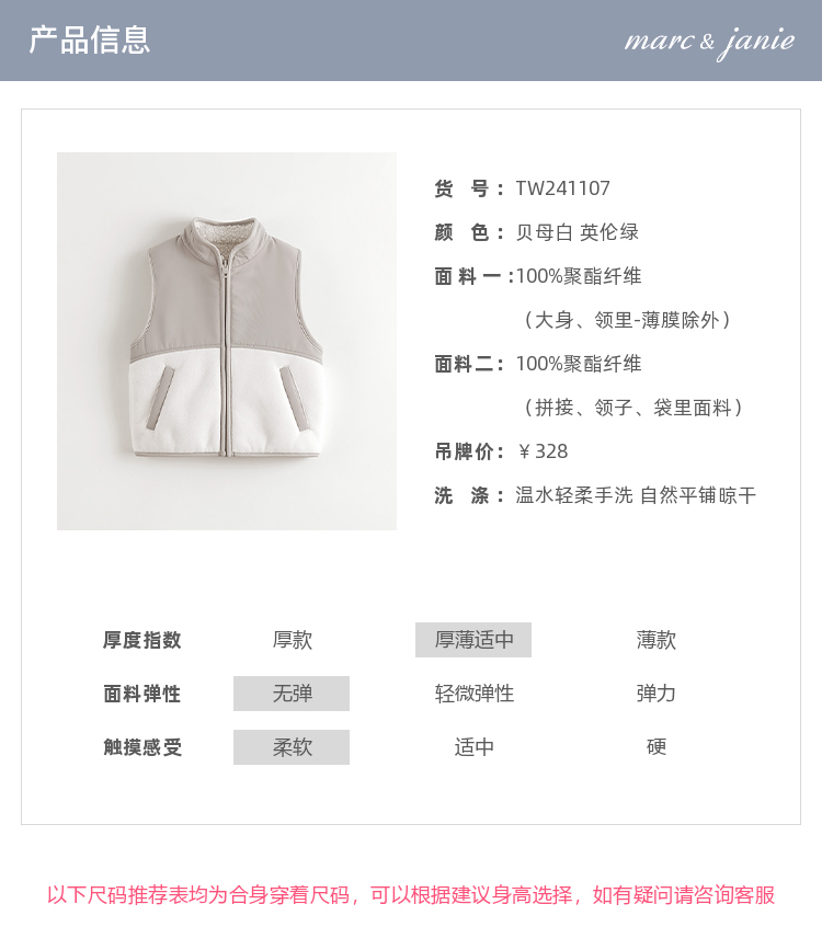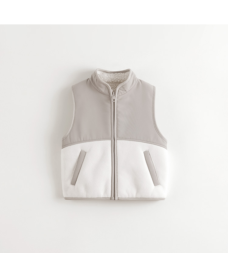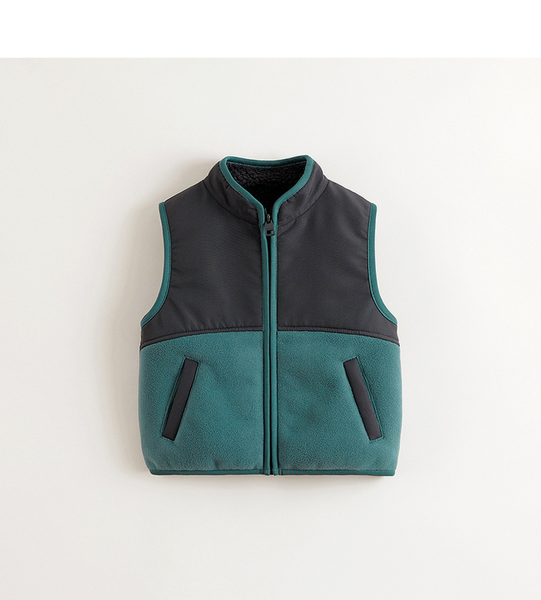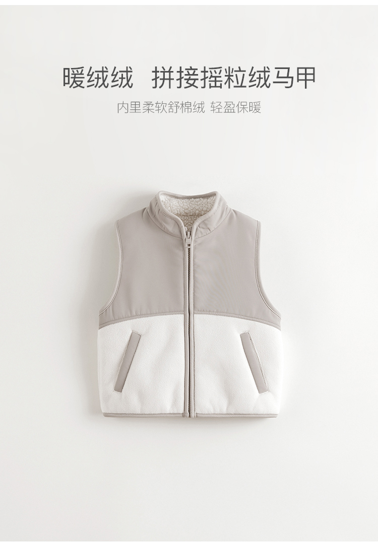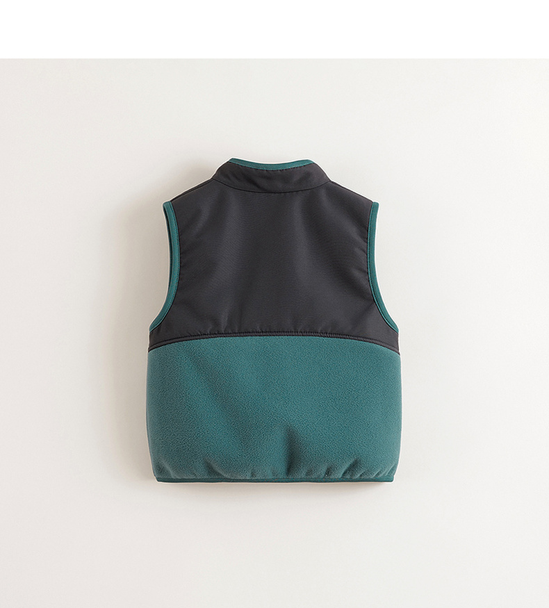 马克珍妮男童拼接摇粒绒马甲 儿童加绒上衣2024年秋冬新款241107