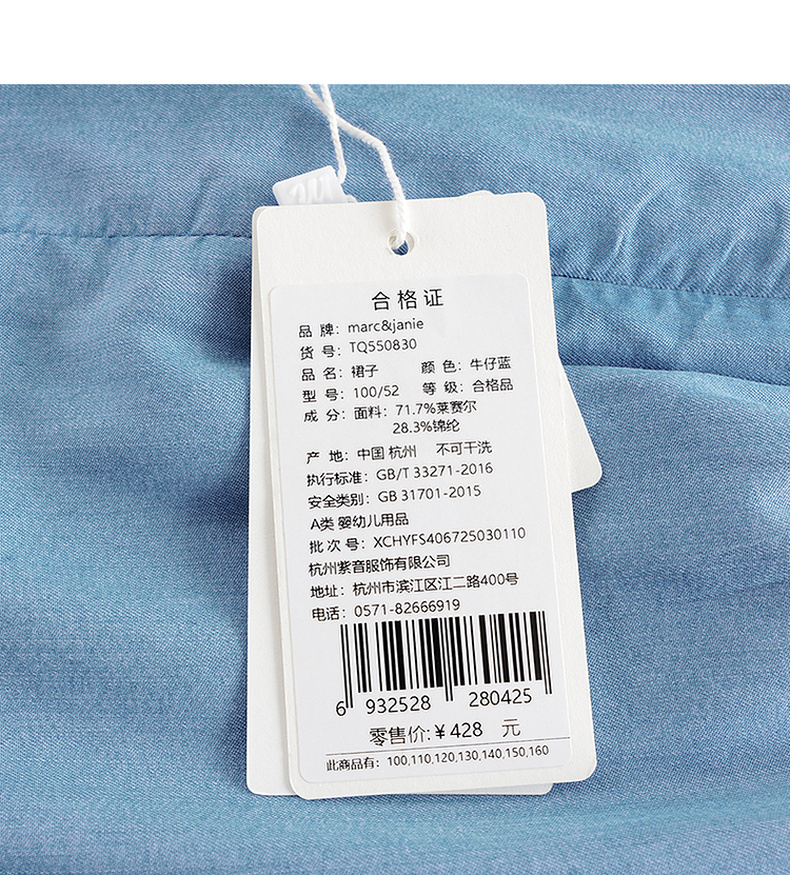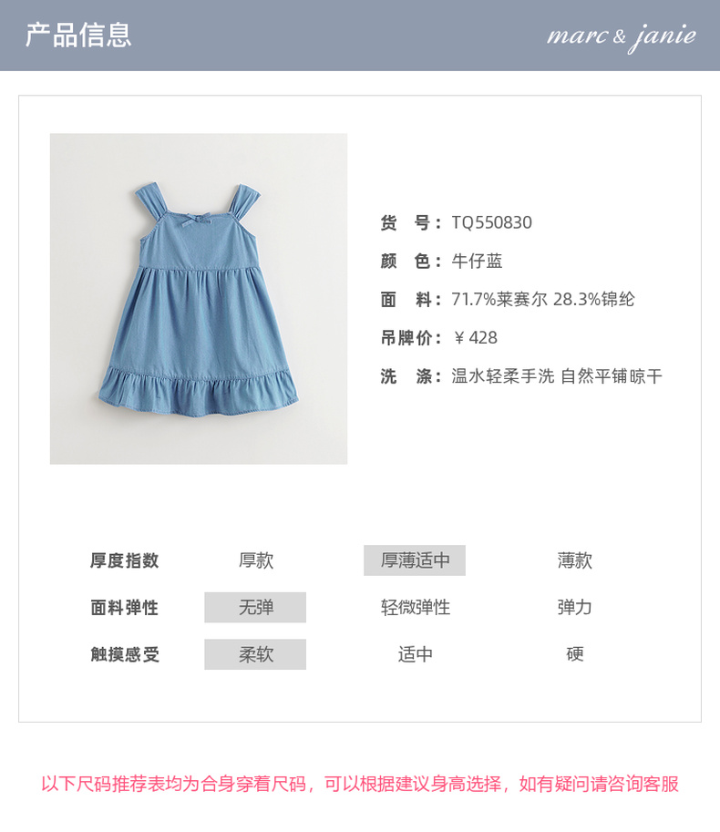 【清凉防晒】马克珍妮女童天丝牛仔吊带裙儿童裙子夏装新款550830