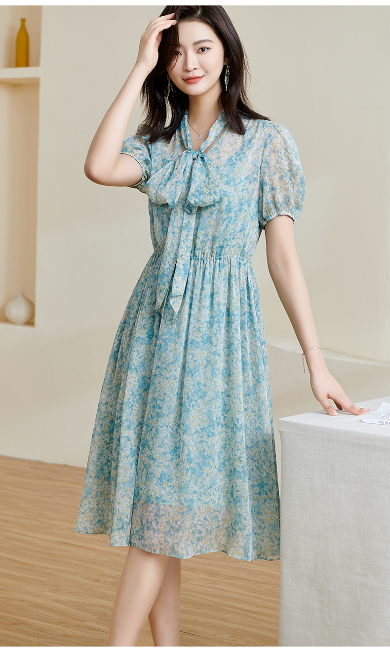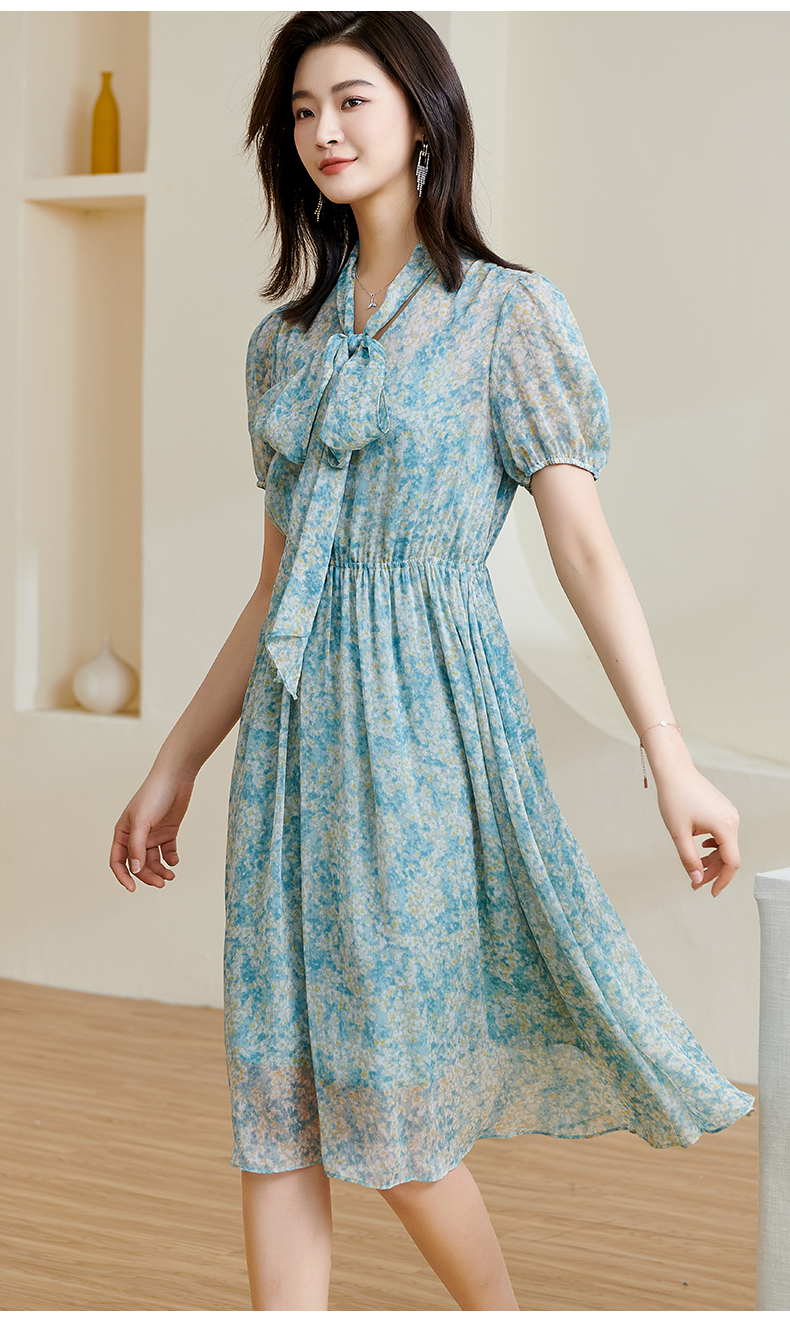 米思阳2025夏季新款甜美浪漫碎花裙绑带收腰显瘦遮肉连衣裙子1358