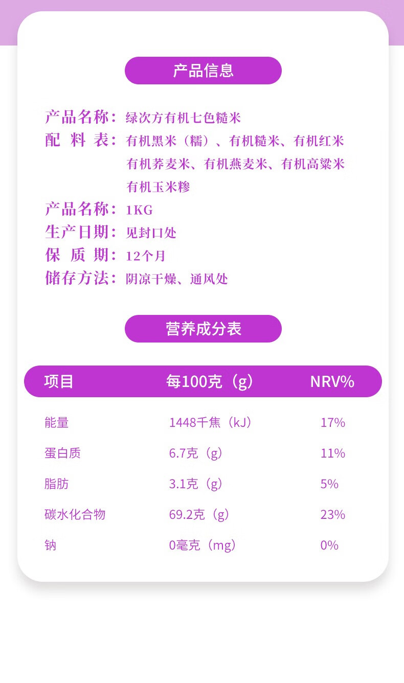 绿次方 绿次方 有机杂粮 有机七色糙米1000g五谷杂粮主食营养健康粗粮 1kg