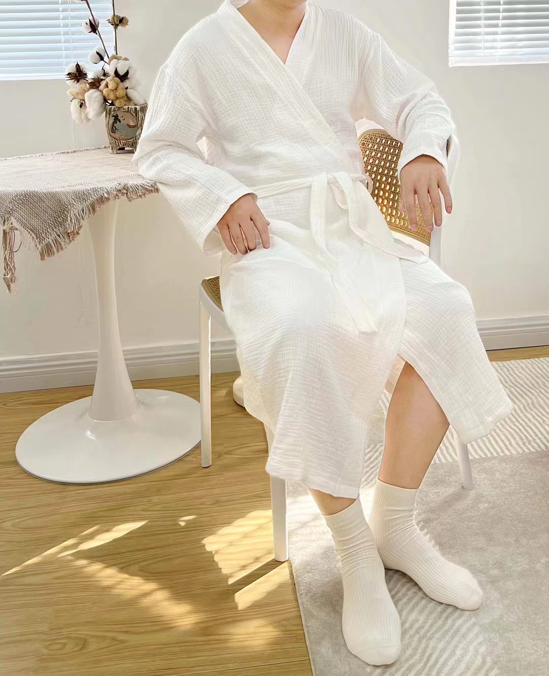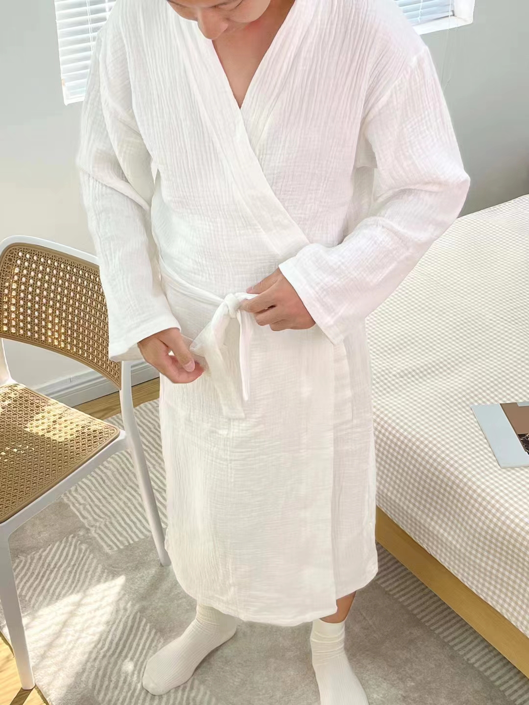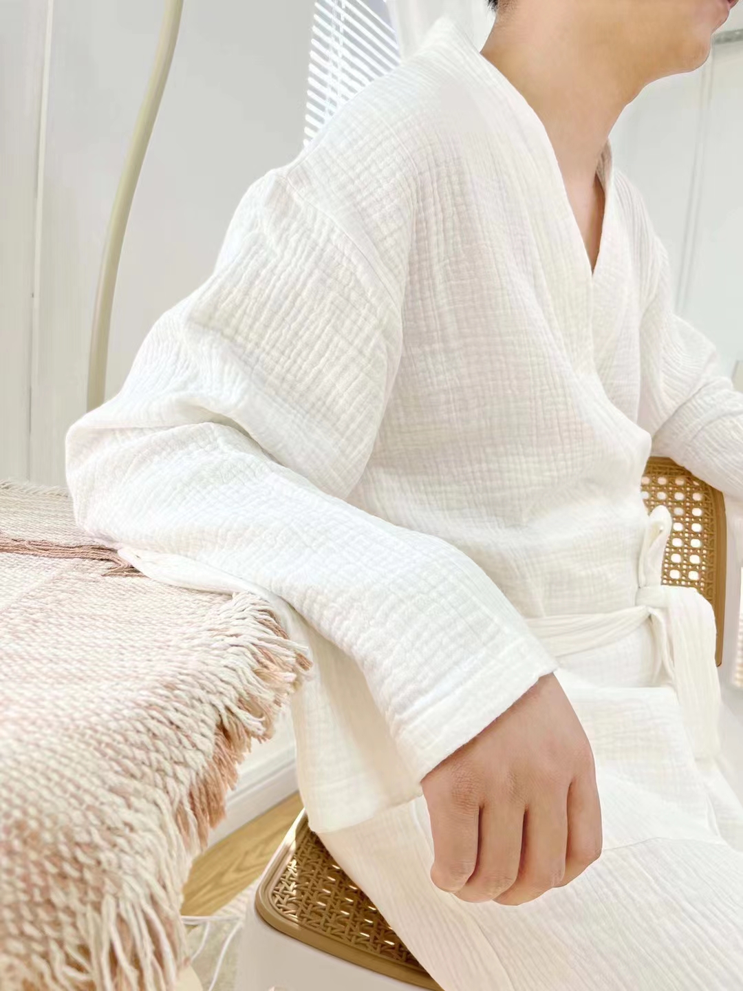 素道有机彩棉白色泡泡纱浴袍 男款 女款