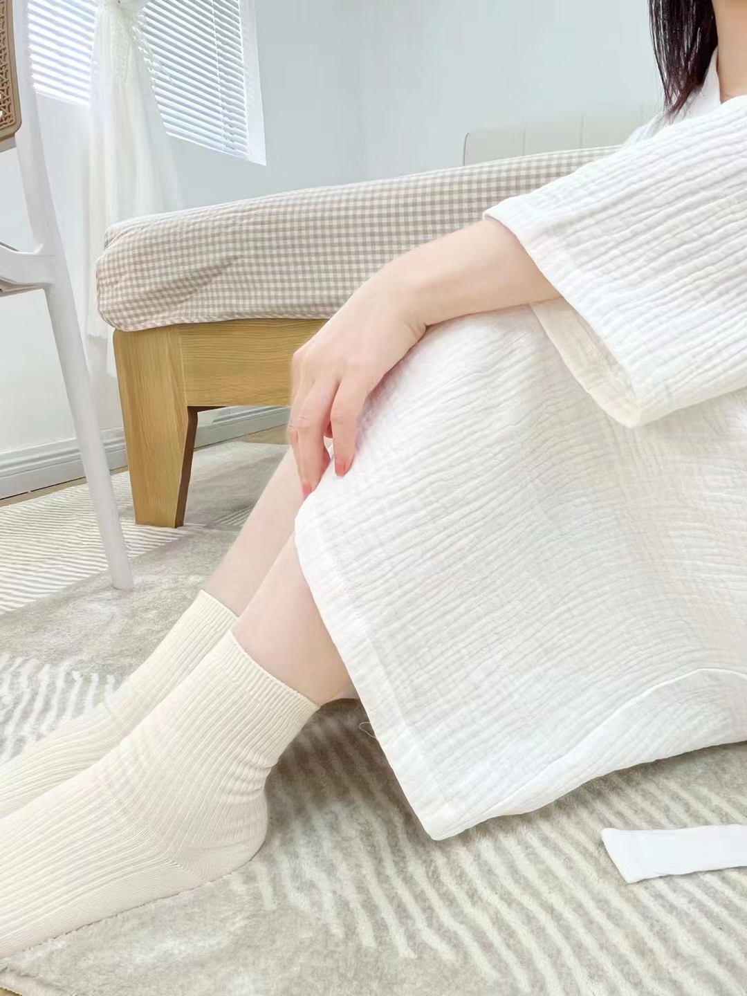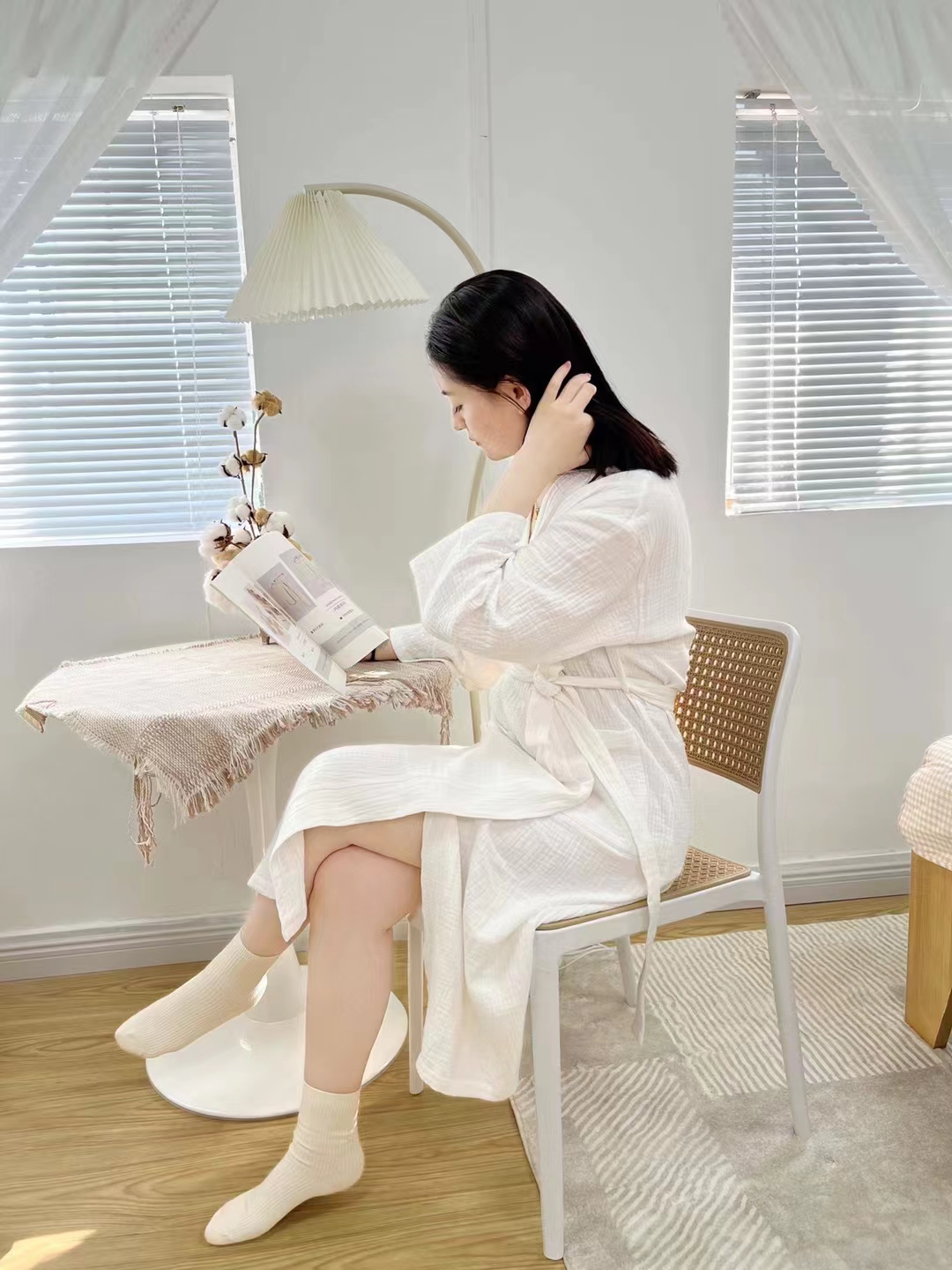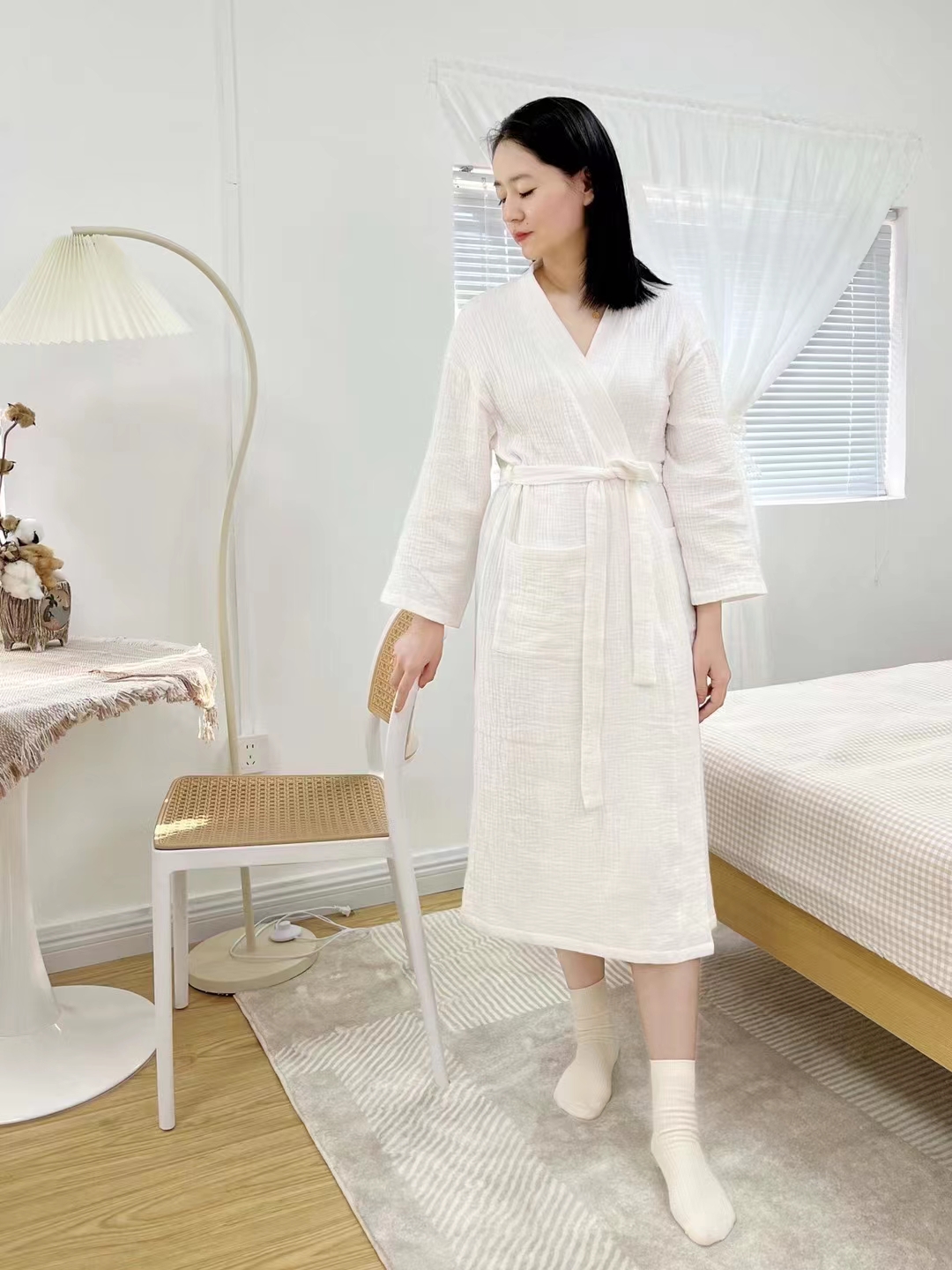 素道有机彩棉白色泡泡纱浴袍 男款 女款
