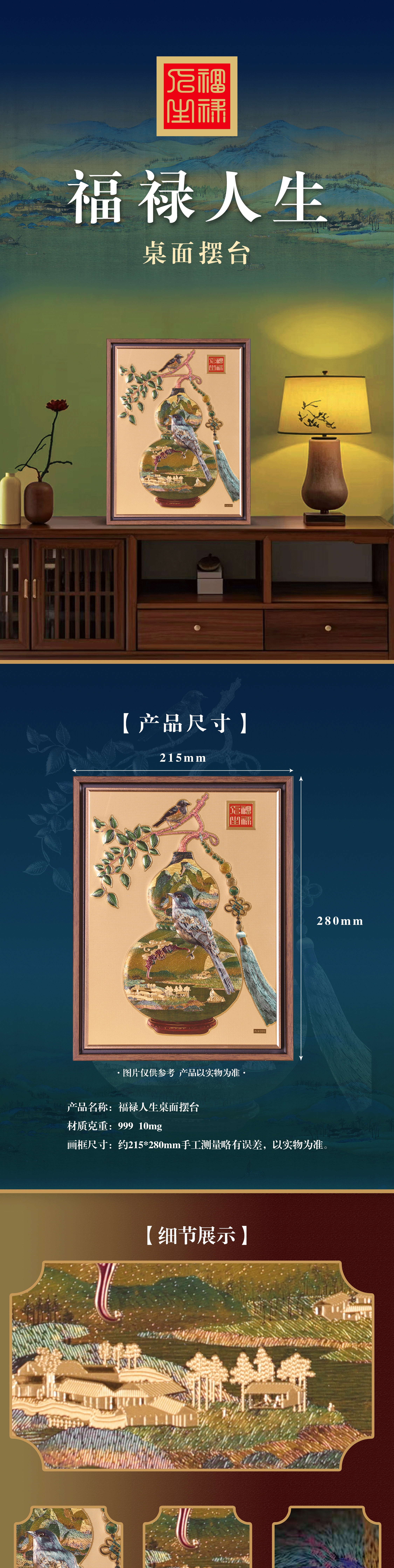 福禄人生桌面摆件(含10毫克足金)