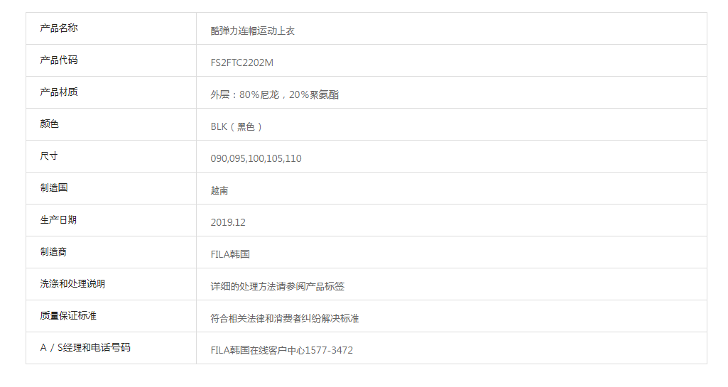 FILA斐乐韩国凉爽材质弹性连帽运动上衣FS2FTC2202M_BLKJPY带授权招加盟代理