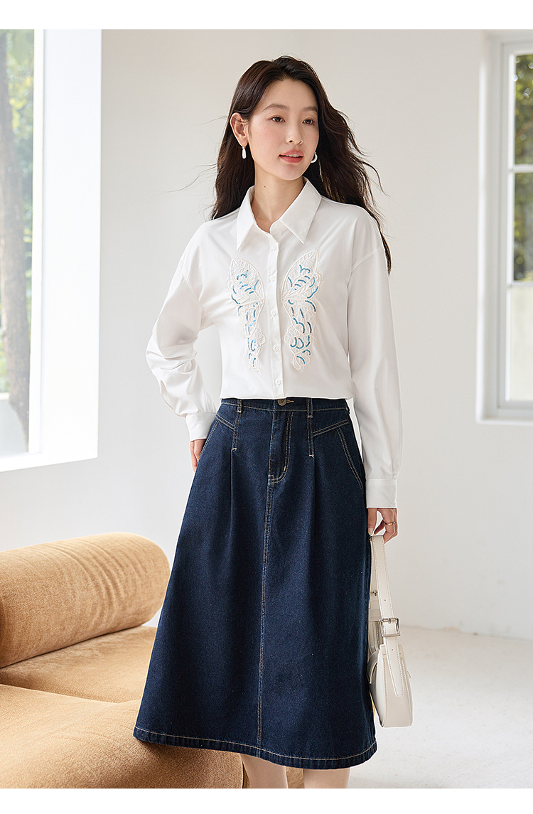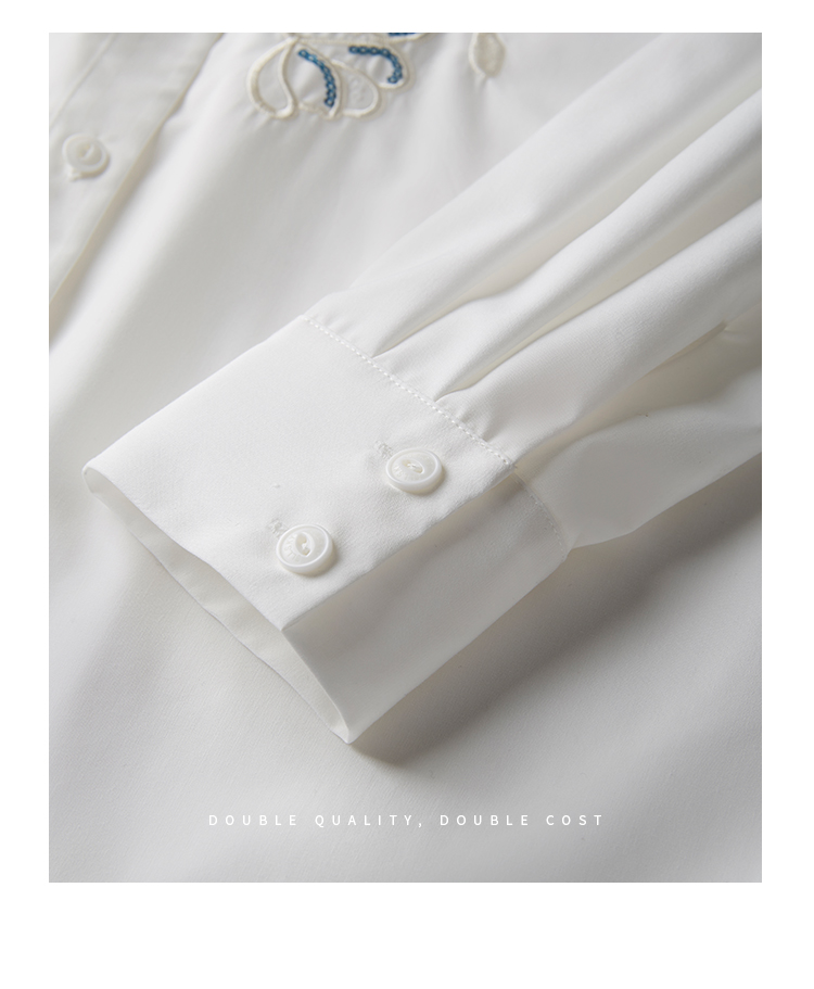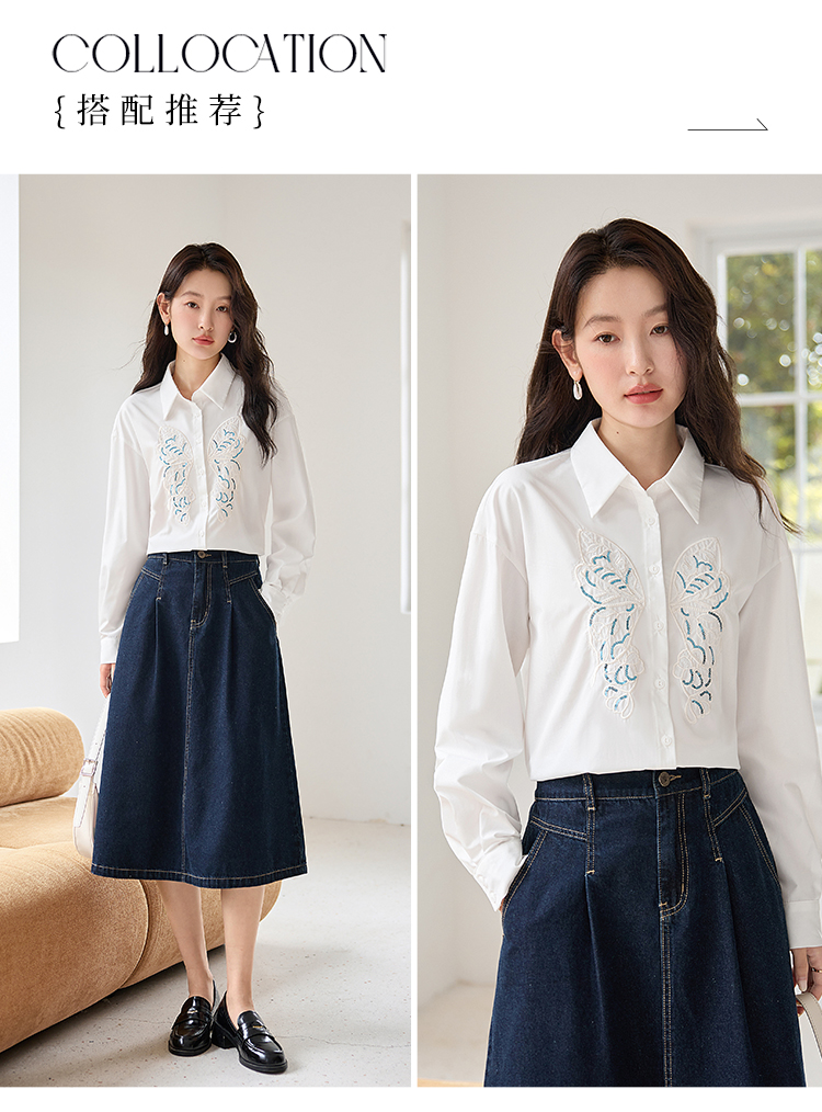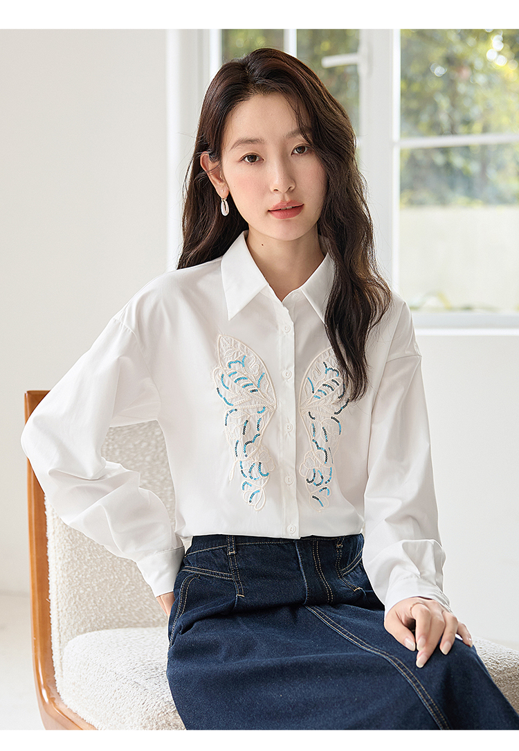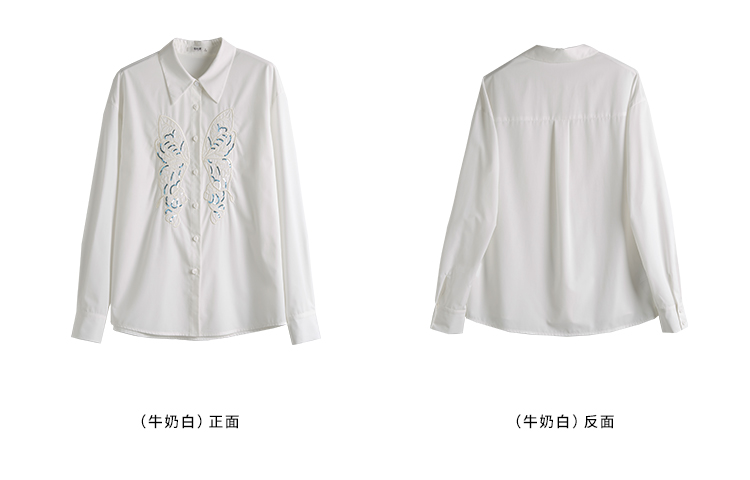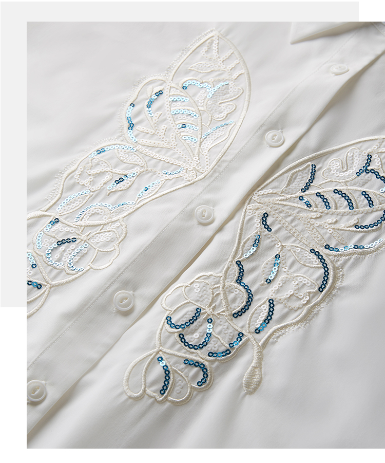 【年终特卖】熙世界珠片蝴蝶刺绣衬衣长袖减龄好看的白色衬衫上衣2025秋新款
