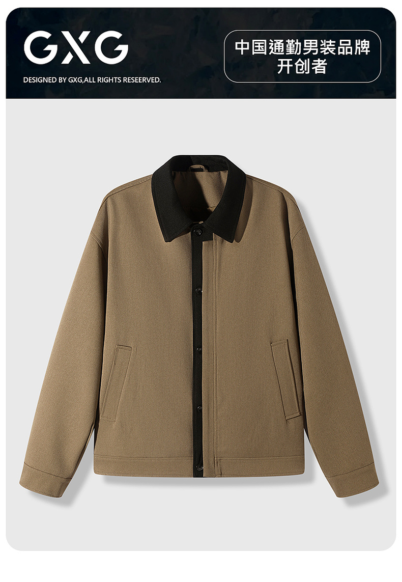 GXG男装26春季时尚百搭潮流撞色工装休闲简约翻领短款男式夹克K&C