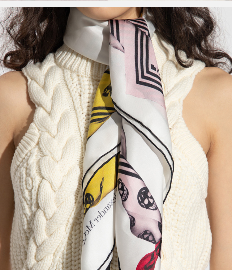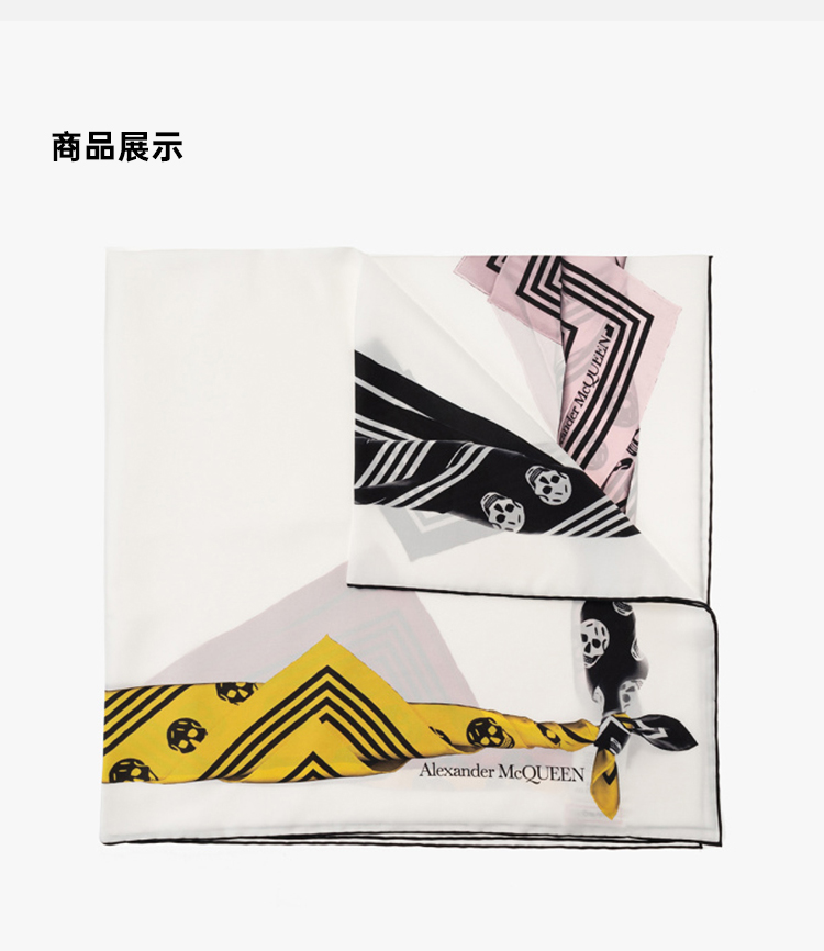 ALEXANDER MCQUEEN 亚历山大.麦昆 女士logo印花真丝围巾 混色 738042 3001Q 9088