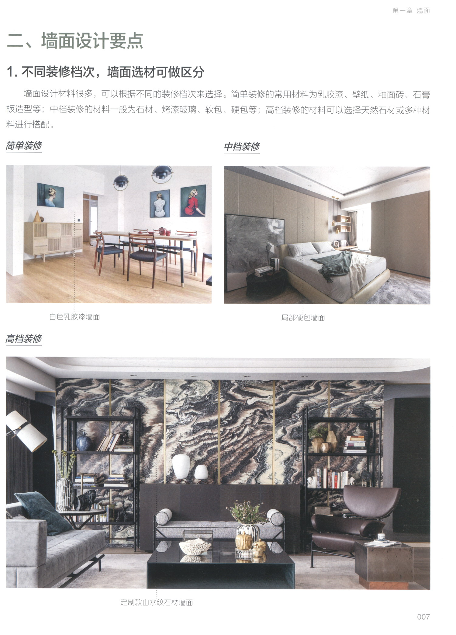 家装类的设计案例图典或图册一直是比较受欢迎的图书形式,对于读者而言,家居空间的设计知识,仅用枯燥的文字解说,很难让人持续阅读,并且理解上也会有难度。因此,相较于纯文字的讲解,实景图片加上简练的关键点提要,更适合喜欢快速阅读学习的读者;同时,图片的展示比文字讲解更有冲击力,也就更能给人留下深刻印象。