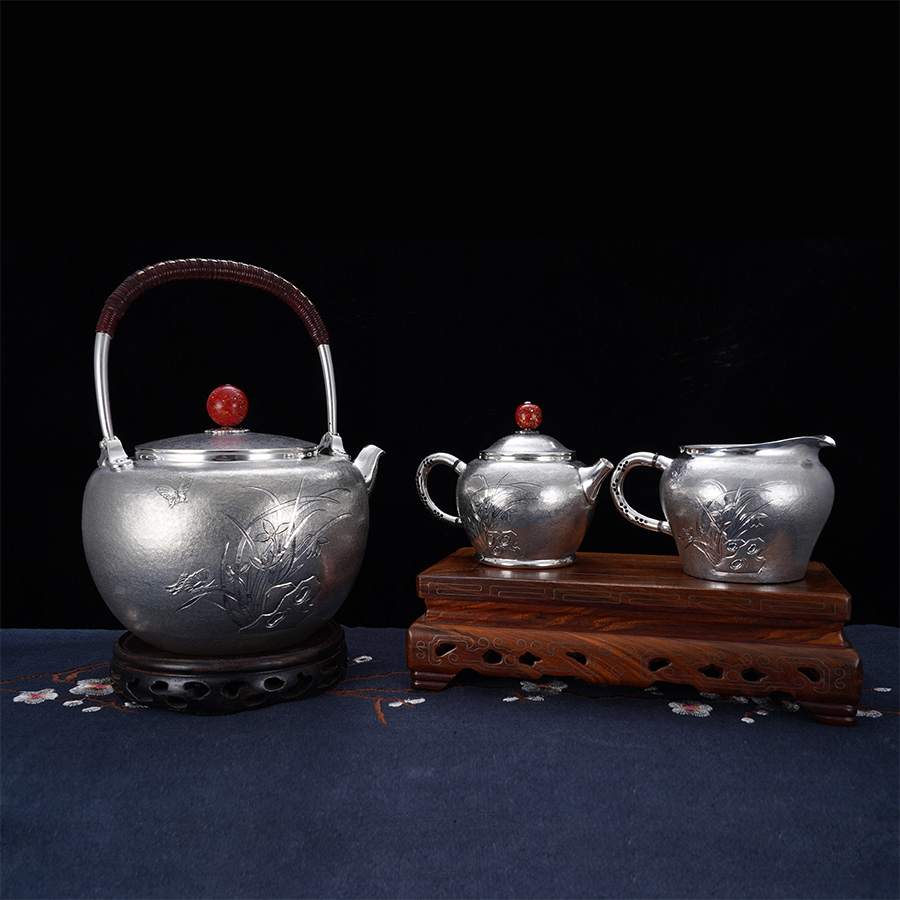 子佩集S999银【空谷幽兰】提梁壶小茶壶公道杯摆件茶具套装【ZJ021】【ZJ022】【ZJ023】2311