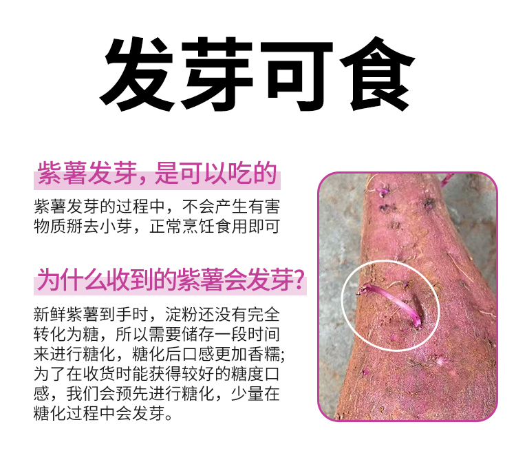 1.紫薯发芽是正常现象,不像土豆一样会释放毒素,不影响食用,可放心食用 ,