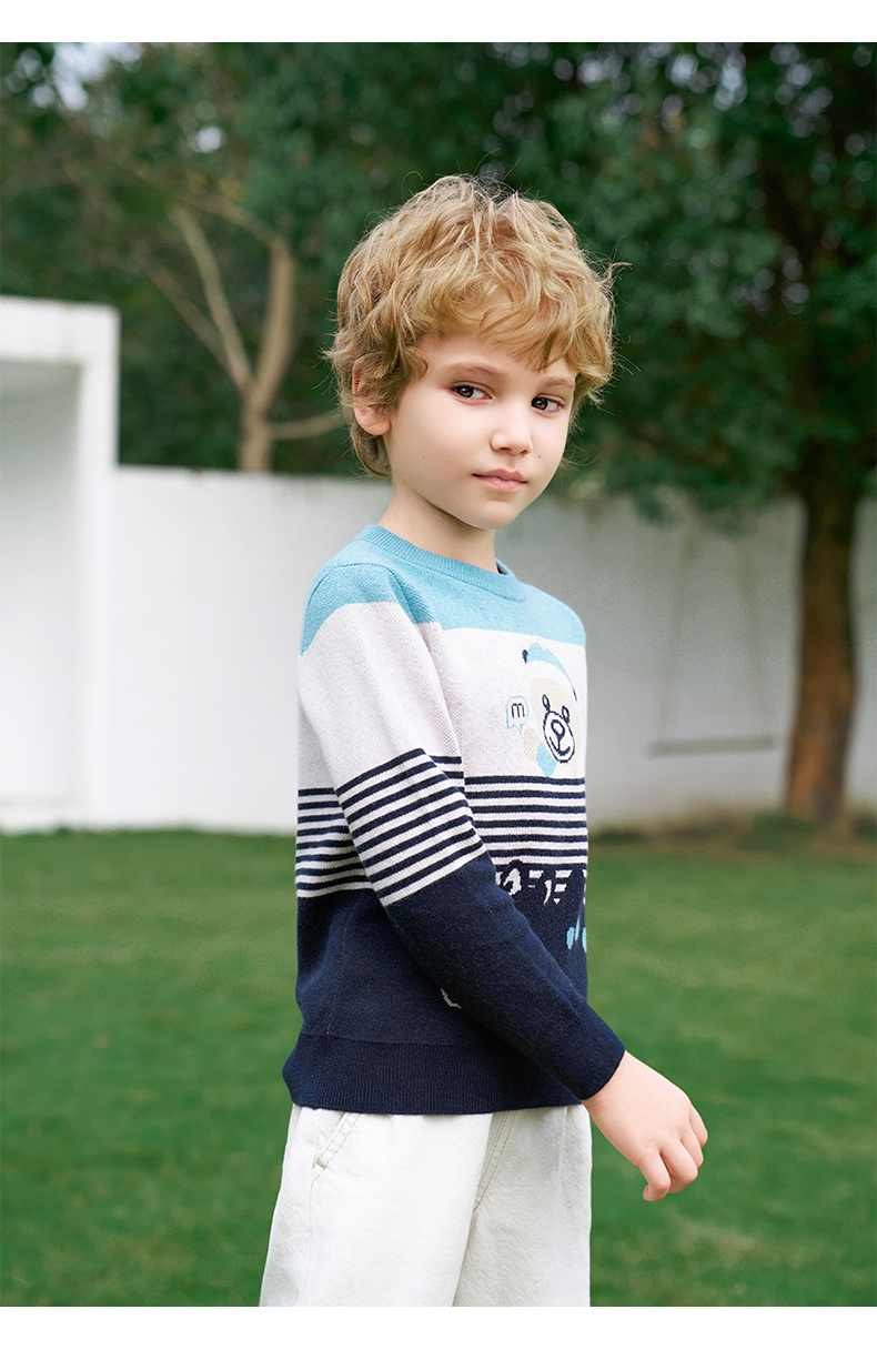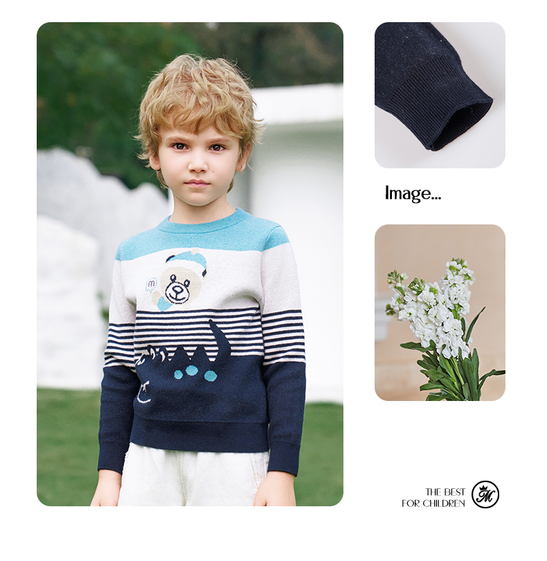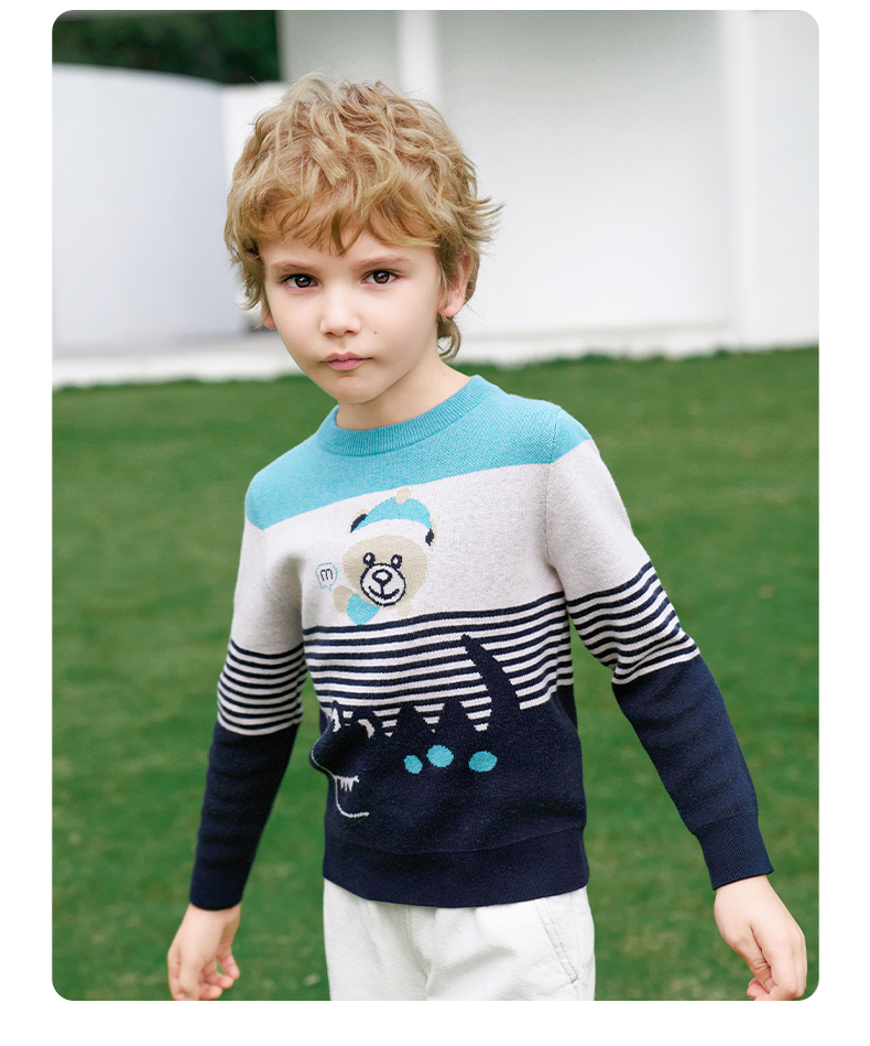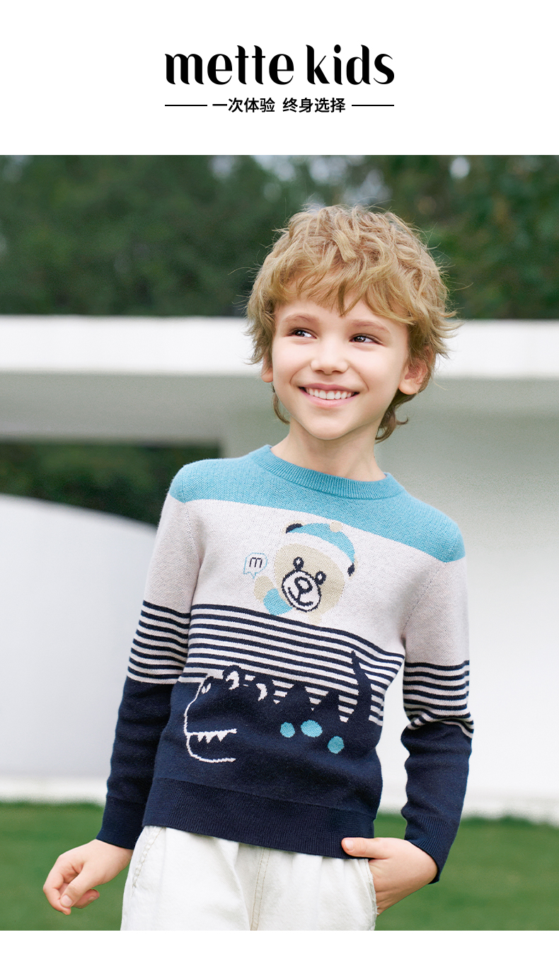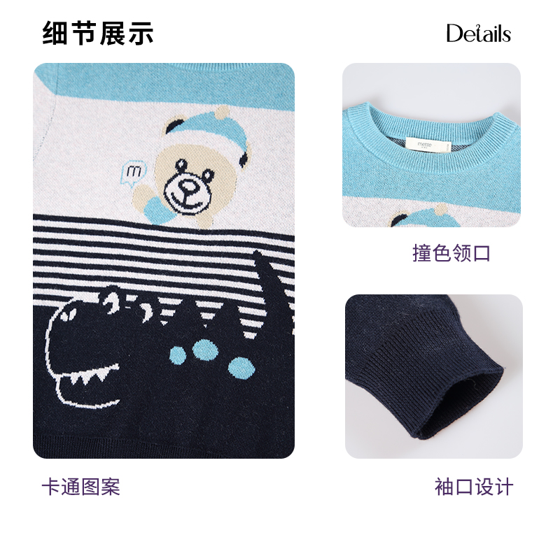mettekids男童毛衣秋冬2024新款棉羊绒儿童蓝色卡通打底针织衫