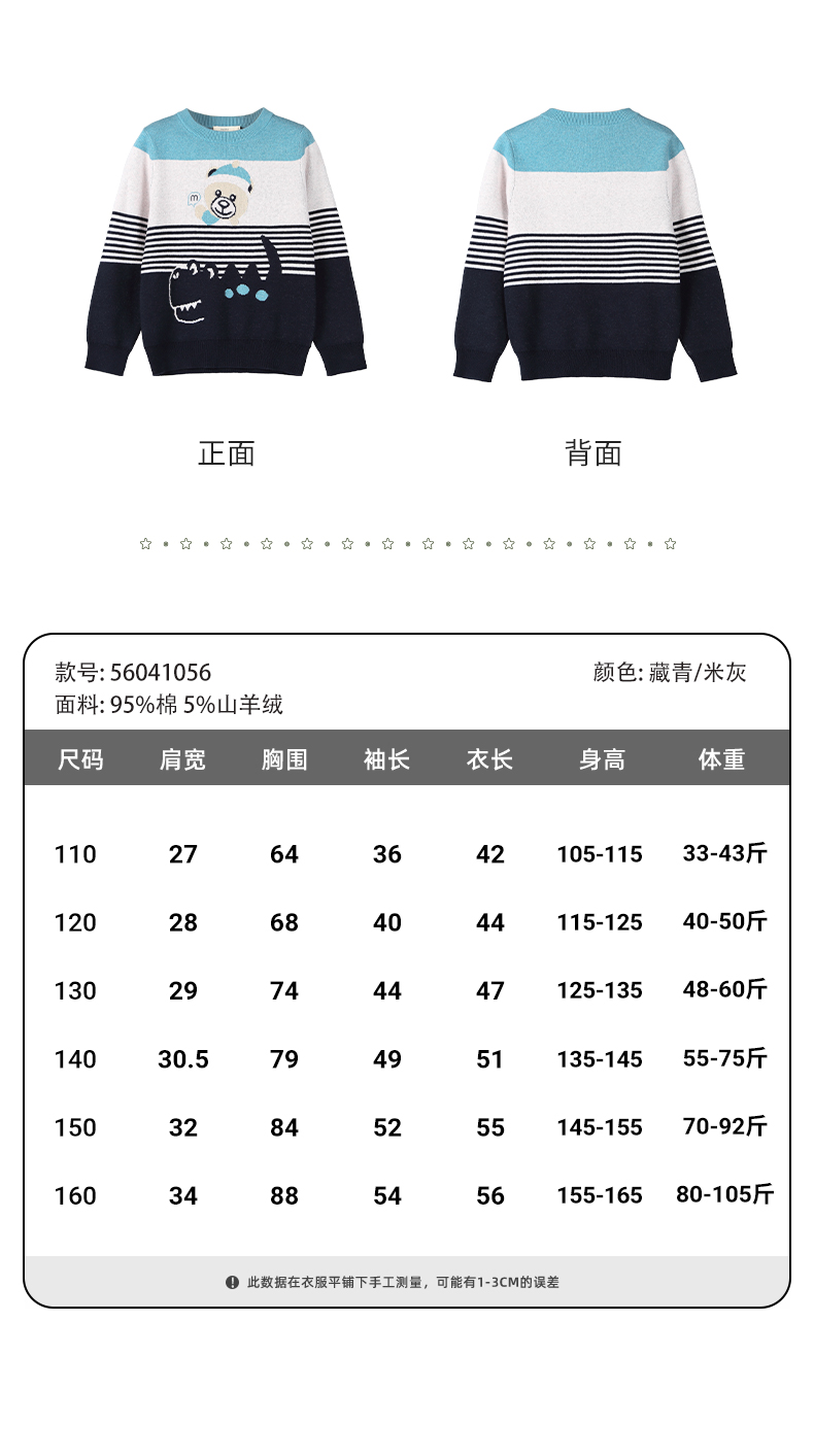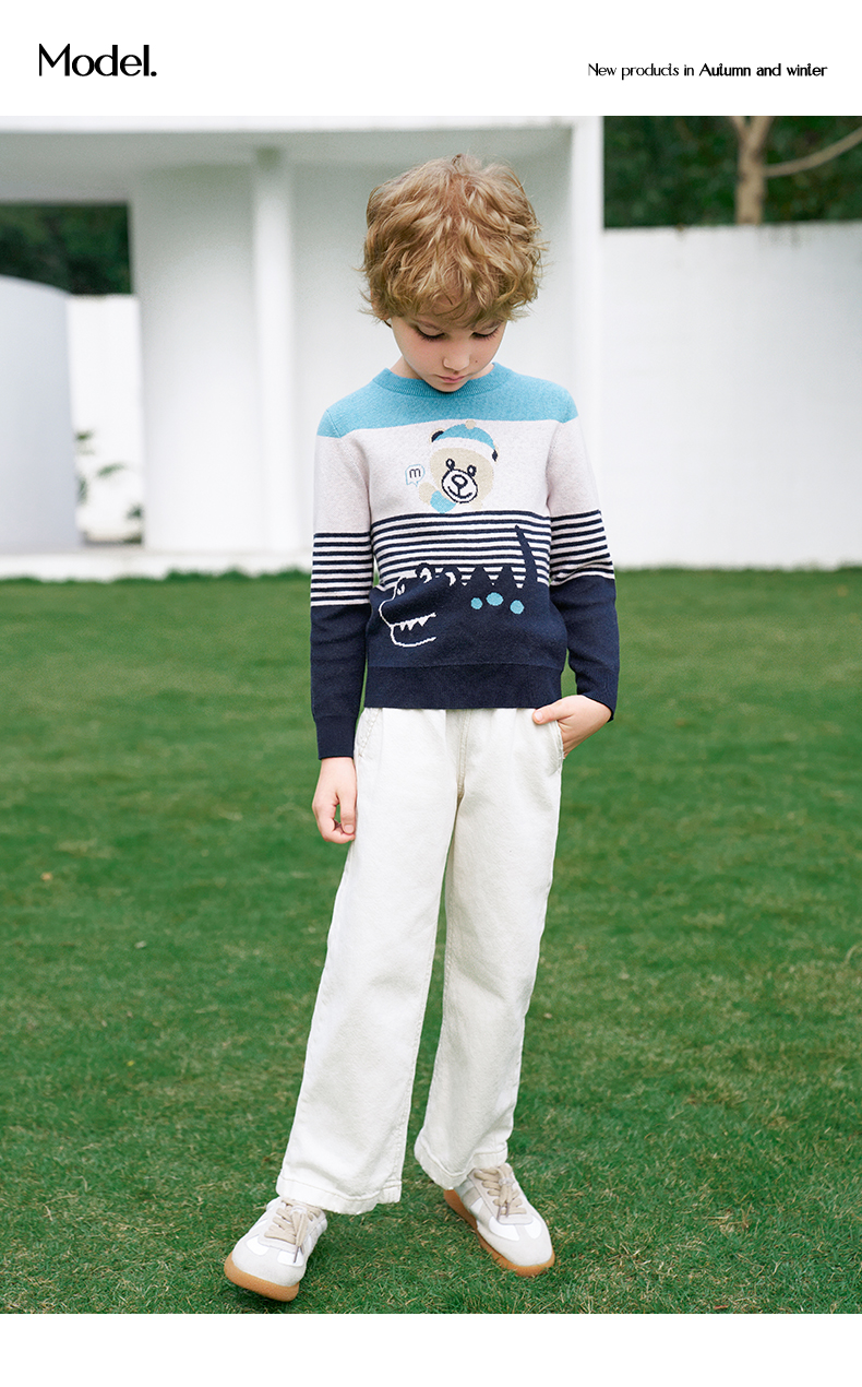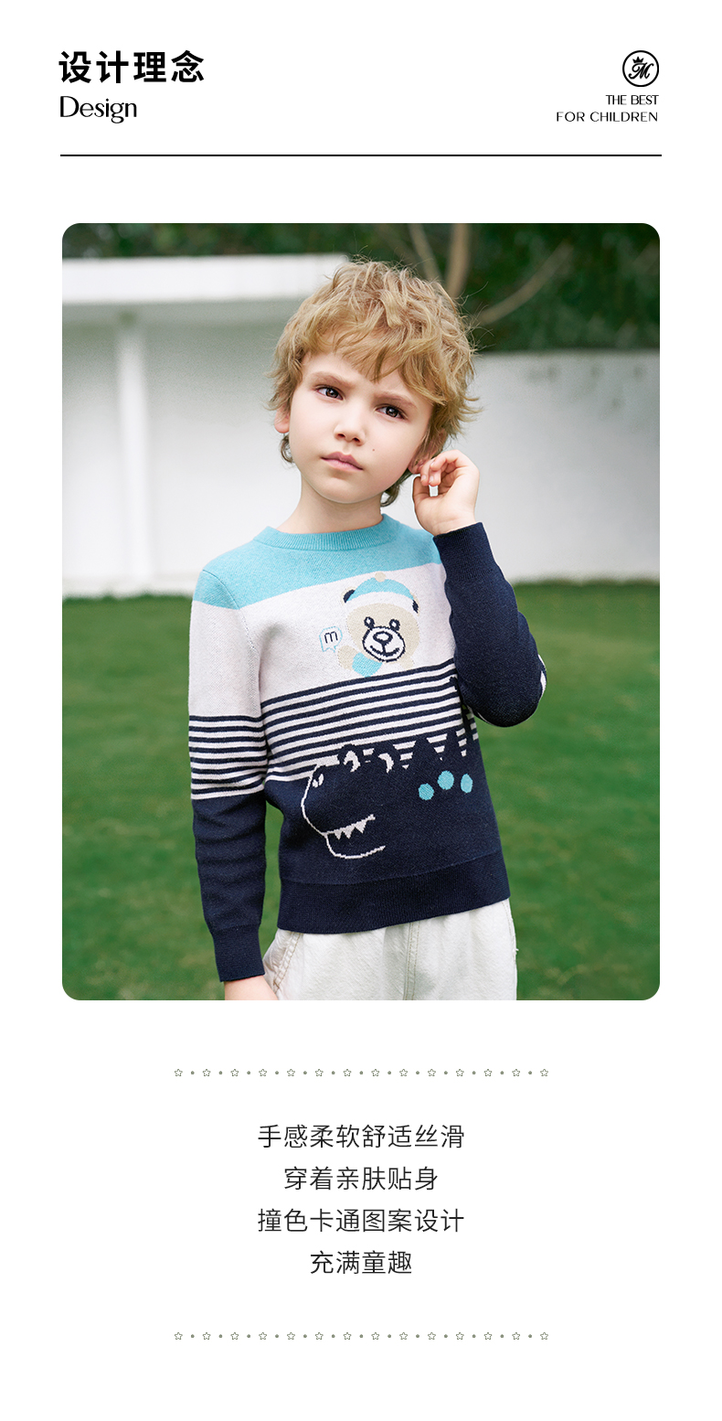 mettekids男童毛衣秋冬2024新款棉羊绒儿童蓝色卡通打底针织衫